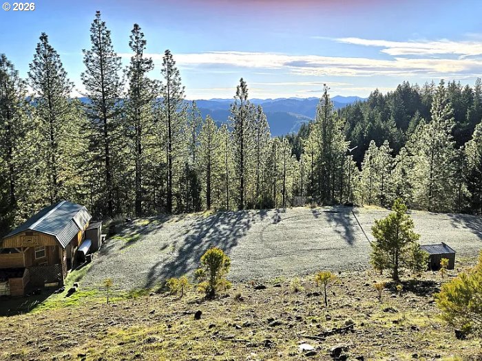 acres with incredible panoramic mountain views that backs up to 904 acres of BLM. Ready to build your dream home with 68' x 134' building pad, home site approval, well is in, cabin has solar, and power is at edge of property. 11.5' x 20' storage shed finished as living space with laminate flooring and loft area. Very private and peaceful and close to Umpqua River and I5! Property is occupied. Do not disturb without appointment.