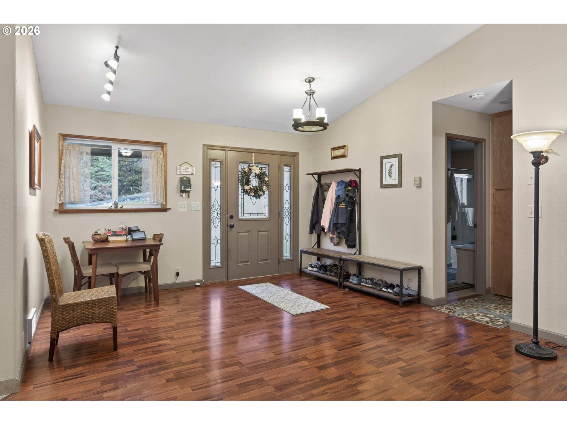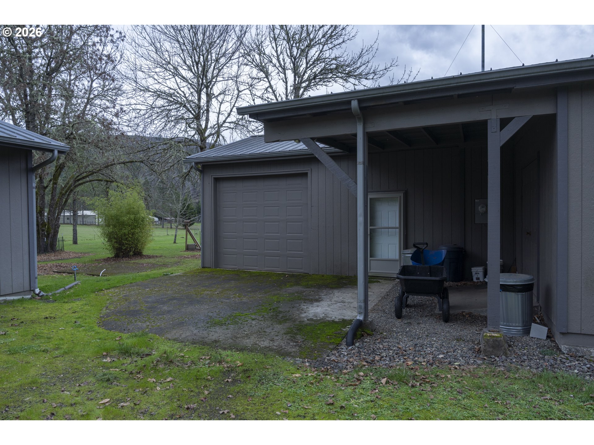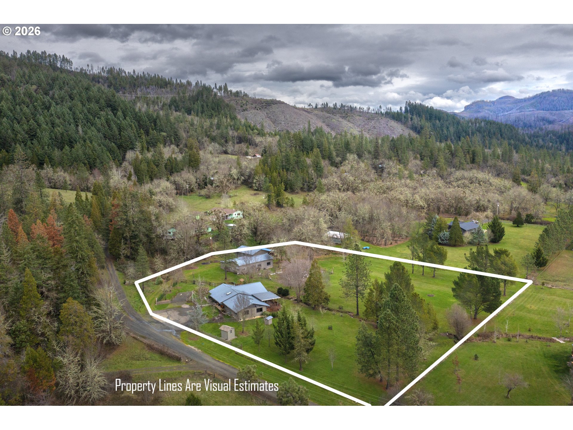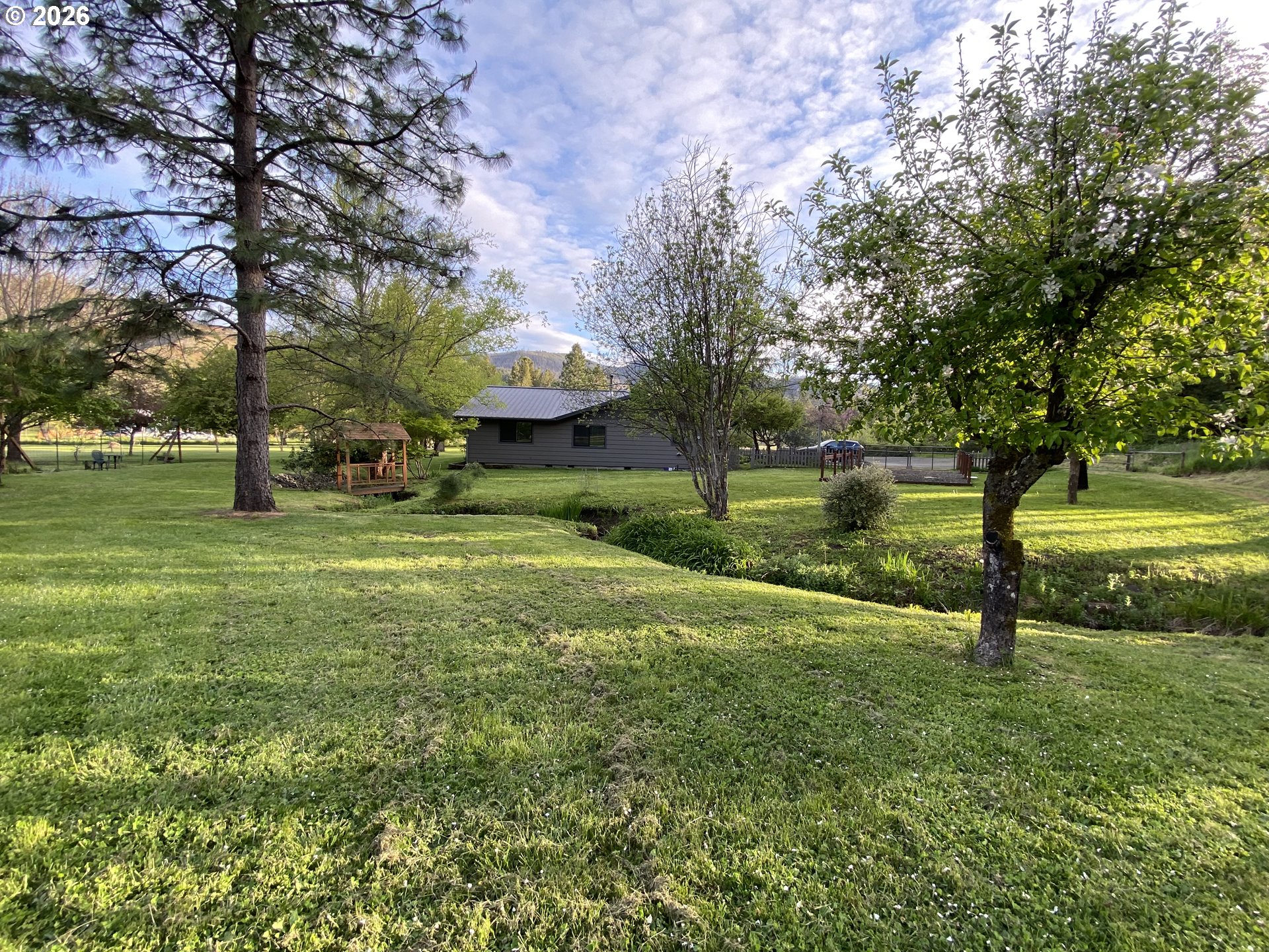 Located at the edge of the Umpqua National Forest this warm and welcoming, one level home, is ready to comfort you after a day of adventure. With over 2700 sqft this home offers a very flexible floor plan. At the heart of this home is the great room with a cozy wood stove, vaulted ceilings, dining area and kitchen with center island. At one end of the home is the primary suite with large walk-in closet and dressing room. At the other end is the guest wing with additional bedrooms, exterior access and even more storage. The living room takes full advantage of the beautiful setting with large windows and access to the covered deck. The property is level and fenced with a large detached garage that is 28x40 and an additional building that previous owners used as guest quarters that has multiple rooms, one bathroom and is currently used for storage and shop space. The property is fenced with a dedicated garden space, many fruit trees and chicken coop. Only a few minutes from Glide and less than a half mile to access to the North Umpqua River.