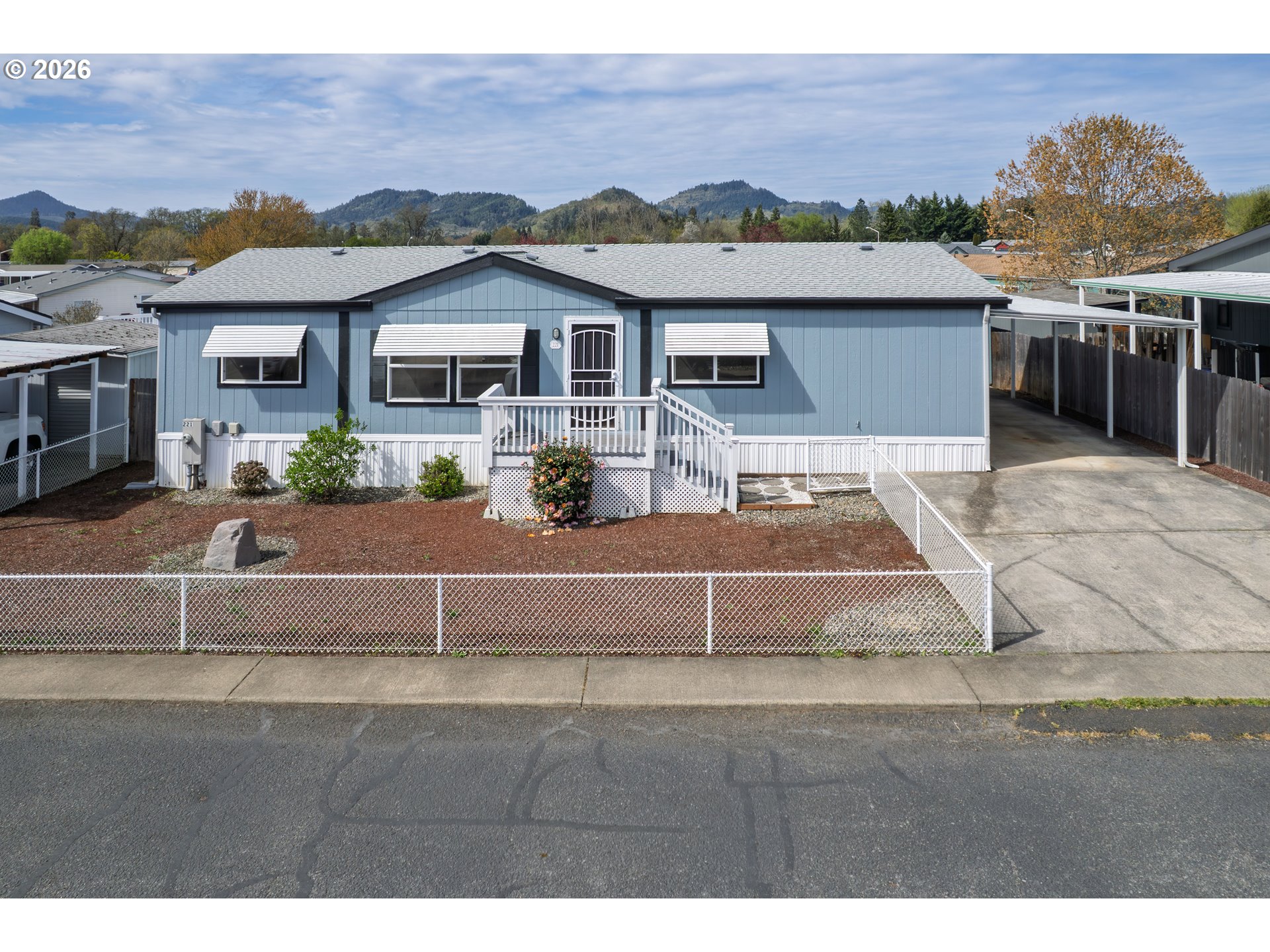 Meticulously maintained 3-bedroom, 2-bath manufactured home located in a quiet and private all-ages co-op community with a low $449 monthly space rent, including water and sewer. Built in 1998, this home offers a functional and inviting layout with a split-bedroom design and a separate family/media room just off the main living area, providing flexibility for everyday living or entertaining. The kitchen features newer stainless steel appliances, all included. There is also a full-size laundry room for added convenience, and the primary suite includes a private bathroom with a walk-in shower. The home is equipped with a mini-split heat pump for efficient heating and cooling, along with a forced air system as an additional heat source. Updates include a newer roof, mini-split system, flooring, paint, and lighting, adding long-term value and peace of mind. Outside, the low-maintenance yard is fully fenced in both the front and back, with a covered rear deck offering a comfortable outdoor space to relax. A covered carport includes a large storage shed, plus there is an additional tool shed in the backyard for extra storage. The community also offers RV parking options, adding to the overall convenience. Well cared for and move-in ready, this home offers comfort, efficiency, and affordability in a desirable co-op setting.