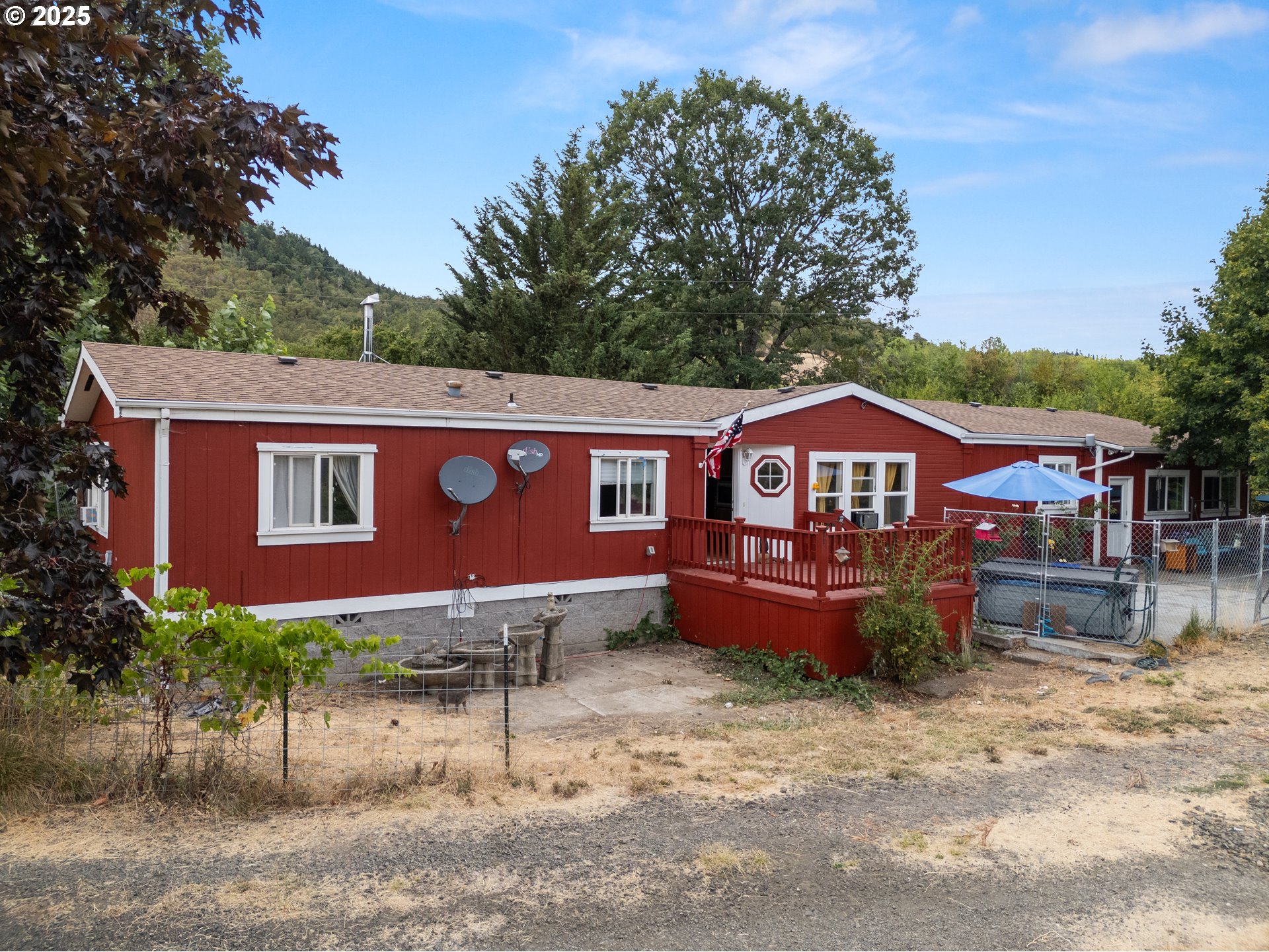 Welcome to 227 Lapp Lane in Roseburg, a versatile 13.16-acre property designed for both comfortable living and endless possibilities. Tucked away in a peaceful setting, this 1996 doublewide manufactured home features 3 bedrooms, 2 baths, a newer roof (2018), certified wood stove, and new appliances (2024). The main home square footage is expanded by a converted garage (2018) now hobby room, easily be converted back. Tough shed for added storage.Adding incredible value is approx 1,100 sqft permitted multi-use building equipped with its own power meter, separate septic, cadet heaters, washer/dryer hookups, and bathroom. Ideal for flexible living arrangements or guest house. Located right out the sliding glass door you can enjoy fresh produce from the fenced garden space.The property offers extensive agricultural and equestrian amenities, including a barn with 4 horse matted stalls and 4-bay hay/equipment storage with water, power. In addition, there is an added covered training arena and additional covered area to the barn. Other features to the property include 3 loafing sheds and tack/storage room. The property offers two seasonal ponds and three seasonal creeks. Whether you’re seeking a hobby farm, room for horses, or a private retreat this property is ready to meet your needs.