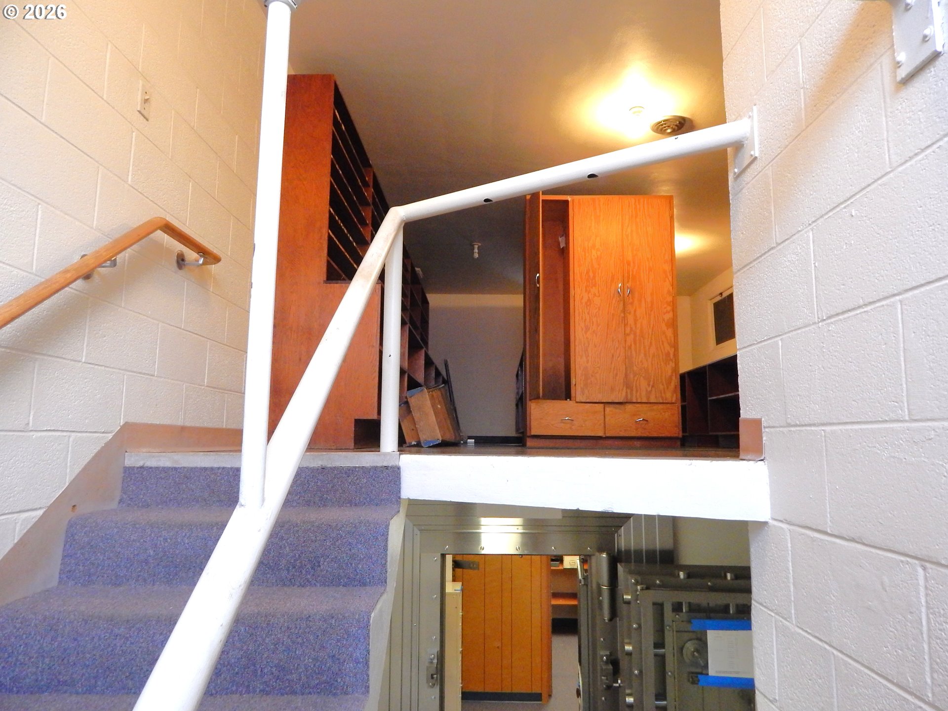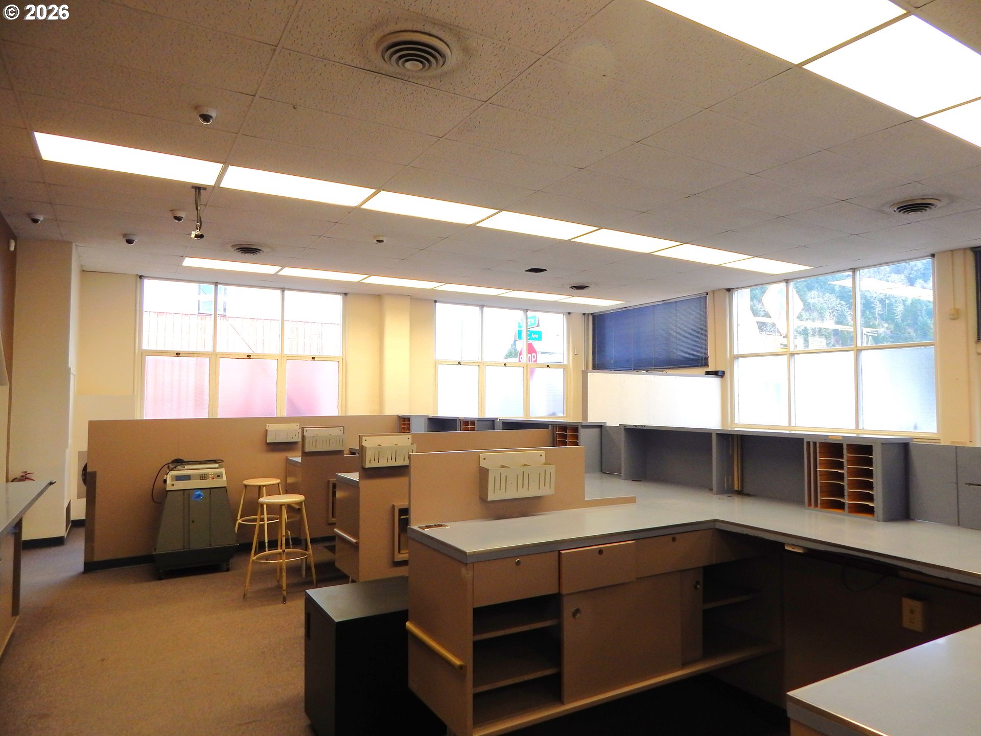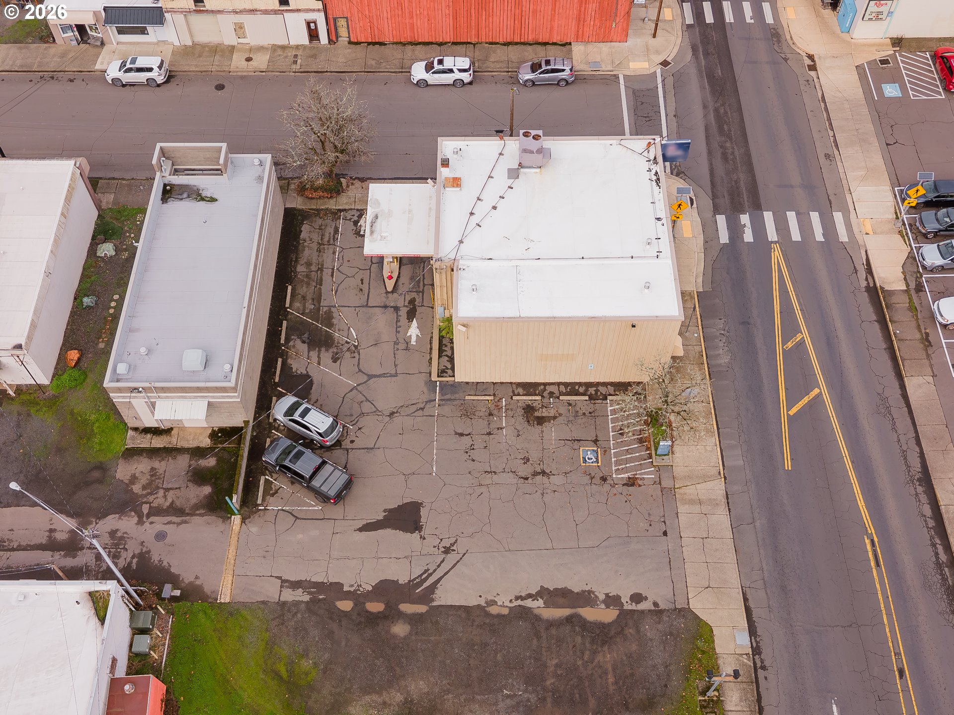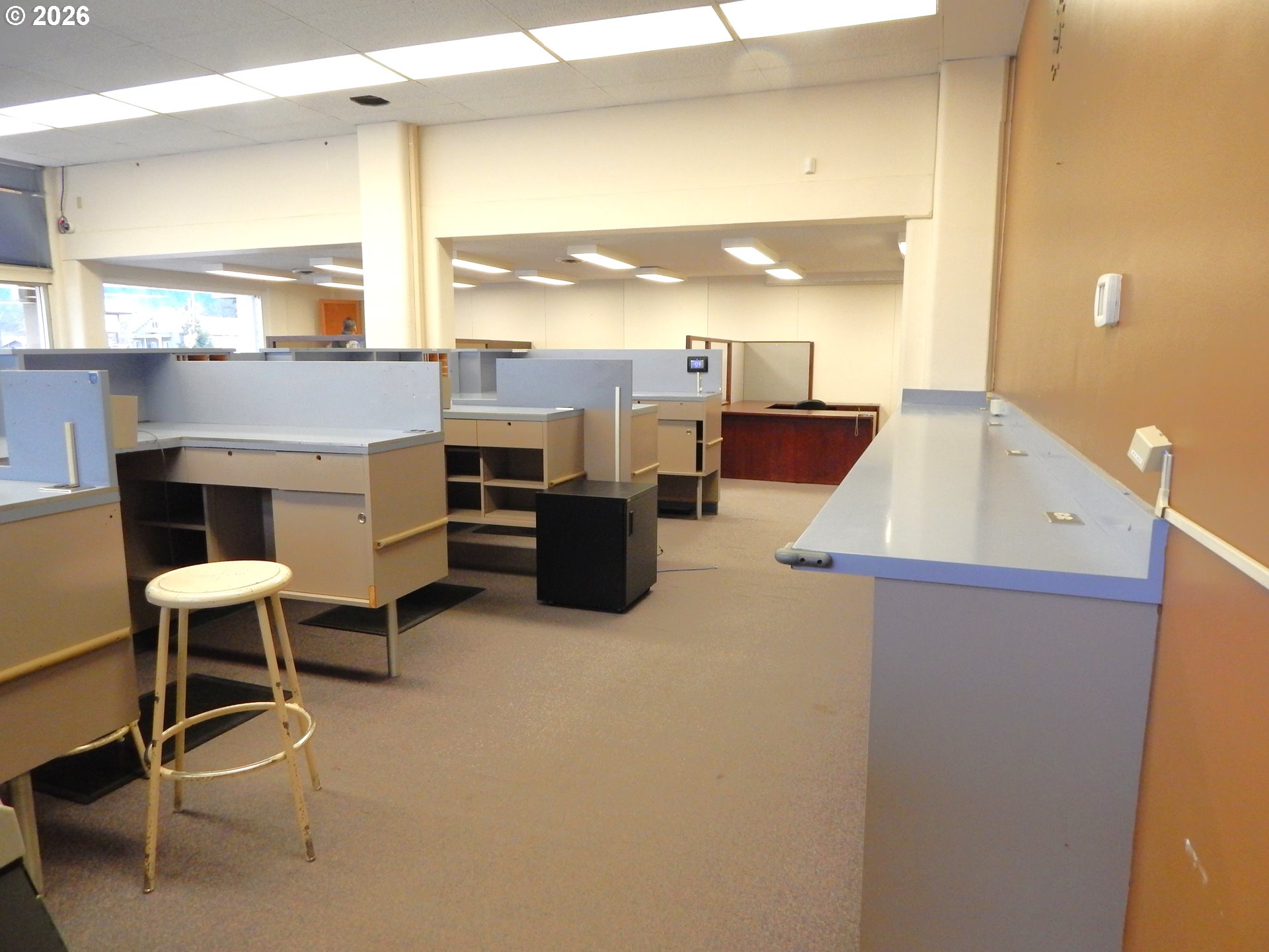 Great opportunity for office/retail use ideally located on a corner lot with lots of onsite parking, drive-up window. Upstairs has break room with refrigerator, restroom, and lots of storage. Former bank building in the heart of Drain's business district.
