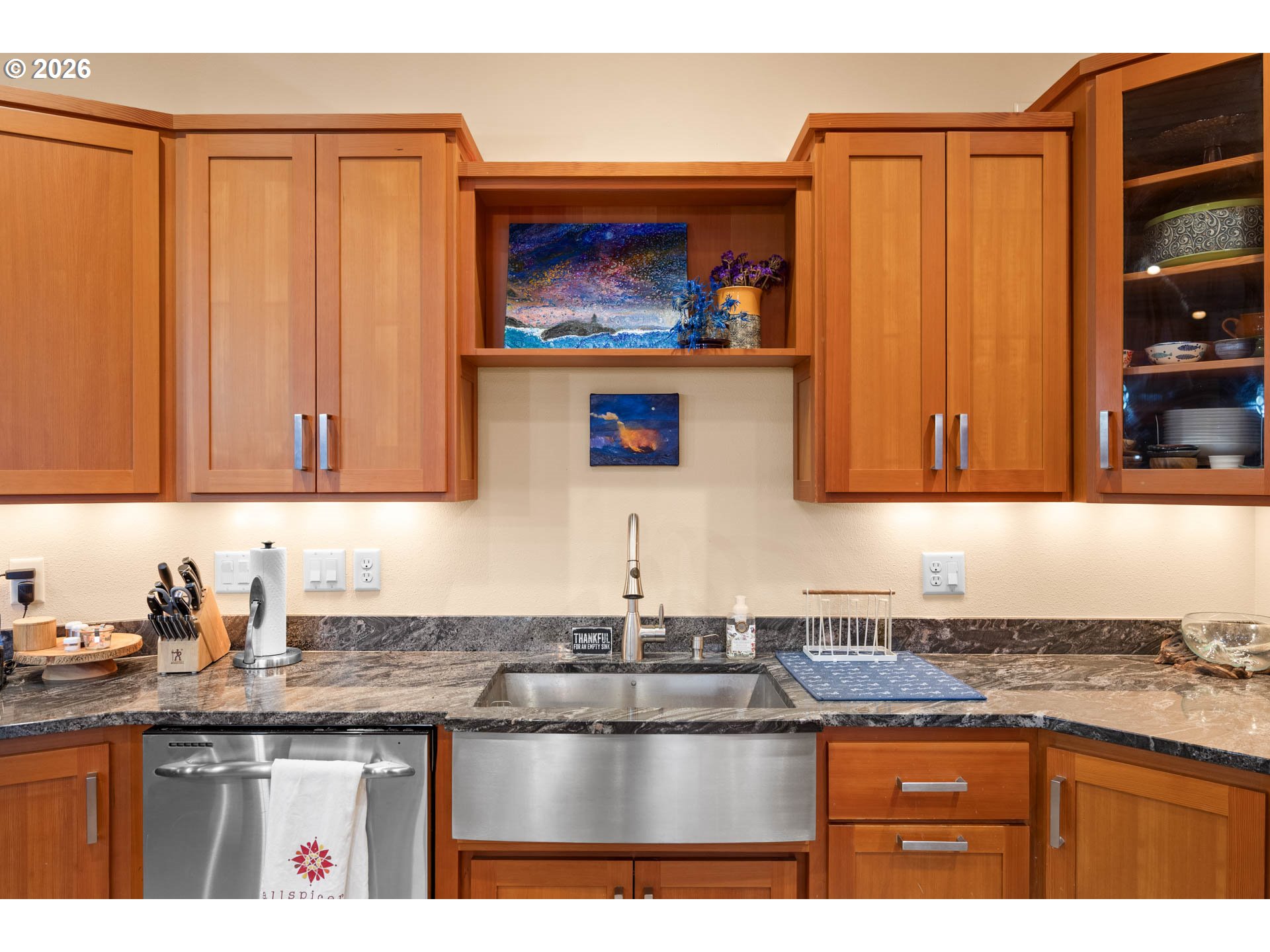 (503) 893-8874Timeless craftsmanship with North Umpqua River views! Elevated setting with sweeping river views, high-end finishes, & exceptional shop + guest space. 230 Anderson Ln sits on 1.42 acres near the North Umpqua River in Roseburg, featuring a striking stone entry, river rock accents, & an inviting lodge-style design with a timber-frame Portacove. The 2,620 sq ft, 2 bed, 2.5 bath main residence offers open-concept living, kitchen & dining, two mirrored primary suites with en-suite baths, plus a powder room. Outdoor living includes a timber-frame covered patio with a gas fire feature overlooking the river, with patio access from each bedroom. Outside, the property offers meticulously maintained year-round landscaping, river irrigation, & a private setting. Inside, high-end engineered wood flooring, vaulted tongue-and-groove ceilings, stained millwork, & expansive windows capture river views. A floor-to-ceiling river rock fireplace anchors the main living area. The kitchen features granite countertops, custom cabinetry, farmhouse sink, gas cooktop, built-in microwave & oven, stainless appliances, warming drawer, & dishwasher. A custom barn wood bar includes granite counter, mini fridge, sink, & wine rack. Additional features include custom pocket doors, built-in storage, a data closet, & multi-zone HVAC. Two primary suites sit on opposite ends & mirror each other. Each includes custom sliding doors to the patio, custom closet systems, & en-suite baths with heated tile floors, granite counters with double sinks, river rock mosaic accents, custom tile walk-in showers, & a soaker tub. Shop/garage includes a huge 2-car garage plus RV bay with 14' automatic door, separate 200-amp service, wood stove, sink, refrigerator, & a well control room with UV filtration. Upstairs guest/bunk space includes 1 bed, 1 bath, living area, ductless heating & cooling, & a balcony with river views (no kitchen). Schedule a tour to experience this home & the views in person!