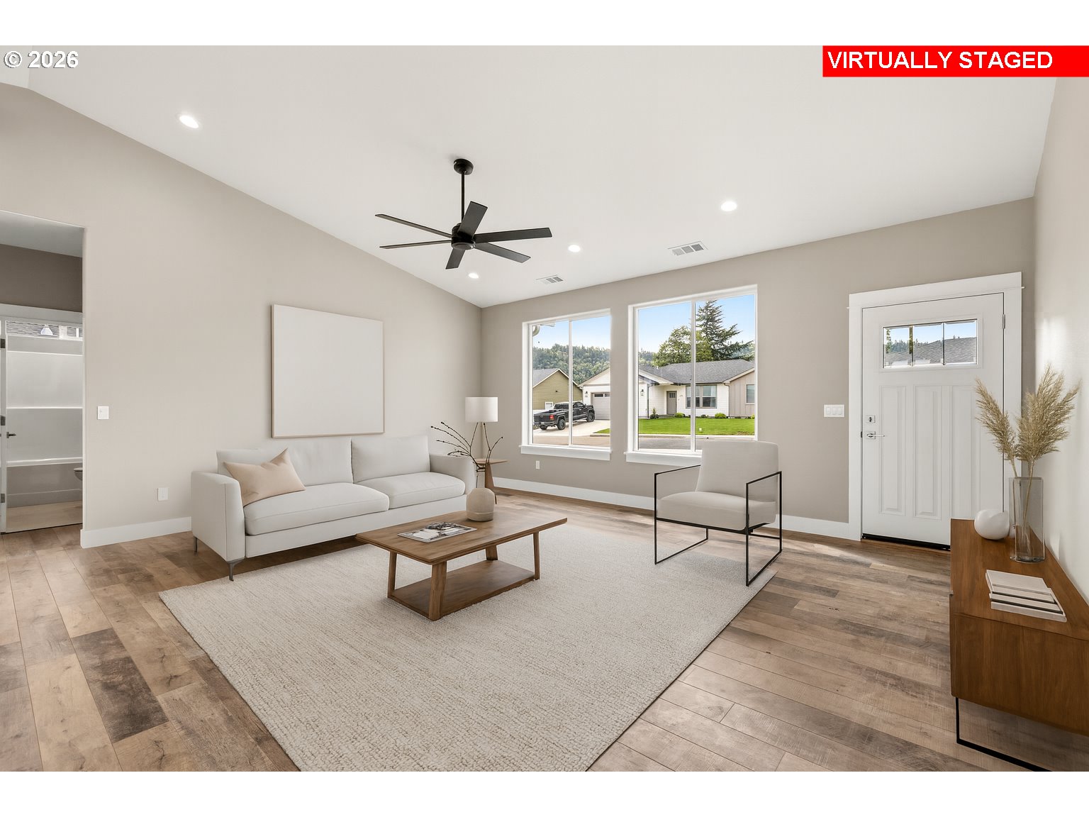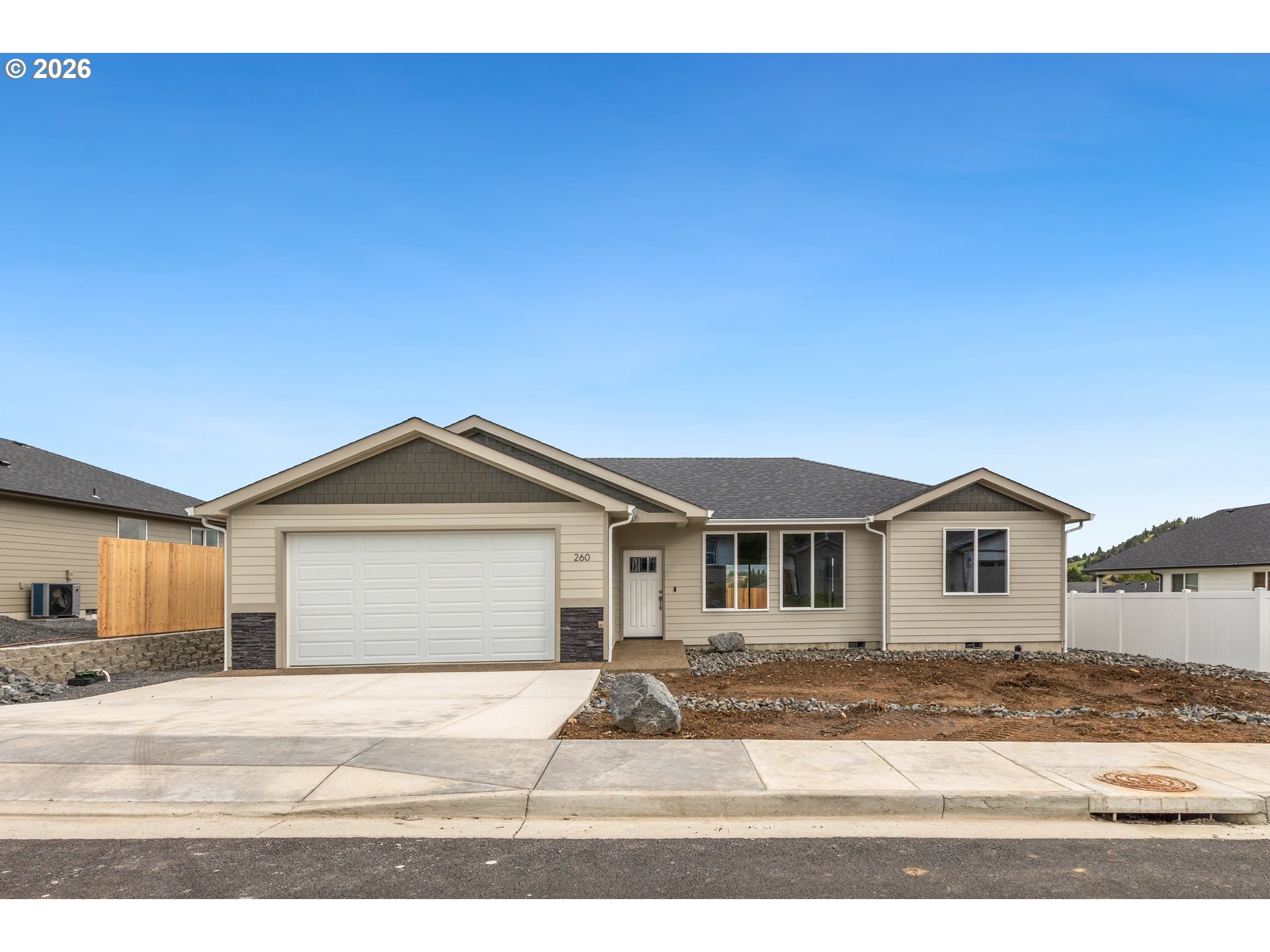 There’s something special about stepping into a home that’s never been lived in—where everything is fresh, thoughtfully designed, and ready for your story to begin. Welcome to 260 Logan St, a brand-new one-level home that blends modern comfort with effortless living.From the moment you walk in, you’ll appreciate the clean, cohesive feel of luxury vinyl plank flooring throughout—no carpet—paired with tile in the bathrooms for durability and style. The open-concept design creates a natural flow between spaces, anchored by a stunning kitchen featuring quartz countertops, a stainless steel slide-in range, and a generous eating bar perfect for morning coffee, casual meals, or gathering with friends.The spacious great room with vaulted ceilings invites natural light and connection, making it just as ideal for quiet evenings at home as it is for entertaining. Just beyond, the covered patio extends your living space outdoors—imagine summer barbecues, crisp fall evenings, and year-round enjoyment in a space designed for relaxation.The backyard has been graded and is ready for your vision—garden beds, play space, or a private retreat—the possibilities are yours to create. Front yard landscaping will be completed (if not already), offering welcoming curb appeal from day one.Each bedroom is comfortably sized, while the private primary suite offers a peaceful escape with a well-appointed bathroom and a spacious walk-in closet.With brand-new construction, quality finishes, and the ease of single-level living, this home is more than just a place to live—it’s a place to settle in, unwind, and truly feel at home.