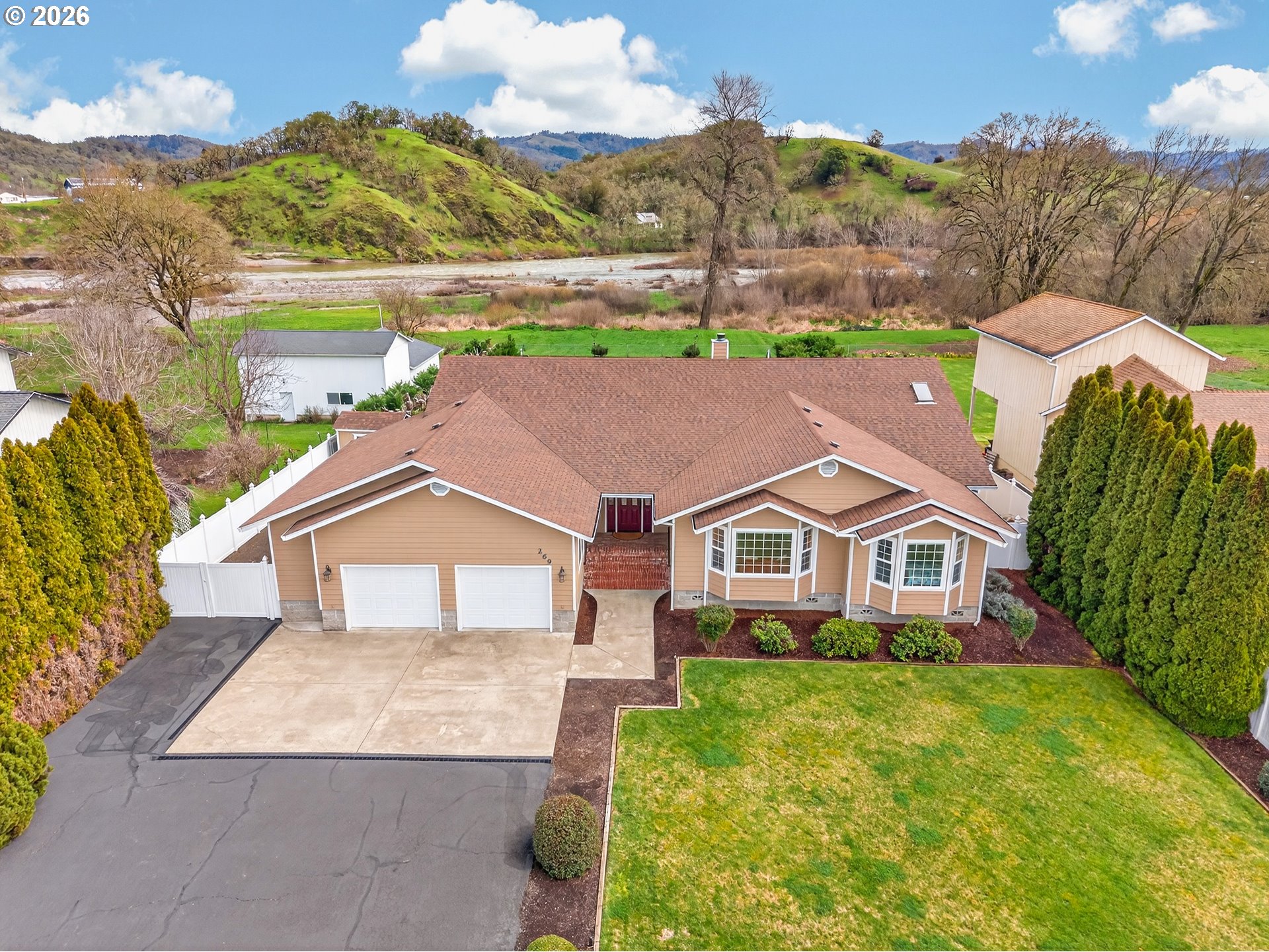 (503) 893-8874This exceptional riverfront property offers luxury, comfort, & breathtaking natural surroundings in one of Roseburg’s most desirable settings. This custom-built single-level home sits along the banks of the beautiful South Umpqua River, offering incredible views & the peaceful sound of the water. The home features a thoughtfully designed living space with an open-concept that creates a bright and spacious atmosphere. Vaulted ceilings enhance the sense of openness while large windows bring in natural light & capture the stunning river views. The living room and family room provide generous space for relaxing or entertaining, while the fireplace creates a warm and inviting focal point for gatherings. This well-designed home includes three bedrooms and two bathrooms, providing flexibility for guests, extended family, or multi-generational living. The primary suite is a retreat featuring a walk-in closet, dual vanity sinks, & a large soaking tub positioned to take in the river views. Throughout the home you will find solid wood trim and high-quality finishes that reflect the craftsmanship of this custom build. The kitchen is equipped with top-of-the-line stainless steel appliances. Step outside to one of the home’s impressive features: a large covered deck that spans the back of the house, perfect for relaxing, entertaining, or enjoying the tranquility of the river. With direct river frontage, you can even fish for bass or salmon right from your own backyard. Situated on just under one acre, the property offers plenty of yard space for outdoor activities, gardening, hobbies, four wheeling, and hiking, while still maintaining a peaceful and private feel. The home also features an extra-large two-car garage and RV parking. Combining luxury craftsmanship, spacious living, & a truly special riverfront setting. This stunning Roseburg property offers a rare opportunity to enjoy the beauty of the South Umpqua River while living in comfort & style. Call for your tour today!