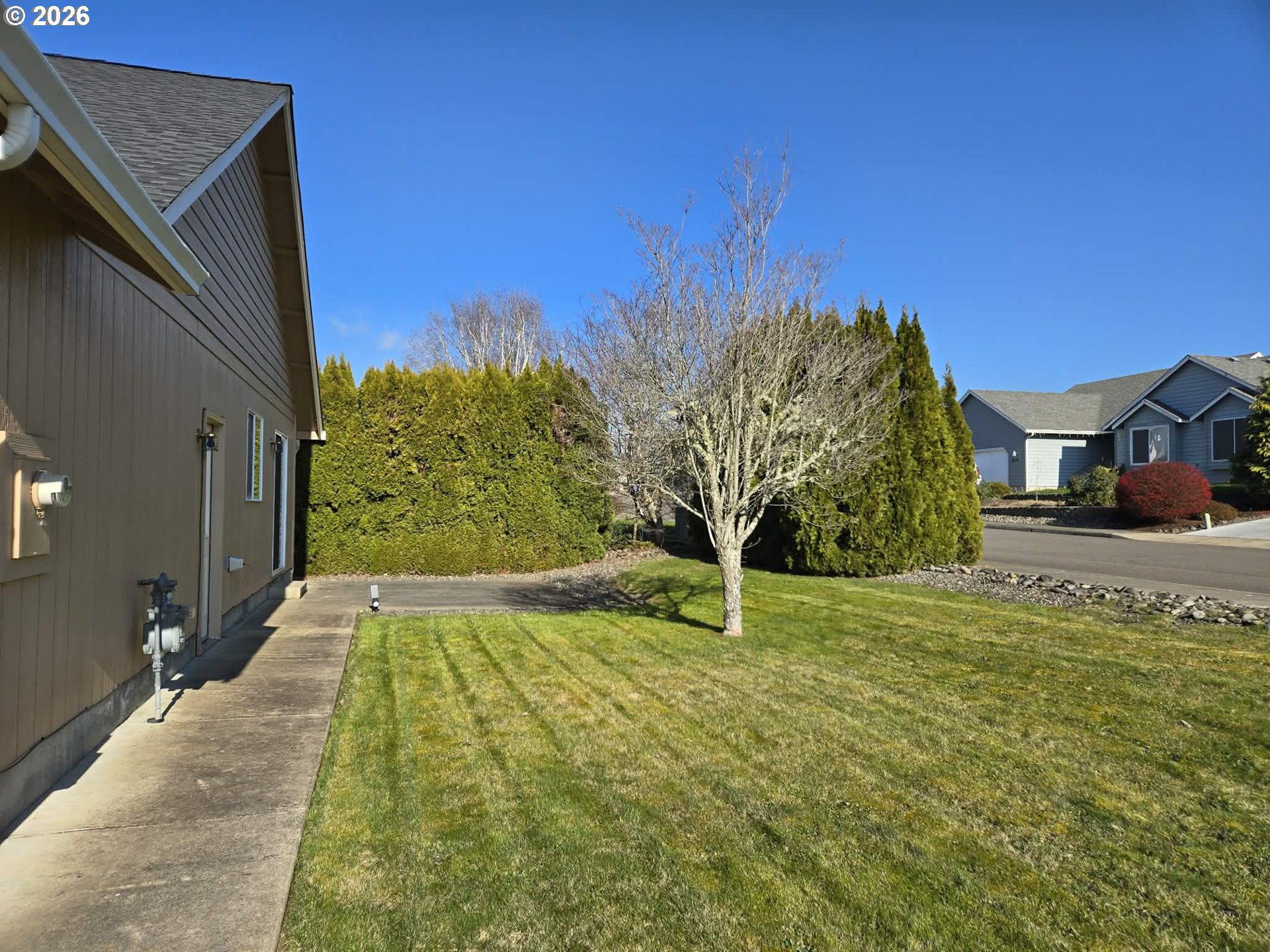 Modern comfort meets easy living! Welcome home to this well maintained 3 bedroom, 2 bath with 1,456 sq. ft. of bright, open living space. Vaulted ceilings, with fans, in the living room and primary bedroom, attached 2 car garage plus additional concrete parking pad for RV, boat or ?? Enjoy peace of mind with a brand new roof, concrete patio and in ground sprinklers. Located across the street from the beautiful Ford's Pond with picnic tables and a 2 mile paved walking trail.