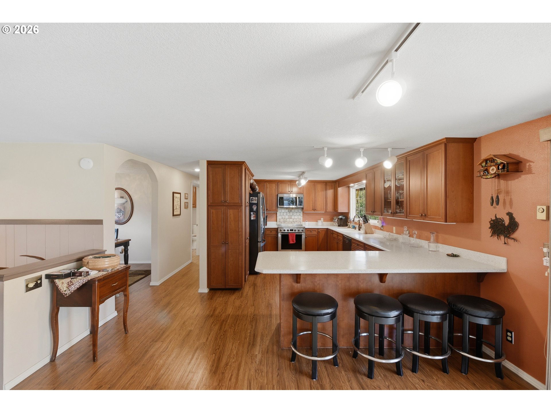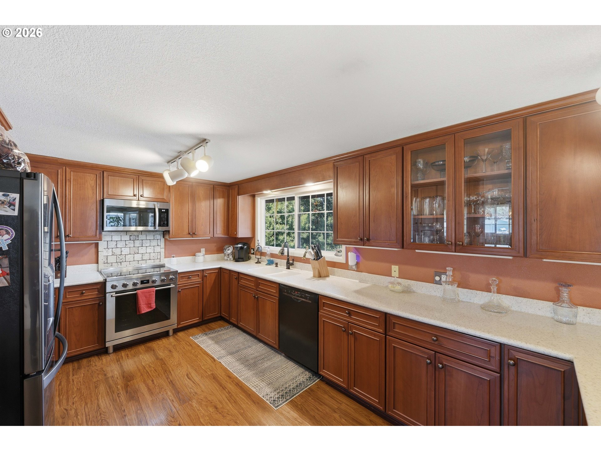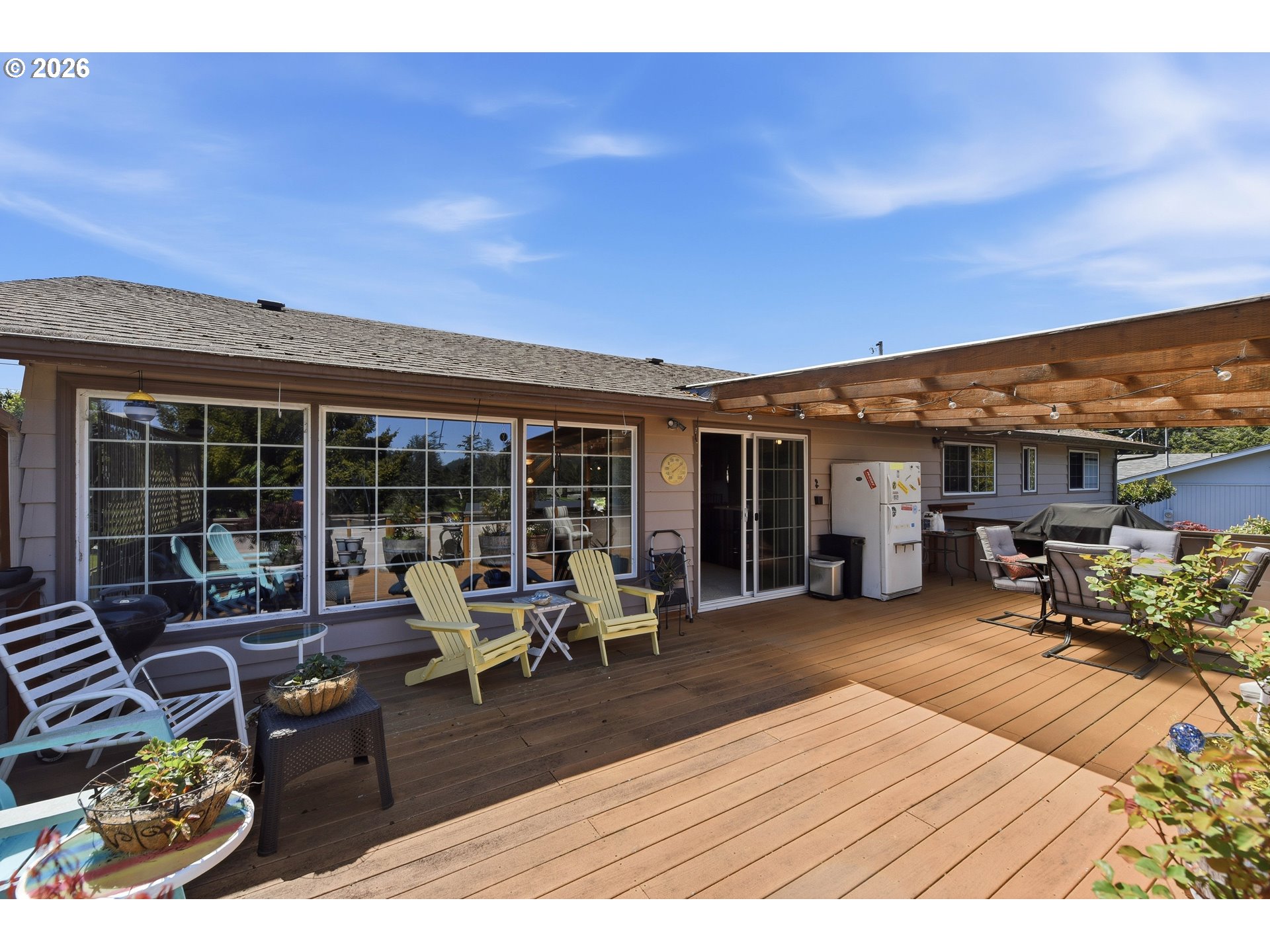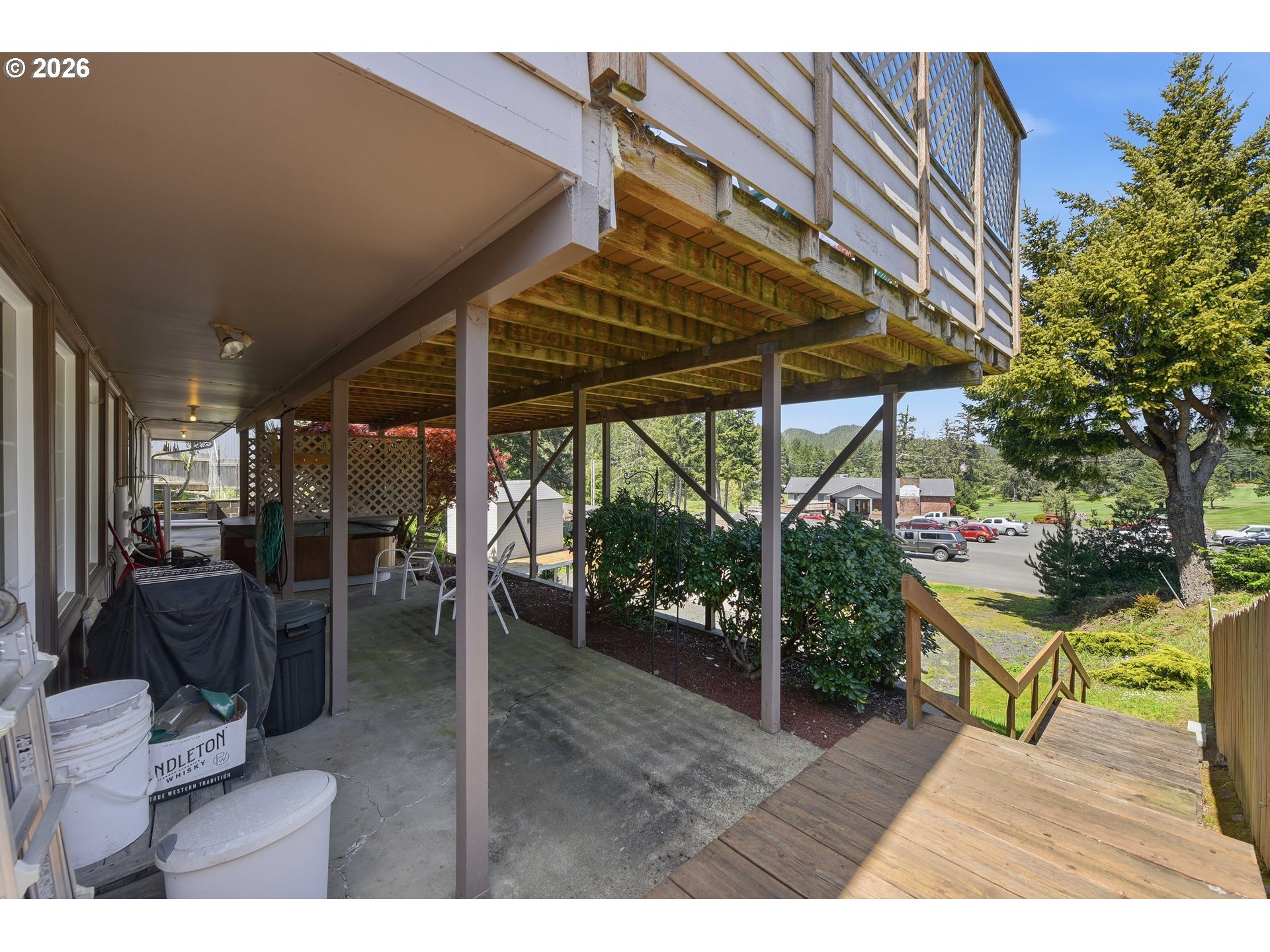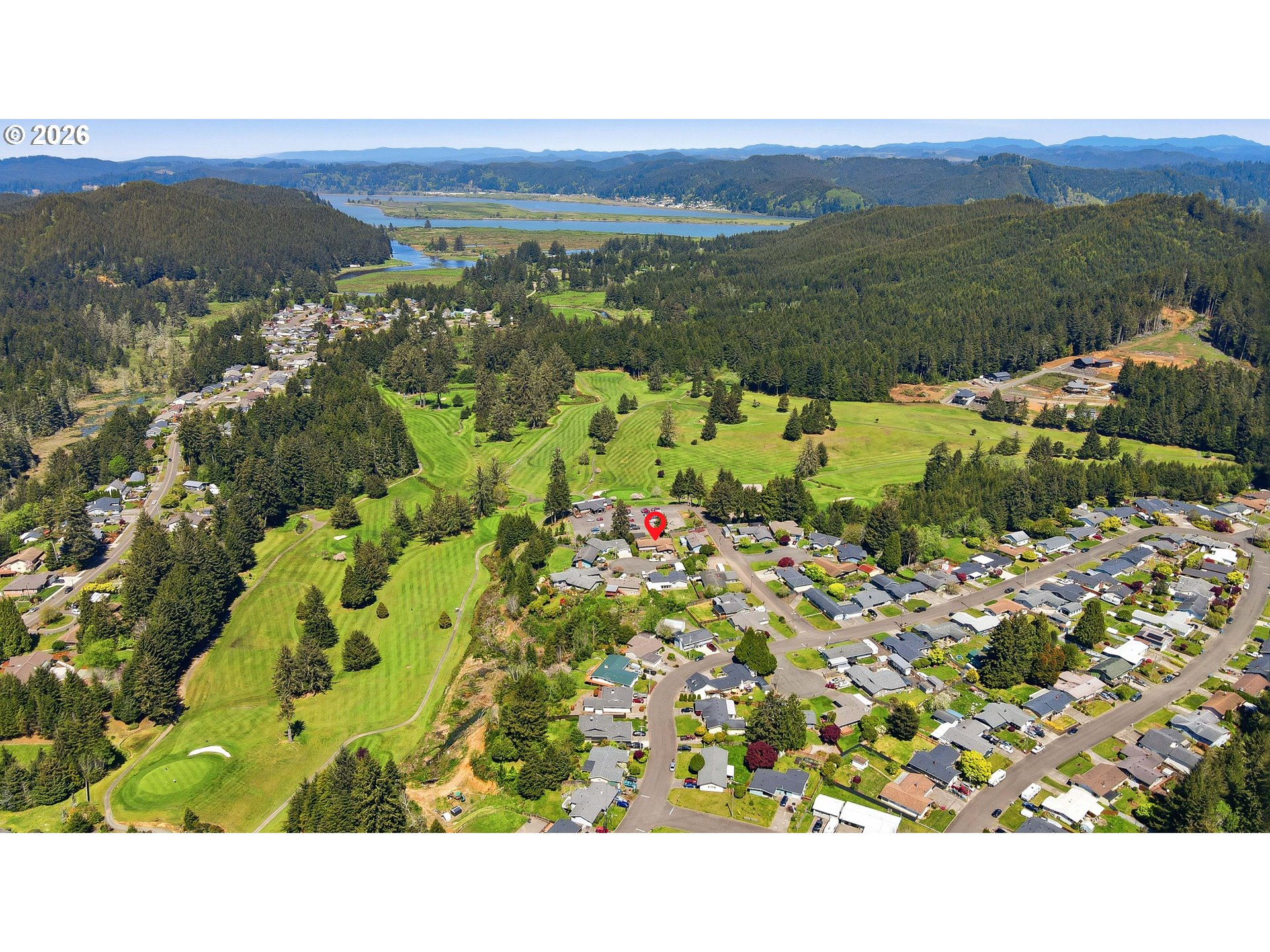 Golf course views! Nestled in a quiet cul-de-sac, this beautifully maintained 4-bedroom, 2.5-bath home offers sweeping views of Forest Hills Golf Course. The spacious floor plan features a chef’s kitchen with newer appliances, solid surface countertops, and custom cabinetry. The open living and dining areas flow seamlessly onto a large partially covered deck, creating the perfect space for entertaining or enjoying the peaceful surroundings. The lower level includes two additional bedrooms, a comfortable family room, and a sliding door leading to the spa, with steps down to a convenient golf cart garage. Extra parking is easily accessed from below the home. Ideally located just minutes from the Pacific Ocean, Umpqua River, area lakes, scenic hiking trails, and the most amazing sand dunes on the beautiful Oregon Coast, this property offers the perfect blend of comfort, recreation, and coastal living.