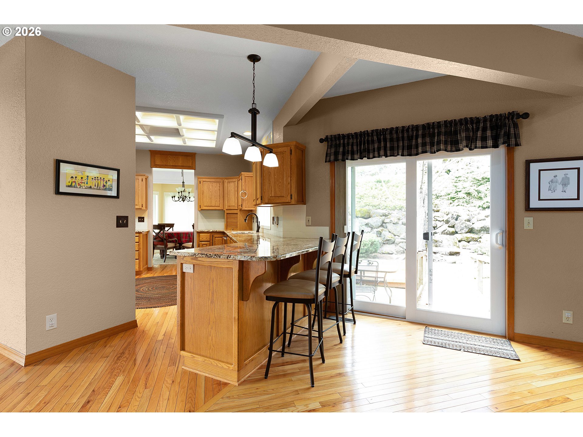 (503) 893-8874Perfectly positioned in desirable Warewood Estates, this meticulously maintained and beautifully updated home offers comfort, style, and effortless living. From the moment you arrive, you’ll appreciate the low-maintenance yard, inviting patios, and peaceful spaces designed to take in the surrounding views.Inside, thoughtful updates shine throughout, including a new roof, fresh paint, and new windows, creating a move-in-ready experience. The main-floor primary suite provides convenience and privacy, while the heart of the home—the chef’s kitchen—has been tastefully upgraded with granite countertops, stainless steel gas appliances, and a stunning custom coffered ceiling, all overlooking the private backyard.The living room invites you to unwind by the cozy fireplace, while the dramatic great room impresses with soaring two-story ceilings and rich hardwood floors, offering the perfect space for gathering and entertaining.Upstairs, two spacious bedrooms share a well-appointed bathroom, and a charming loft overlooks the great room below—ideal as a reading nook, office, or flex space to suit your lifestyle.This home blends timeless design with modern updates in one of the area’s most sought-after locations.
