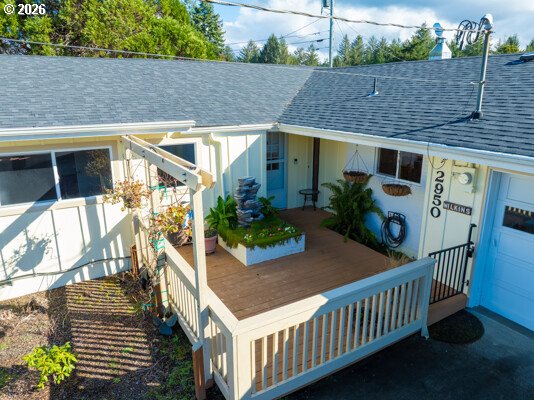 (503) 893-8874Lovely, well cared for, move in ready, single story family home. Located just two blocks from Reedsport Golf Course. This cozy yet expansive home offers something for everyone. Front deck invites you into this warm and inviting home. Newer remodeled kitchen with beautiful cabinetry and stainless appliances. Primary bedroom has it own mini split with ac. Family room boasts granite surrounded pellet stove. Lovely bathroom with walk in tile shower. Family room boasts granite surrounded pellet stove. Walk onto the back deck and take in the southern sun and beauty of the yard filled with plants and flowers, use the potting shed to plant your own beauty. A huge shop with 220V-electric and concrete floors, to start your own hobbies and or store your boats and toys. Shop has a large 200sf loft for storage. Shop also includes a complete bath with walk in shower. Home has brand new roof 2025. Comfy and finished Bonus room above shop for an extra get away space. This home has two water heaters one for home an one for shop. Just minutes to Pacific Ocean, beaches and dunes. Call you favorite realtor today for showing.