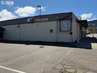 With 7500 square feet of usable space, this single level property will serve as a great retail or warehouse option. Located on Hwy 99 and in central Drain, the visibility is unsurpassed! Paved onsite parking is plentiful and additional street parking is available.