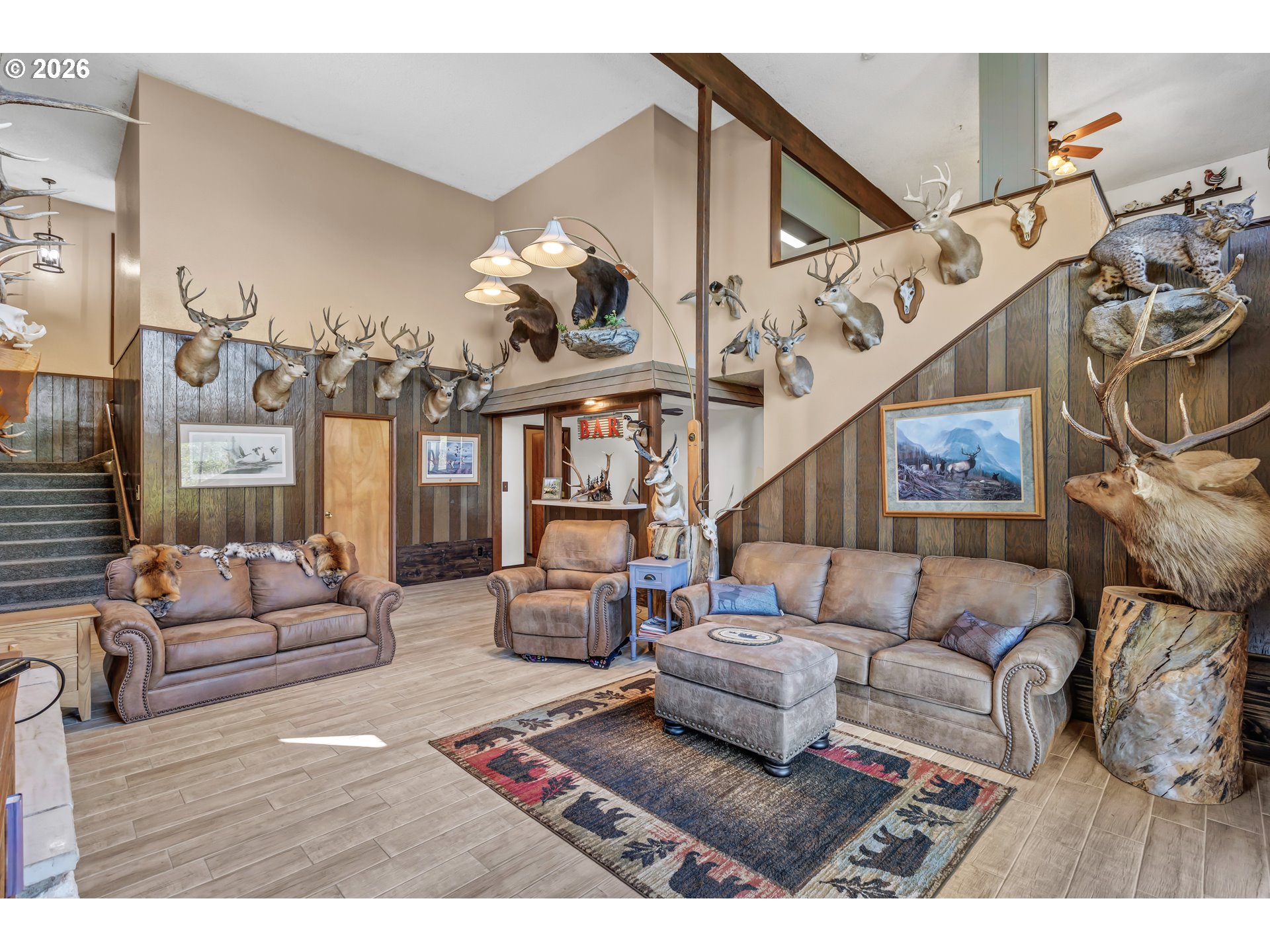 (503) 893-8874Beautifully refinished home on 5 acres off desired Fisher Rd. area. This home has room for it all, and views all around. With 6 bedrooms, an office, living room and family room, there is no shortage of space and storage. There are 3 bedrooms upstairs, and 3 bedrooms and an office downstairs. The living room boasts 18' ceilings, a floor to ceiling fireplace, and a wet bar. The kitchen/dining room has a covered deck with an eagles view of Fisher Rd. Outdoors there is a detached garage with workshop, room for an RV, boat, toys, garden area, and fenced area currently used for goats. There is so much to see, you have to do it in person. Call for a tour today.