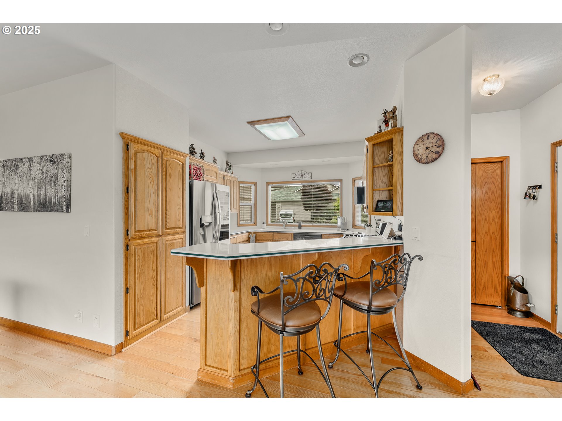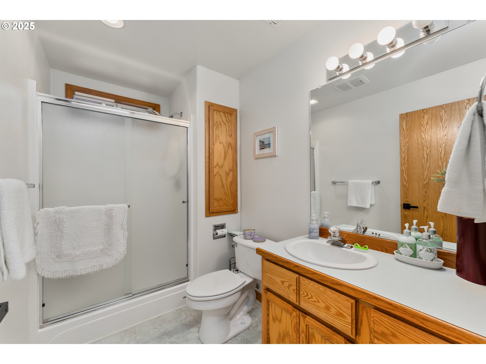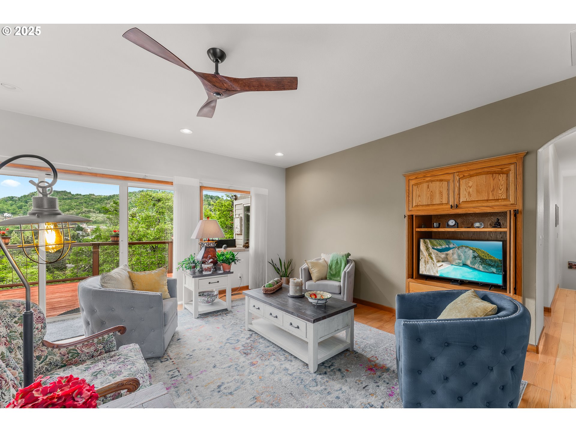 Nestled in the scenic hills above Roseburg, this immaculate 2,362 sf home with 3 beds and 3 baths offers the perfect blend of comfort, convenience, and tranquility in The Point, a gated 55+ community. Ideally situated near shopping, Mercy Hospital, Stewart Park and the YMCA. The main level of the home features the primary bed with its own bath, a comfortable guest bed and full bath, kitchen with upgraded appliances, and an inviting living room that opens to a deck with great views. Hardwood floors, recessed lighting, and abundant natural light create a bright, welcoming atmosphere throughout. The versatile lower level is perfect for entertaining, hosting family, or accommodating a caretaker and features a generous bedroom, full bathroom, living area, storage, and walk-out access to the covered deck. This exceptional home combines low-maintenance elegance set in a serene, sought-after community with incredible natural beauty.