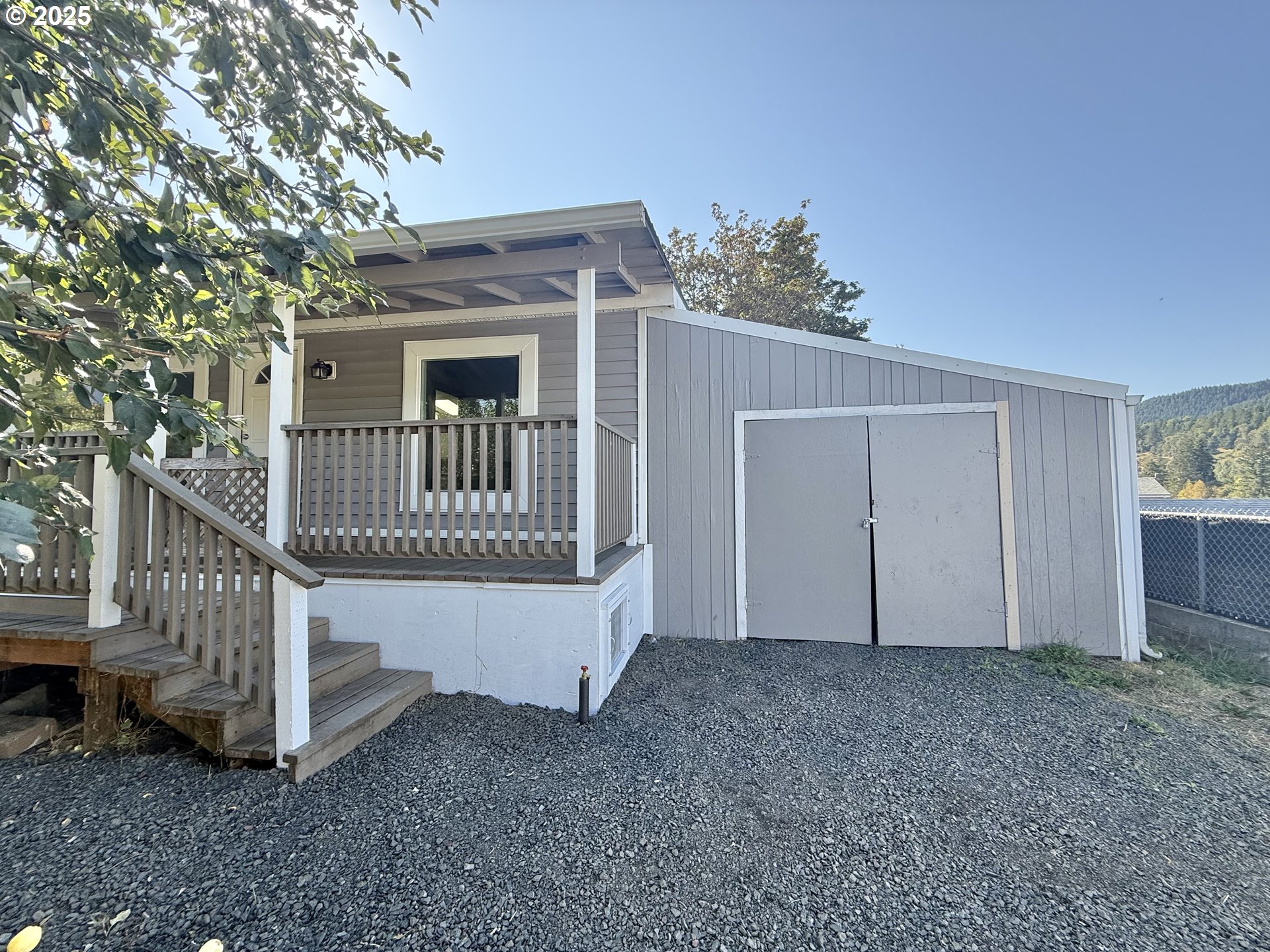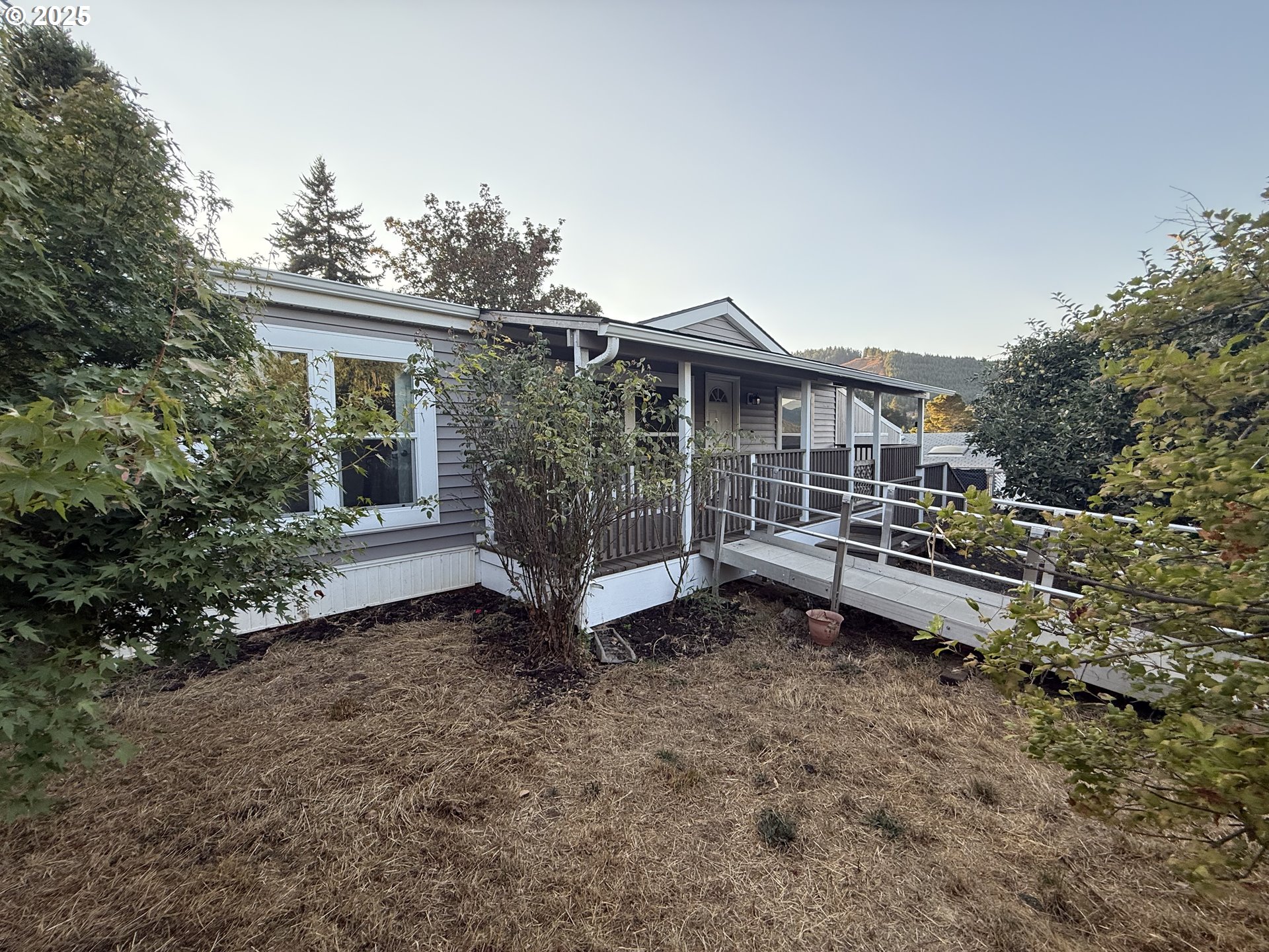 Set back off the road, the setting of this beautifully updated manufactured home offers elbow room and comfort with most of the lot extending in front of home, plus a fenced back yard for pets, play or relaxation. Inside, you'll find a complete remodel with modern finishes throughout including luxury vinyl plank flooring; new dual-pane vinyl windows; custom cabinets and counters in kitchen and bathes; updated appliances, sinks and fixtures; new bathtub and shower; plus tall toilets. Both the interior and exterior have fresh new paint. Additional improvements to make the home accessible to more buyers include an entry ramp; and wide doors with lever handles on the interior and exterior. With three bedrooms and two bathrooms, this home blends style with functionality and will be truly move-in ready at close of escrow. The attached garage and detached small outbuilding in the back yard provide storage. All of this and incredibly low taxes! Located in a friendly, small town, with numerous amenities nearby including a grocery store, deli, hardware store, post office, library, Dollar General, gas station, and auto repair. Yoncalla is conveniently located for a reasonable commute to either Eugene or Roseburg.