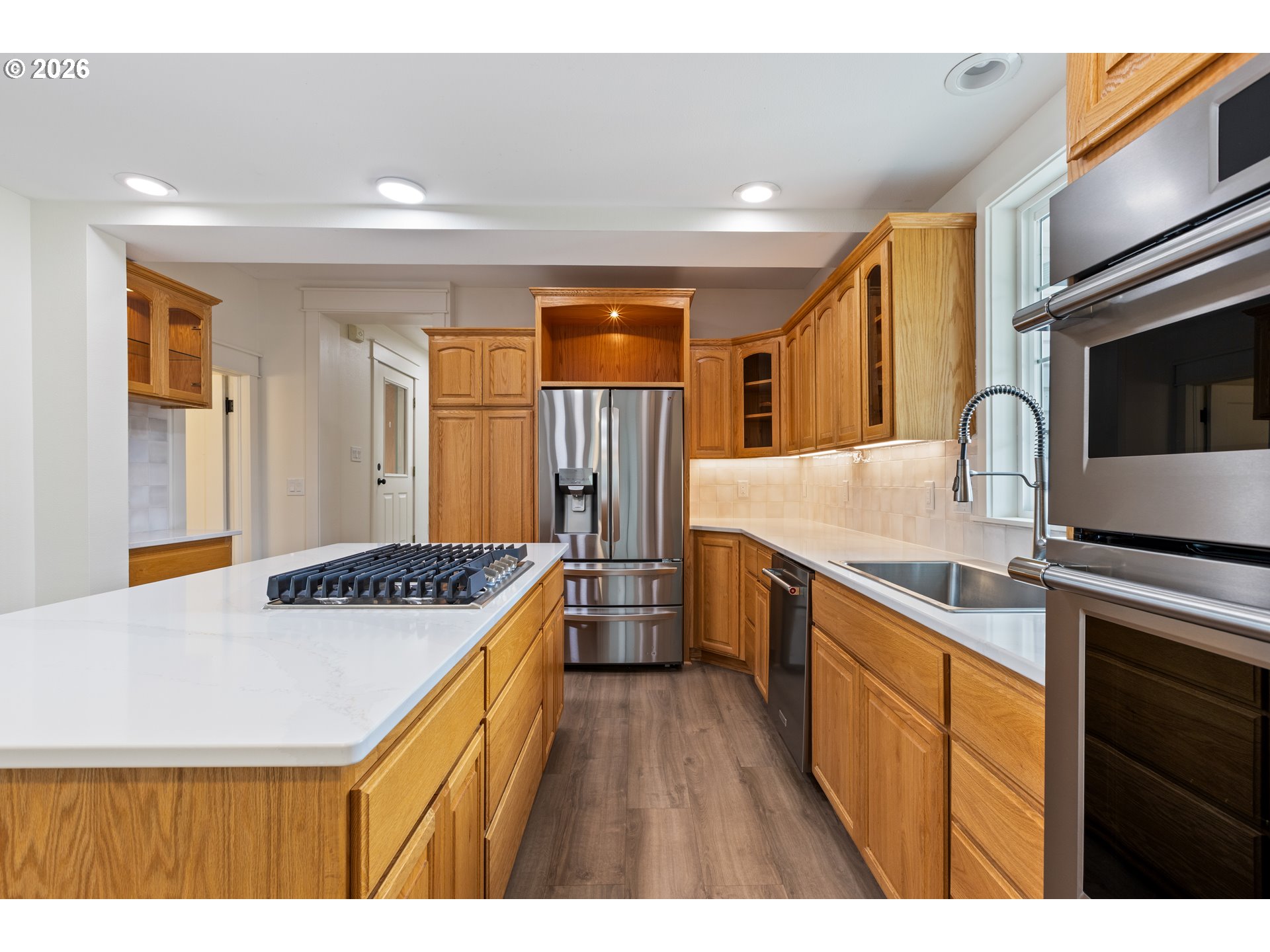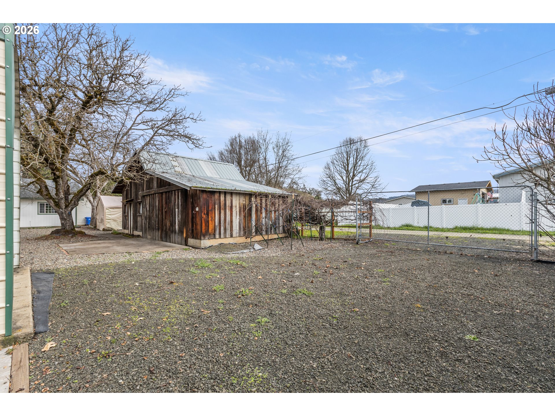 (503) 893-8874Rare opportunity to own a beautifully remodeled farmhouse on a flat, fenced and highly usable 0.69-acre property with abundant parking, workspace, and room for hobbies or toys. This spacious 2,531 sq ft home offers 4 bedrooms and 3 bathrooms, including two primary suites with a second primary located on the main level—ideal for guests or multi-generational living. The upstairs primary suite features a large walk-in closet, double sink vanity, and an adjacent office or nursery. Originally built in 1910 and thoughtfully remodeled, the home blends classic farmhouse character with modern upgrades including high ceilings, luxury vinyl plank flooring throughout, marble countertops, stainless steel appliances, gas cooktop, built-in convection oven and microwave, tile backsplash, cook island, walk-in pantry, wood-burning stove, central heating and A/C, plus an additional mini-split system. The formal dining room features French doors opening to a patio overlooking the backyard. The property is designed for flexibility with an oversized garage, multiple gated driveways, and extensive storage. A second driveway provides dedicated RV or boat parking with water and electrical hookups, while a third gated driveway leads to a metal Quonset hut with roll-up door. Additional improvements include a powered 3-bay shop/barn, multiple sheds and outbuildings, and a fenced garden area with raised beds. The yard also features grapevines, a mulberry tree, and a variety of fruit trees including pear, peach, nectarine, apricot, apple, and plum. Large backyard deck and welcoming covered front porch complete this exceptional property.