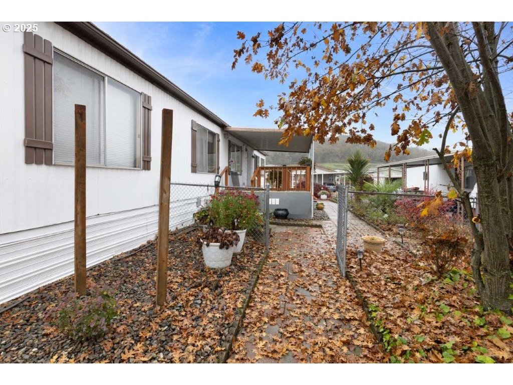 This well cared for home is located in the desirable Rose Terrace gated community for residents 55 and over. Enjoy a peaceful setting with convenient access to shopping, medical services, and all the amenities the beautiful Umpqua Valley offers. Inside, you'll find an updated kitchen, very light & bright with hickory cabinets & all appliances included. Dining/family room offers additional cabinetry and sliding glass door. The open floorplan features a comfortable layout with vaulted ceilings, three bedrooms and two full baths. Primary is spacious with walk-in closet, step in shower and garden tub. Additional amenities include ramp for access, covered front deck & heat pump for year round comfort. A covered carport and three tool sheds offer sheltered parking and extra storage, one of the tool sheds is newer with power. Monthly space rent: $778 (Includes water, sewer, and garbage). This lovely home shows very well and features several updates. Make this move-in ready home yours today.