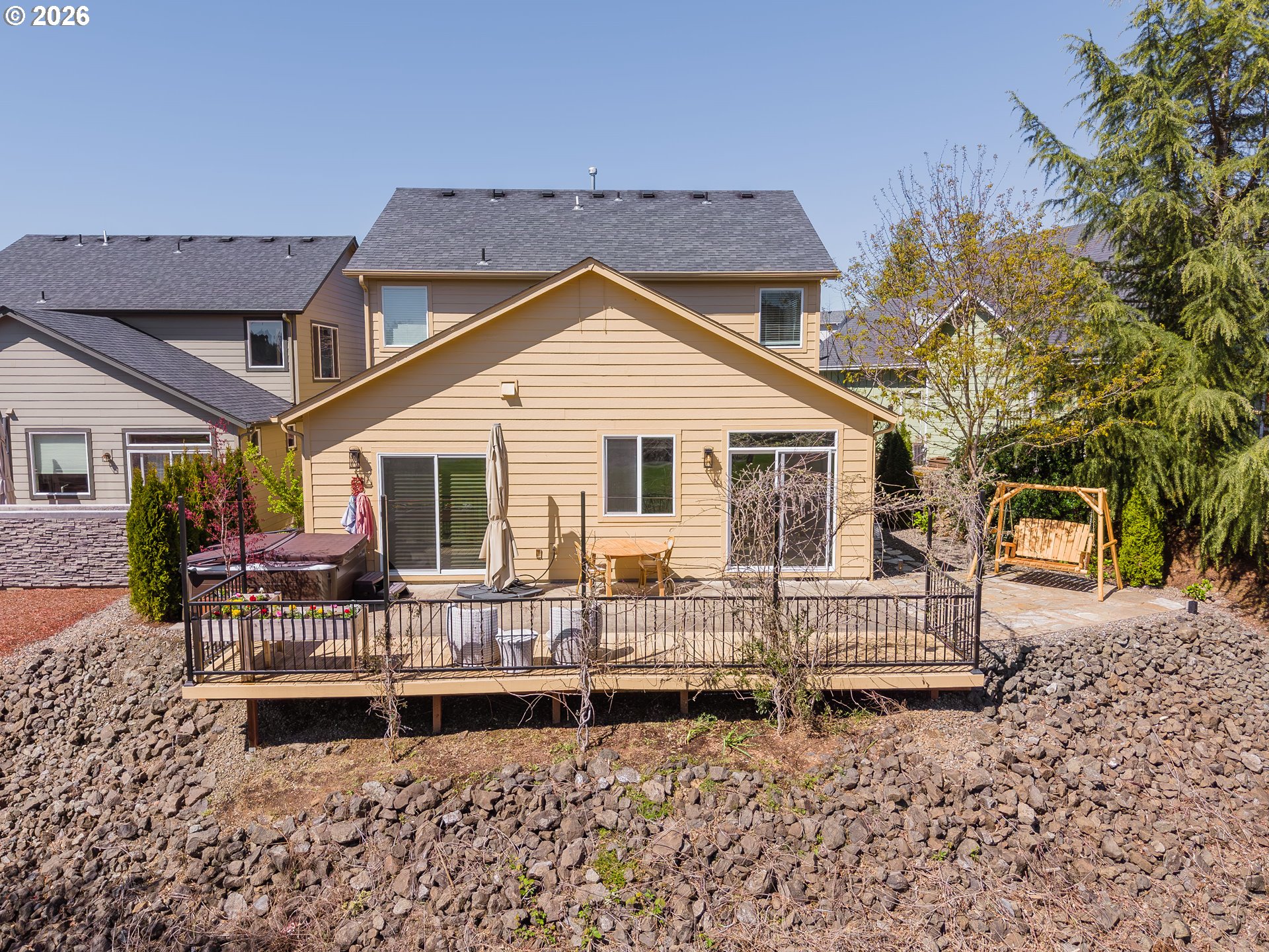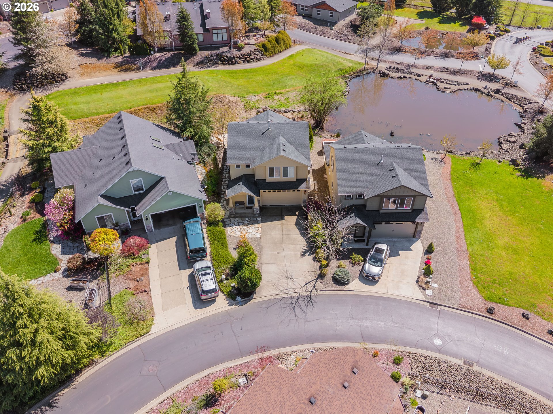 Set within Fairway Estates, this home offers a functional, low-maintenance layout with an open and airy feel. Inside, you’ll notice the natural light, high ceilings, vinyl plank flooring, recessed lighting, and a comfortable living room centered around the fireplace. The open-concept living room and kitchen make everyday living feel connected and easy. The kitchen is thoughtfully designed with granite countertops, stainless steel appliances, and a large island with bar seating that naturally becomes the centerpiece of the home. The primary suite is located on the main level, offering both convenience and privacy, complete with a soaking tub, separate shower, double sinks, and a walk-in closet. Upstairs, the additional bedrooms provide separation and flexibility for guests, work, or everyday living. Step out back to the deck and take in the pond and 16th tee views. With outdoor kitchen hookups already in place and low-maintenance landscaping, the space is ready to enjoy. The two-car garage includes an EV hookup for added convenience.