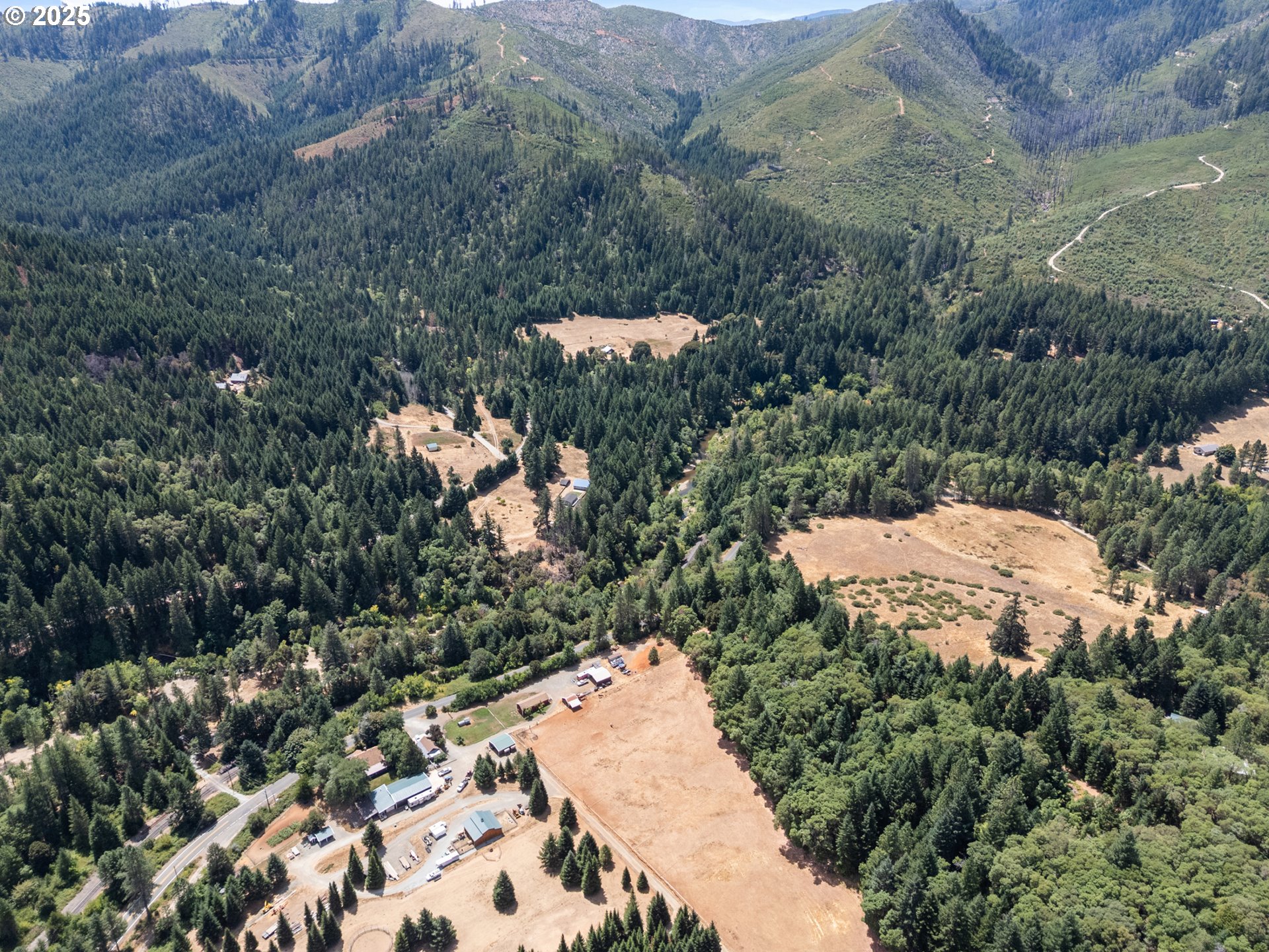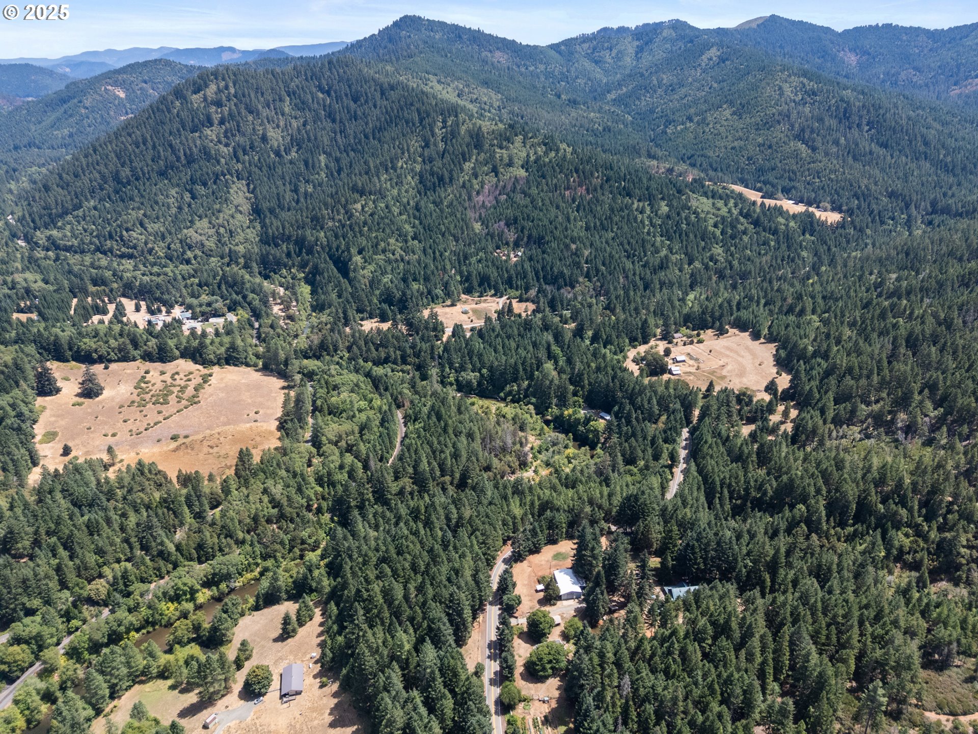 Nestled beside the serene Middle Cow Creek, this expansive property boasts two immaculate homes on nearly 19 acres of prime land. Elevated high above the floodplain, this location offers both safety and breathtaking views. The main residence exudes elegance with its wide hallway, genuine wood floors, and a combination of carpeted and tiled bathroom floors. THE BEAUTIFUL FURNITURE IS NOW INCLUDED IN THE PRICE OF THE HOME. The kitchen is a chef's dream, featuring a spacious island, a pantry, a butler's pantry, and a laundry area. A new wood stove graces the dining area, providing warmth on chilly evenings. The layout is open and inviting, seamlessly integrating the living, dining, and kitchen areas. Large windows ensure the space is light and bright, creating a welcoming atmosphere. Residents can relish the tranquility and soothing sounds of the stream below. THE SECOND HOME, built in 1995, is a high-quality Merlette unit. It is furnished and equipped with all the essentials, including a washer, dryer, refrigerator, beds, and more. The home has been thoughtfully designed to meet accessibility needs and requires a "Handicapped" permit. The property is adorned with several fruit trees, a greenhouse, a tool shed, and an additional storage building. This idyllic setting invites you to experience the beauty and splendor of nature, making it a true retreat. There is also marketable timber on the property. Come, indulge in the peace and magnificence of this lovely property and make it your haven. 2nd home is very little wear. All furniture included.