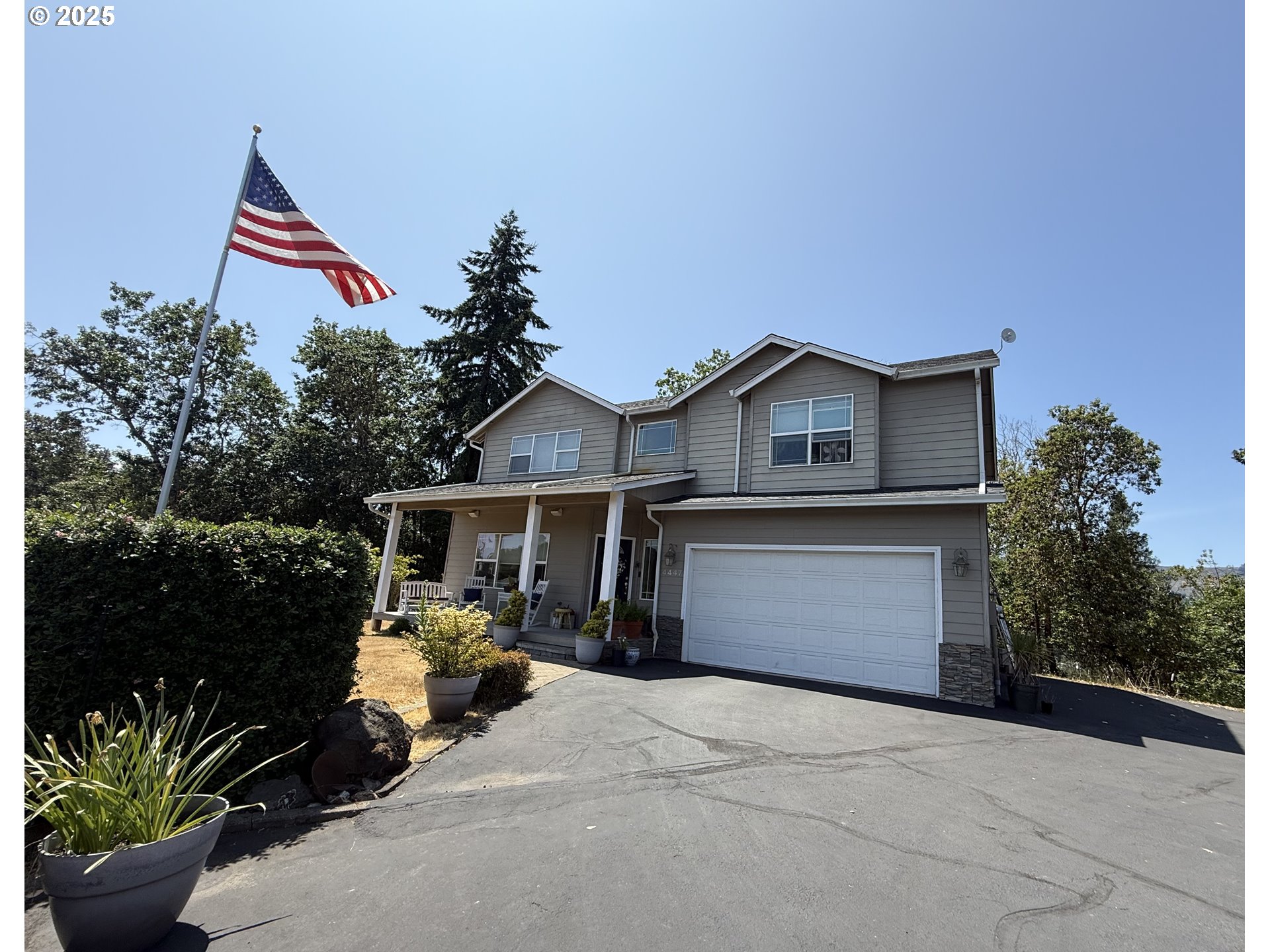 The only reason this fabulous home and property are available is due to the declining health of the sellers or they swear they would never leave! Their loss is your gain. With balance of purchase paid in cash ($265,000), an eligible buyer may be able to assume VA loan with 2.2% interest rate! Buyer does not have to be a Veteran. After passing through the gated entry, a paved driveway leads to a spectacular view from home and shop and electric is all underground. A view you will quickly grow to love and can enjoy for both the front and rear covered porches with Trex decking! The home is regal and in very good condition with newer hardwood floors in the living room and custom granite counters in kitchen and bath. The laundry room is so large it easily accommodates the built in desk. Upstairs, two large bedrooms share a hall bathroom. The primary suite comfortably contains a king sized bed, couch and several tables and a private bath with walk-in closet, shower, soaking tub and dual sinks. In addition to the attached two car garage and storage there is a 40'x36' shop/second garage which previously served as a vehicle repair business. The shop/garage has a sink, electricity, paint booth and room for four + cars or to house all of your toys! There is no HOA or CC&R's so make YOUR plans and come tour this beautiful home and property before its gone! New heat pump and A/C!