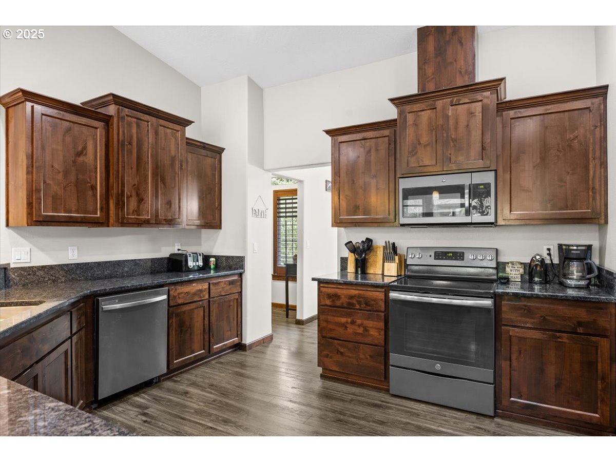 This exceptional property sits in the Beautiful Dixonville area. The gated entry provides a private secure entrance to this newer home sitting on over ten usable acres. The over 2500 sq. ft. home is a single level with a 2 car attached garage, with 4 bedrooms and 3.5 bath. Two of the bedrooms are primary suites ready to accommodate your extended family or guests. The 3.5 bathrooms as well make this home very accommodating. The kitchen has granite counters, an island and nine foot ceilings with an open concept to the vaulted living room. The large concrete back patio is ready for those evening BBQ's. Don't forget the 30 x 50 completely steel shop, with a 14ft ceiling and includes a loft and custom room inside for an office. The monolithic foundation depth for the shop is two foot. The driveway is paved. This lovely property has a seasonal stream and lots of wild life. Don't miss the small orchard. Peace and quiet serenity are the hallmarks of this beautiful property. The zoning is R2, meaning the property can be split into two acre parcels. It's a wonderful opportunity for having room for family members to live close. This is a welcoming Oregon Oasis away from the rest of the world. The VA loan is assumable at 2.75% and $325,000 amount.