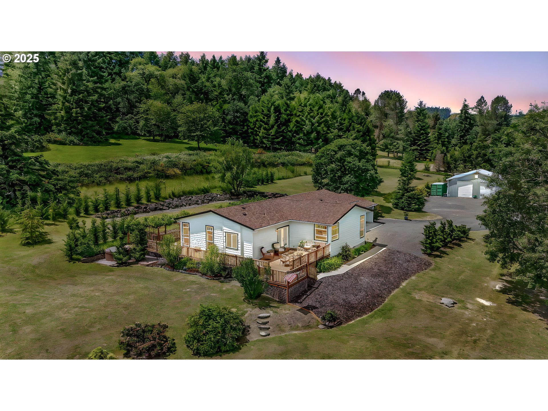 (503) 893-8874Here’s an exceptional property that’s the unique blend of functionality, beauty & serenity. Designed w/ versatility in mind, this property is ideal for EQUESTRIAN ENTHUSIASTS, HOBBY FARMERS, WORKSHOP LOVERS, or anyone seeking PRIVACY w/ SWEEPING MOUNTAIN VIEWS. Furthermore, enjoy WORLD-CLASS STEELHEAD, SALMON & BASS FISHING, w/ the PRIVATE ACCESS to the UMPQUA RIVER. Equestrian Highlights: Exquisitely designed 2017-built barn that features three matted 12’x12’ stalls w/ attached runs, a finished tack room, hay & shaving storage, an outdoor wash rack & convenient trailer parking. RIDE YEAR-AROUND in the 82’x140’ all-weather engineered outdoor arena or the 60-ft round pen- both designed w/ advanced drainage & premium/dust-free footing. The impressive 1,440 SQFT INSULATED WORKSHOP comes fully paneled w/ two RV doors, a concrete floor, 220 power, ample storage, & RV hook-up- perfect for projects, storage, or working from home. Two 10’x20’ storage sheds & a metal storage container provide additional flexibility. The 2008 triple-wide manufactured home is SPACIOUS & BRIGHT, offering an OPEN FLOOR PLAN ideal for both relaxation & entertaining. Recent improvements include a new roof (2024), exterior paint, new water heater & well pump. Step onto the 1,080 SQFT deck to soak in the INCREDIBLE MOUNTAIN VIEWS- or enjoy from your private hot tub! Throughout the property, you’ll find IMPRESSIVELY DESIGNED DRAINAGE, GENEROUS PASTURE SPACE, PERIMETER FENCING, MULTIPLE GATE ENTRIES, AMPLE PARKING & TURN-AROUND AREAS- making this property as practical as it is serene. You’ll also find a FRUIT TREE ORCHARD, multiple GARDEN AREAS & a PRIVATE POND. Conveniently located just 8 miles from town, this property offers the PERFECT BALANCE OF COUNTRY LIVING W/ MODERN ACCESSIBILITY. Pride of ownership is evident throughout this immaculately maintained property- offered at an exceptional value for all the features included. Don't miss the opportunity to make it yours!