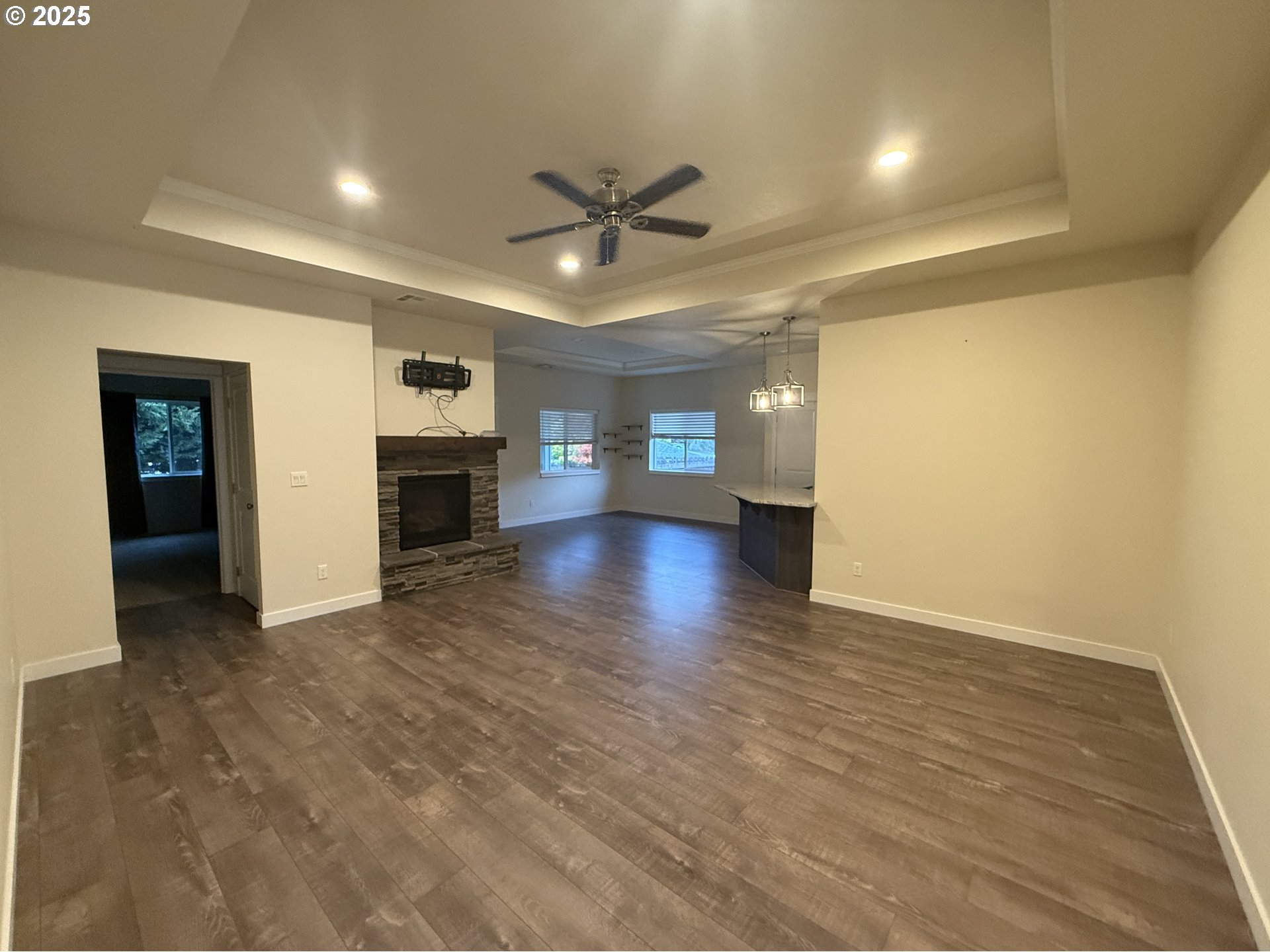 Discover this gorgeous custom-built 3-bedroom, 2-bathroom home located in a newer developed neighborhood with NO HOA and ownership of the shared community park area. Step inside to an open-concept floor plan designed for comfortable living and effortless entertaining. The spacious living room features a cozy gas fireplace with mantel, a recessed ceiling in living room and dining area, and easy access to the backyard patio.The galley-style kitchen offers stainless steel appliances, a pantry, and beautiful matching granite countertops that continue throughout the bathrooms — adding a cohesive touch of elegance. Relax in your primary suite, complete with dual walk-in closets, double sinks, a walk-in shower, a soaking garden tub, and a private water closet. Enjoy thoughtful details throughout: Bedrooms feature carpet and ceiling fans. Bathrooms finished with granite and tile flooring. Main living areas feature laminated wood floors. Utility room includes a sink and built-in storage. Outside, you’ll love the covered front and back patios, fenced backyard, and beautifully landscaped yard with sprinklers. The back patio includes a gas hookup for a grill or future fire pit — perfect for gatherings. A large outbuilding provides extra storage for tools or hobbies, and the extended driveway offers plenty of parking for vehicles, an RV, or a boat. Enjoy cozy neighborhood living with direct access to the community park, that lays within the cul-de-sac.