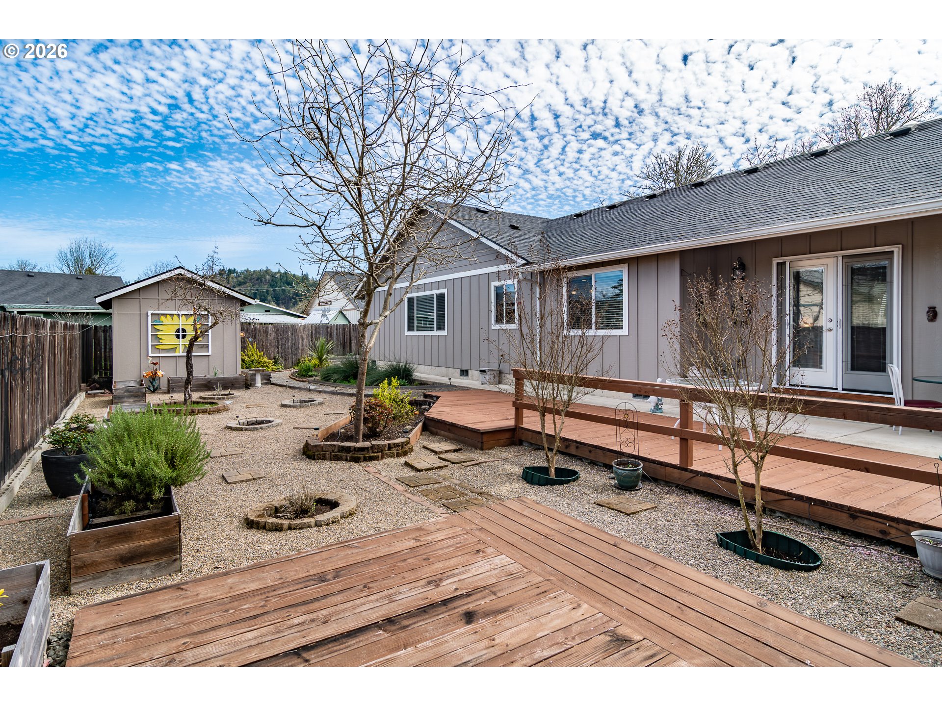 (503) 893-8874Nestled away, neatly manicured, & like new! There is much more then meets the eye here at this 2016 custom built, 3 bedroom, 2 bathroom, 1400 + square foot, home tucked away on a little over 1/4 of an acre fenced lot in Sutherlin, Oregon. Beautiful kitchen featuring granite counter tops, island, pantry, stainless steel appliances, single basin sink, soft close cabinetry with pull-outs, & more. Primary Suite features spacious walk-in closet, double vanity in primary bath with granite countertops & plenty of linen storage space. If you are one with extra vehicles, toys, and an RV this one is for you featuring not only a 2 car attached garage but also a 12 x 38 concrete RV Pad with full water, sewer, & electrical hookup! Additionally there is a quaint little 'She-Shed' or 'Tool Shed' whatever fits your needs located in the rear yard amongst neatly landscaping with concrete sidewalk, gravel pathway, & raised garden beds as well as Pear, Cherry Tree's, & more throughout the property. Set up an apt today to tour this beautiful home before it is gone!