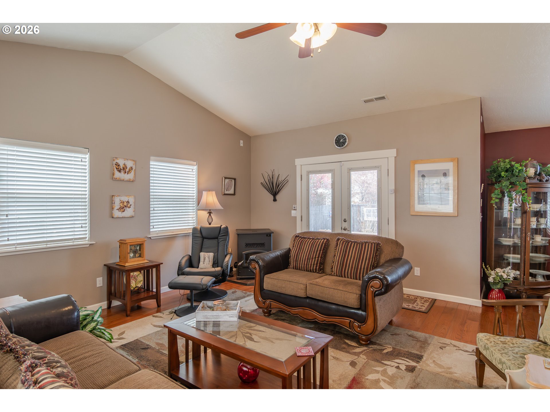 CeilingFan, GarageDoorOpener, Granite, SoundSystem, VaultedCeiling, WoodFloors