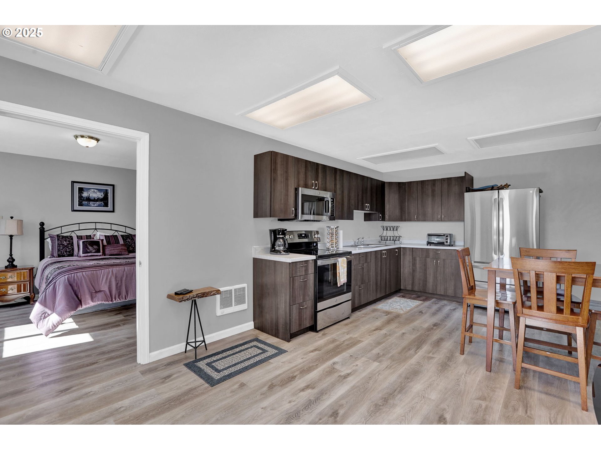 Perched above the valley with over 245 acres of sweeping, unobstructed views, this extraordinary estate is a rare sanctuary where modern luxury meets pristine natural beauty. Custom designed and built by the current owner, the 3-bedroom, 2.5-bath main residence is a masterpiece of craftsmanship, offering refined finishes and inspired living spaces that embrace both comfort and sophistication. A chef’s dream kitchen anchors the home with striking granite countertops, knotty alder cabinetry, stainless steel appliances, convection oven and microwave, and a built-in trash compactor. The great room is a showpiece with its vaulted ceilings, floor-to-ceiling windows framing breathtaking panoramas, and a zero-clearance wood stove that invites warmth and gathering. The primary suite is an indulgent retreat with dual granite vanities, marble flooring, a spa-like soaking tub, and a walk-in shower with dual shower heads—an oasis designed for relaxation. Expansive covered decks with Trex decking extend the living space outdoors, ideal for both grand entertaining and quiet evenings immersed in nature’s beauty. Elegantly remodeled, the 1-bedroom, 1-bath guest residence offers refined comfort with LVP flooring, updated appliances, and modern finishes—perfect for visitors or as a private retreat. This estate’s 245+ acres are a true rarity: rolling pastures for equestrian pursuits, 88 acres of harvestable timber, and abundant space for recreation and exploration. Two pole barns and a 30x30 heated shop provide ample versatility for hobbies or work. For those seeking a turnkey lifestyle, essential equipment—including a D3 bulldozer, tractor, trailer, and log splitters—may be included.