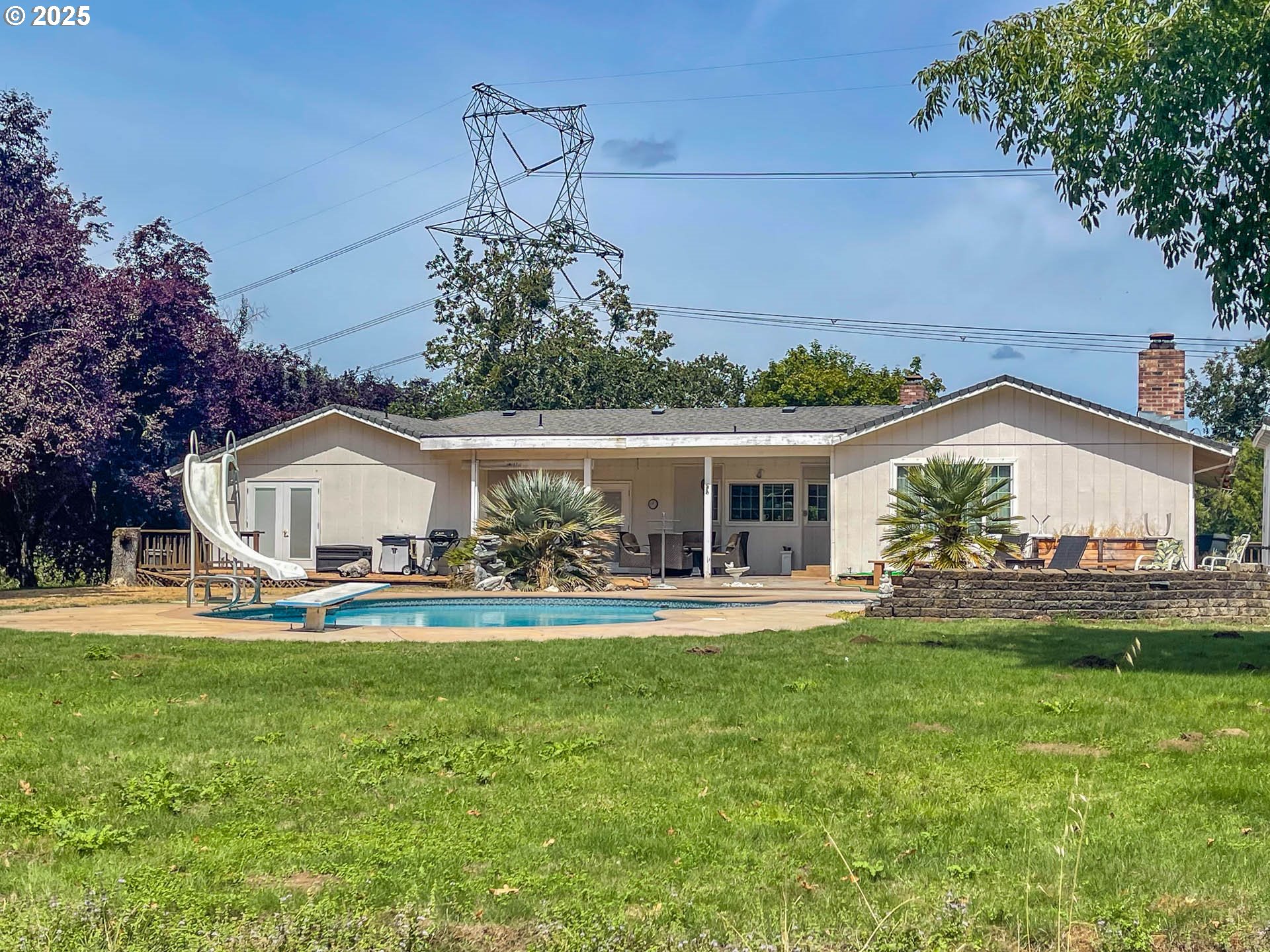 (503) 893-8874This large one-level, custom one-owner home has it all! It features very large rooms, formal living and dining rooms, kitchen that is uniquely designed in a 270 degree circle with cook top in island, large activity room with bar, slider that opens up to the patio and in-ground pool with slide and hot tub, 3 bathrooms, large utility with washer/dryer included, and oversized double garage. The property has a circular drive and a large shop with 4 bay parking. All this on over 20 acres. Possible owner terms.