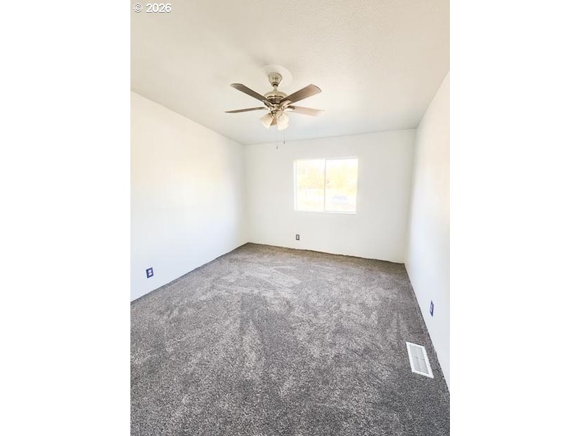 Manufactured home situated on three tax lots totaling .71 acres, offering ample space and RV parking. The property features established fruit trees and a spacious layout. Recent updates include a new hot water heater in 2025 and a roof overlay completed in 2023. Interior offers ceiling fans in all bedrooms and carpet flooring throughout. The primary suite includes a private bathroom and walk-in closet. Enjoy the vaulted living room with laminate flooring, along with a spacious kitchen featuring laminate flooring and a separate utility room for added convenience.