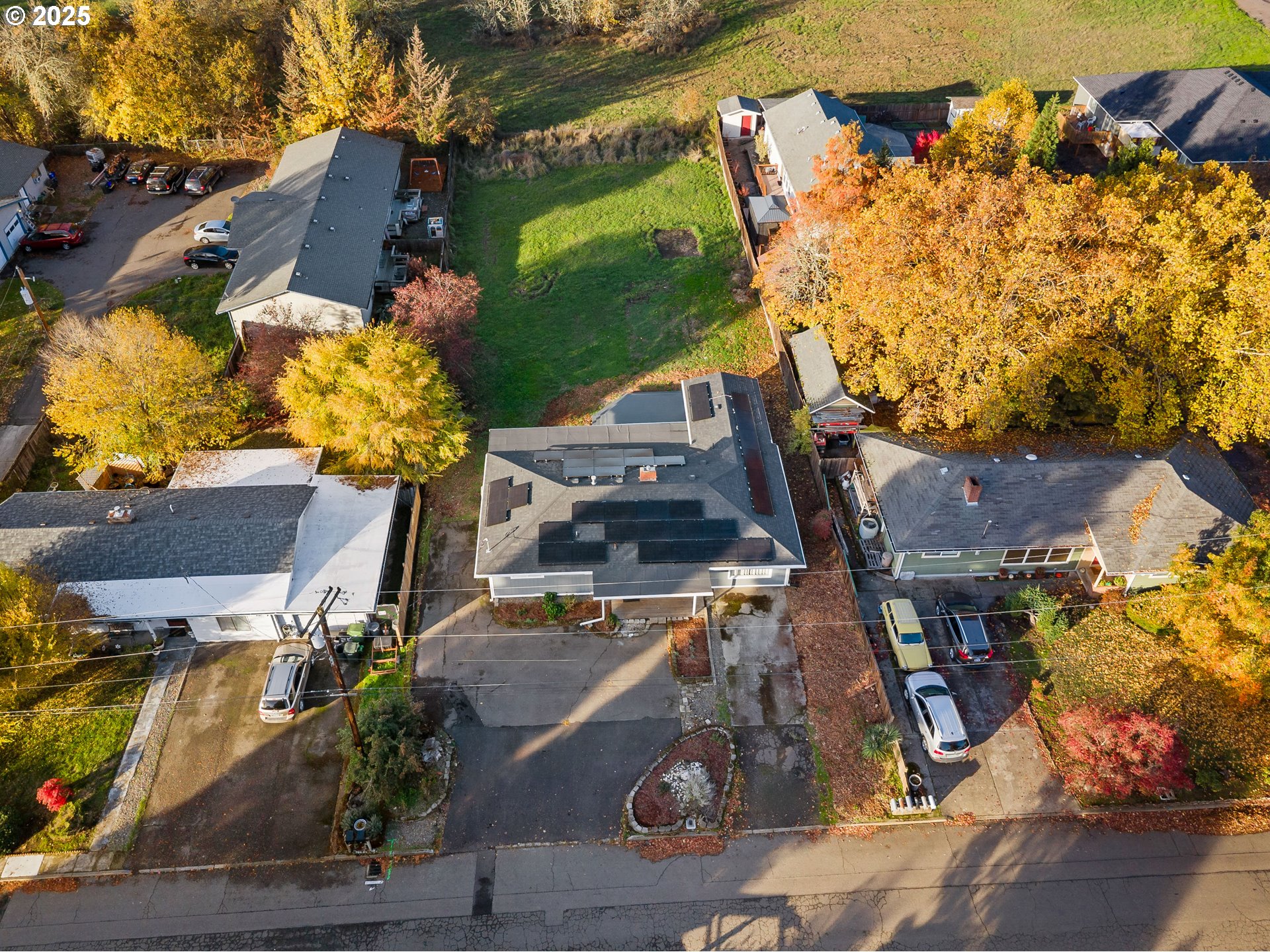 WOW! Tucked away on nearly half an acre in the heart of town, this 4-bedroom, 2-bath, 1716 sq ft home delivers that “country feel” without giving up the convenience of city living. The oversized lot offers space for your toys, garden, or even potential development of ADU, second home, or duplex (buyer to verify with city planning). The home’s fresh exterior sets the tone with newer siding, paint, roof, and solar panels for energy efficiency and peace of mind. Solar panels are included in the purchase price and owned outright, helping you save money on utility costs. A large driveway adds great curb appeal and plenty of parking, while the covered front porch gives a warm welcome. Inside, a light-filled, open-concept layout brings together the living, dining, and kitchen areas. The fully remodeled kitchen is both stylish and functional, featuring quartz countertops, stainless steel appliances, open shelving, tile backsplash, and a large island with bar seating. The electric fireplace adds a modern touch of comfort, complemented by newer luxury vinyl plank flooring and updated fixtures throughout. The layout features three bedrooms and one bath on one side, with a private primary suite and an additional bedroom on the other. Hardwood floors in the bedrooms add a timeless touch, and the home’s forced air HVAC keeps things comfortable year-round. Out back, a covered patio and expansive deck overlook the fenced yard—perfect for entertaining, play, or simply enjoying the open space. A hard-to-find combination of updates, space, and location, this property blends practicality with potential in a setting that feels like home. Schedule your private tour today!