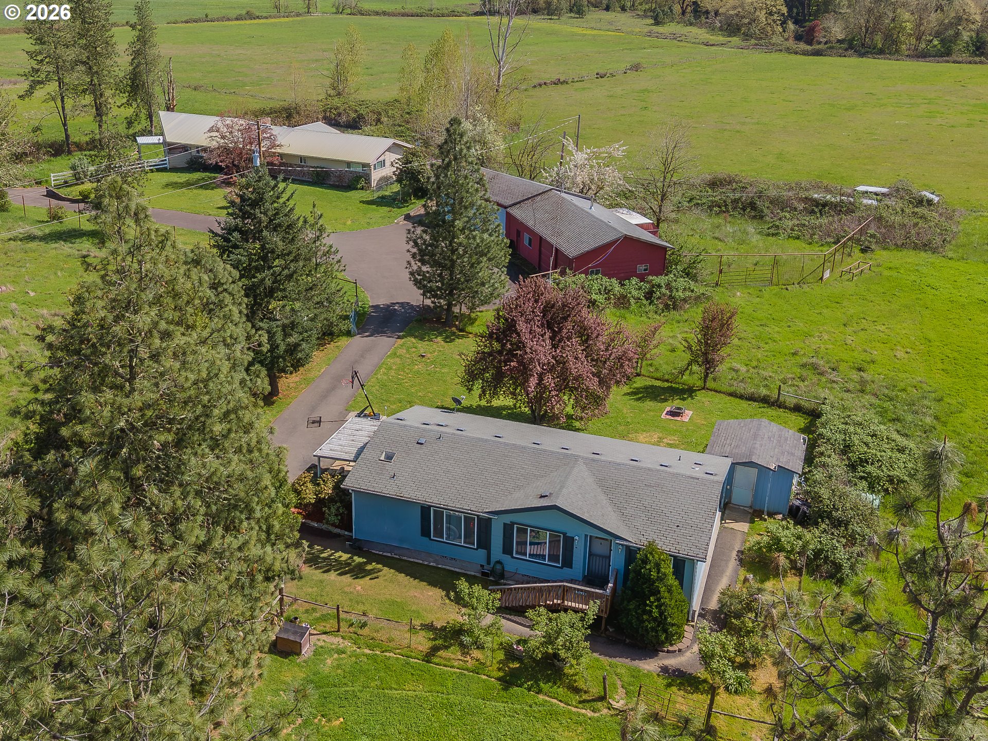 (503) 893-8874This is the kind of property that feels like its own world—private waterfront, peaceful, and full of possibility. The updated main home welcomes you with warm living spaces, two fireplaces, and views that stretch across mountains and open land. Mornings begin on the covered deck with coffee overlooking the pastures; evenings end beside the fire or soaking in the jetted tub of the primary suite. The finished basement offers room to play, create, or unwind. The second residence—set apart from the main home—gives guests or family their own quiet space. Outside, the land becomes part of your daily rhythm: pasture and hay fields, barns ready for animals, irrigation rights to keep everything thriving, a fenced garden for growing seasons, and a dog run for four-legged companions. The 5-bay workshop, complete with power and bathroom, is a dream for projects, storage, or equipment. All of this, tucked away in privacy yet close to town, creates a rare blend of convenience and country living. Schedule your private tour today!