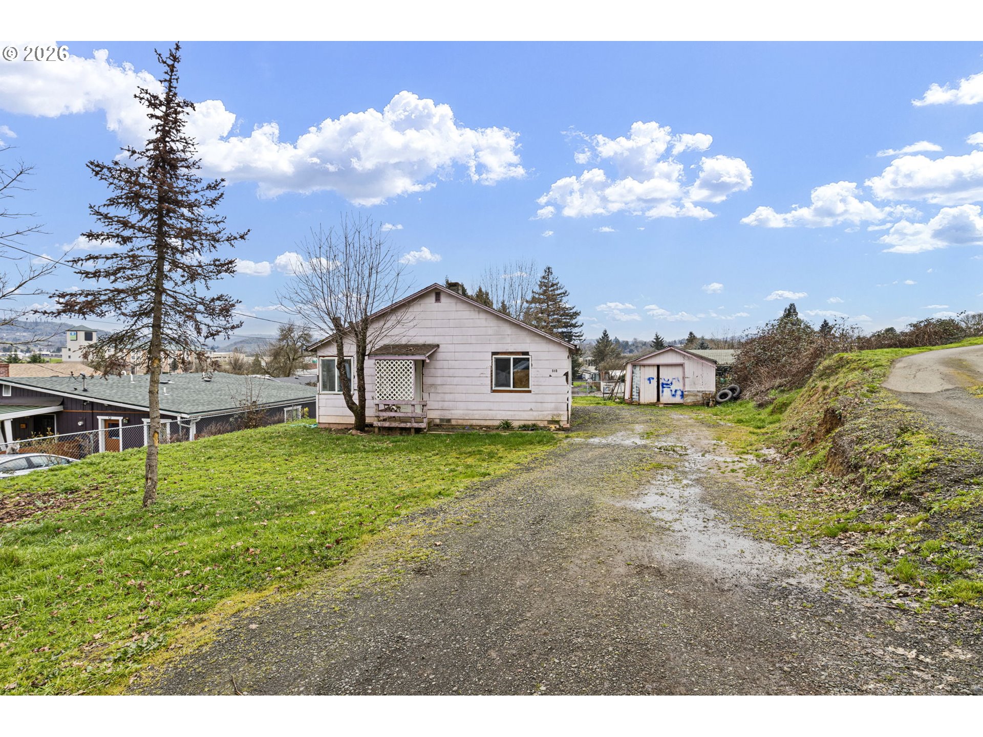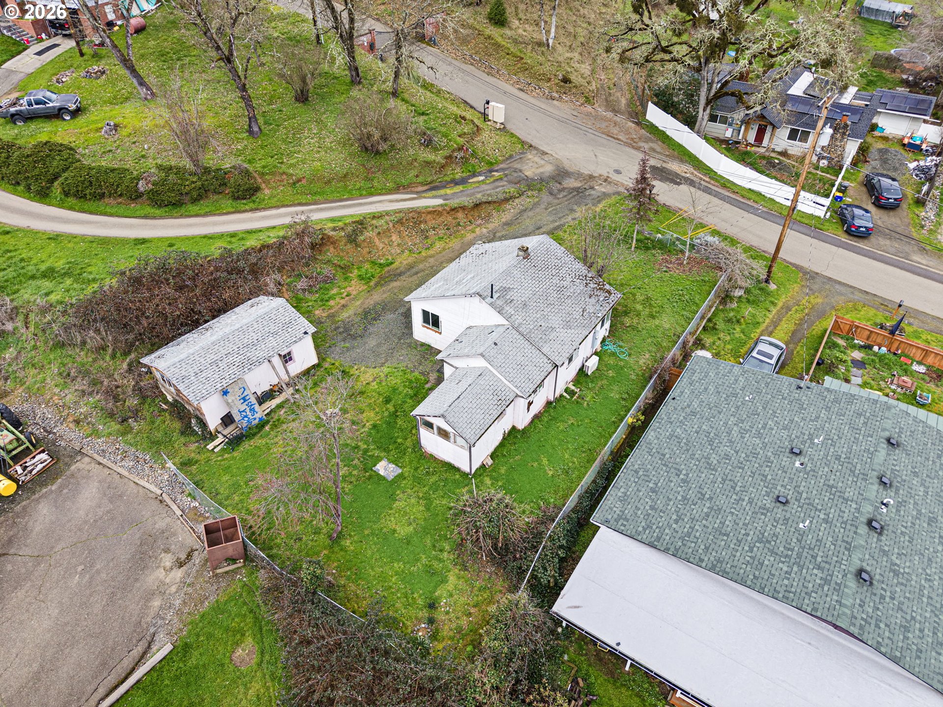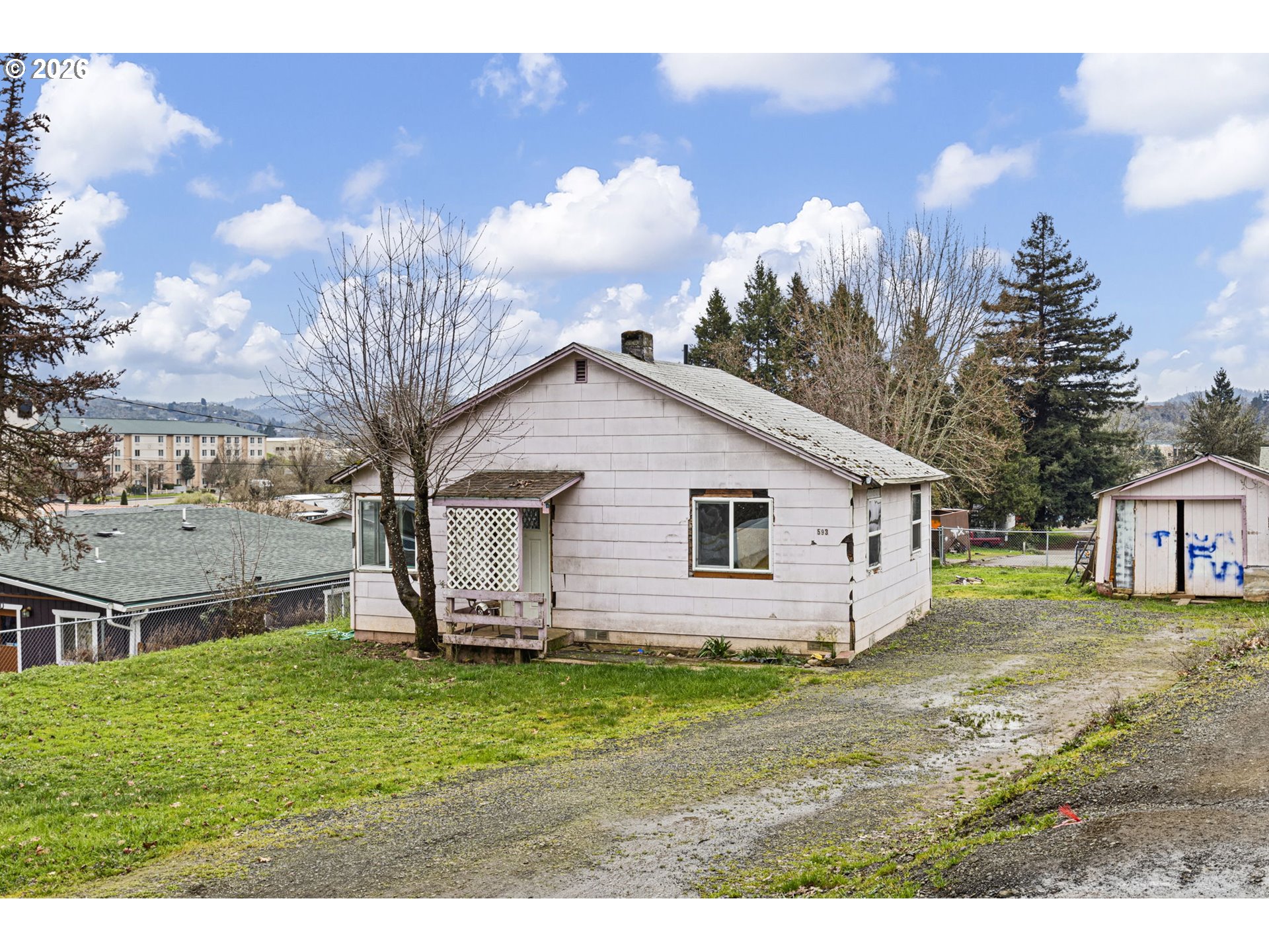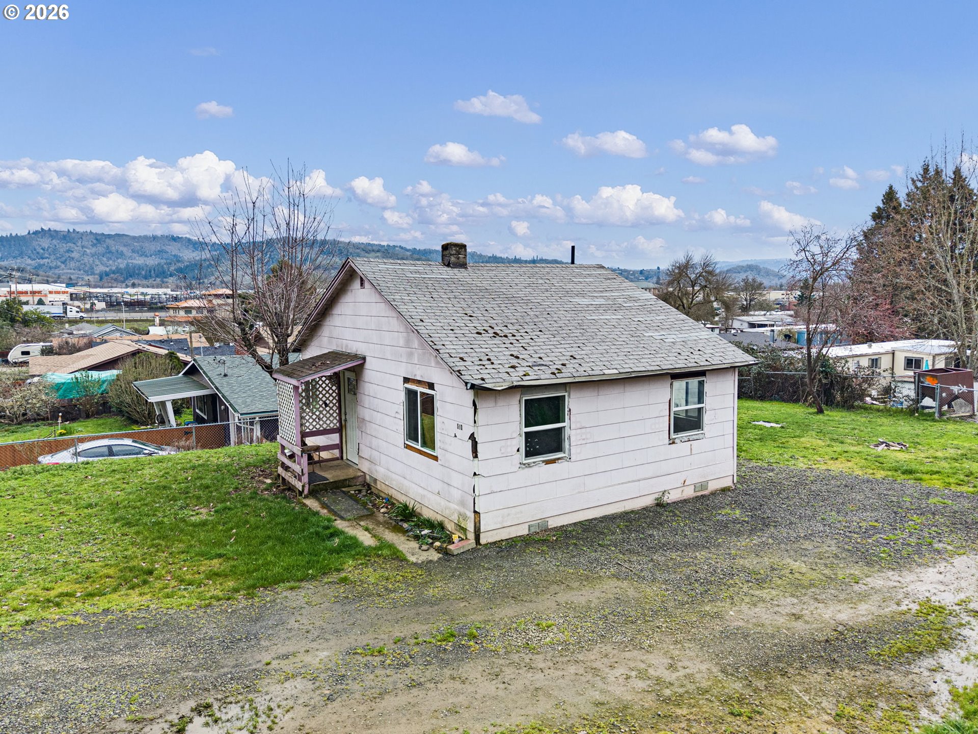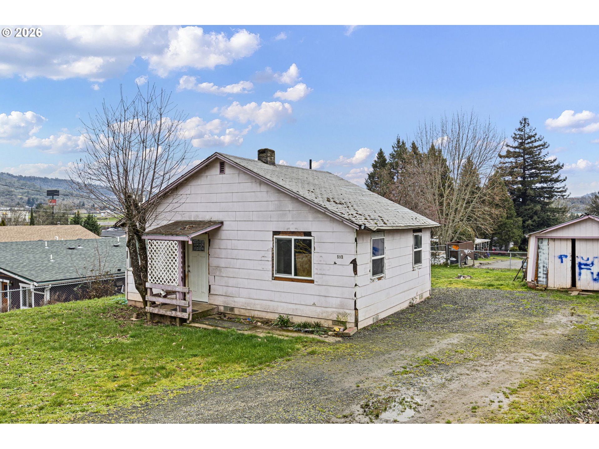 (503) 893-8874Investor or sweat-equity opportunity in Roseburg! This 2-bedroom home sits on a usable city lot with hillside and neighborhood views and offers a simple, functional layout ready for renovation. Interior features include double-pane vinyl windows, LVP flooring, newer ductless mini-split heat pump, and a kitchen with existing cabinetry and appliances providing a starting point for updates. Property needs exterior/interior repairs and cosmetic improvements, but offers strong upside potential. Detached outbuilding and driveway area provide additional possibilities. Sold as-is.