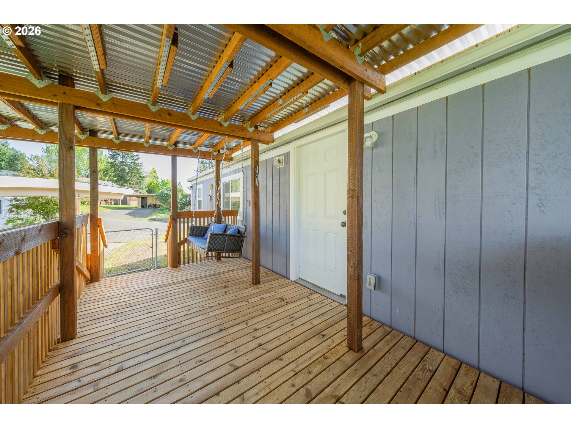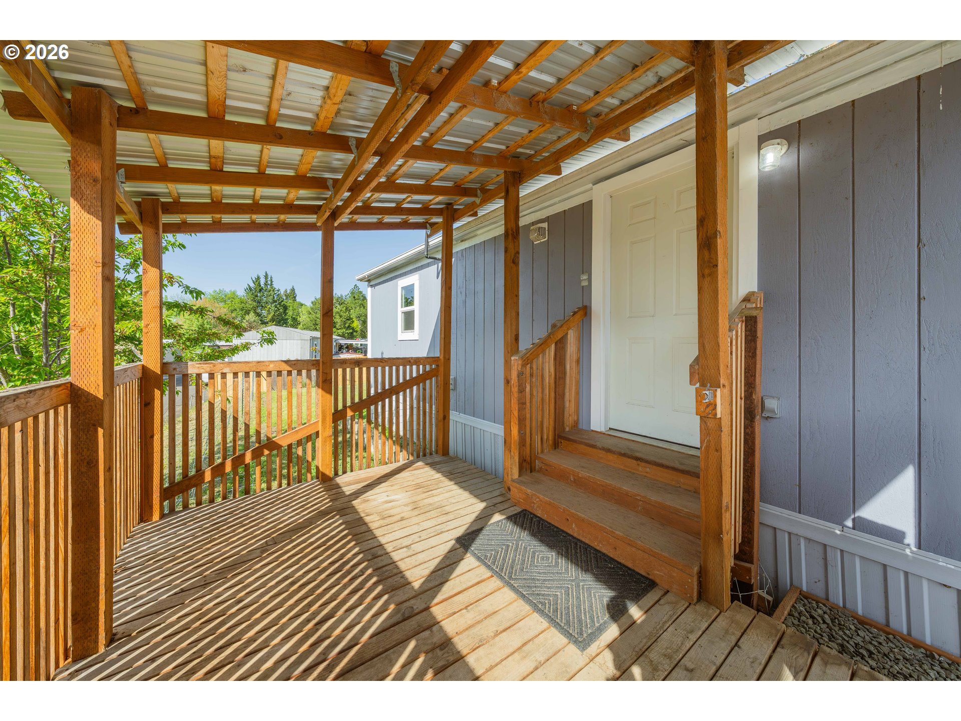 Beautifully remodeled manufactured home in Saddle Butte Manufactured Home Park, situated on an ideally located corner lot. Enjoy a large, fenced, low-maintenance backyard—perfect for relaxing or entertaining.The property features a shared carport, storage shed, plus an additional second shed for extra space. You’ll love the outdoor setup with a concrete patio and two private covered decks—one east-facing to soak in the morning sun with your coffee, and the other perfectly positioned for peaceful evenings and sunset views.Inside, the open floor plan offers vinyl flooring throughout, updated windows, and a refreshed kitchen and bathroom. Recent upgrades include a newer roof, gutters, fresh exterior and interior paint, extra-thick insulated walls, and energy-efficient ductless HVAC units. The kitchen is complete with stainless steel appliances, making this home both stylish and functional.Conveniently located near freeway access and just minutes from town, local amenities, and shopping at Costco. Park approval required for all offers.