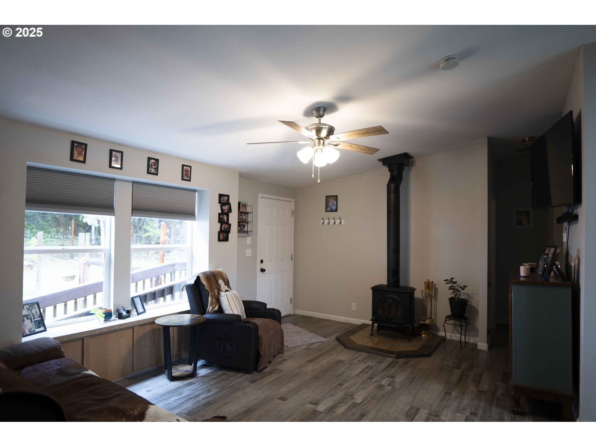 Enjoy your private retreat on almost 25 acres of your own land that backs up to BLM, surrounded by mountains and trees. Go hunting in your backyard, raise cattle in the open pasture, enjoy raising your own chickens and ducks, enjoy the orchard and a massive garden, there are endless possibilities with this home! There are two detached shops, one is over 3,000 square feet, and the other an extended deep 24 foot shop, and a 16x20 garage allowing for parking and storage of all your recreational vehicles, boats and ATVs and plenty of space for other hobbies! There is a 15kWh solar panel system in place for near off grid living and self sufficiency! Utility bills are roughly $15 a month!! At the house there is a partial surround deck with a built-in hot tub overlooking the mountains, a fenced yard and beautiful landscaping! Inside the home there are vaulted ceilings, heat pump, a cozy wood stove, open floor plan, stainless appliances, kitchen island, a large utility room with a new washer (10/24) and dryer included. The primary suite offers a large space with ensuite, walk in shower, and loads of bathroom storage. Enjoy the nice separation of space with two bedrooms on the opposite side of the house. Sellers are offering a home warranty! This property is truly magical and one of a kind! With only being 20 minutes to the casino, 1 mile to Galesville dam for boating, fishing and other recreation this is your chance to own paradise!
