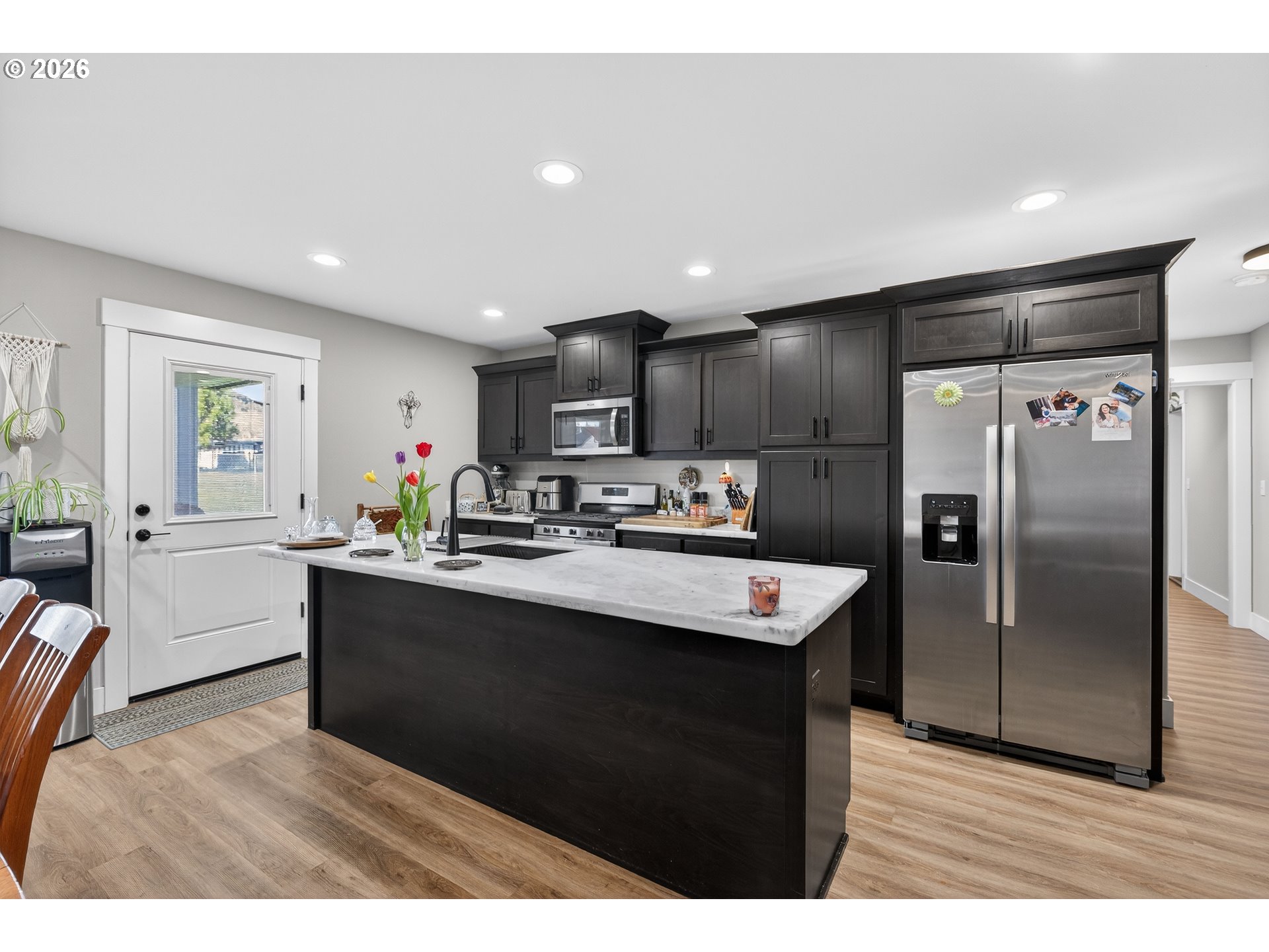 Welcome to this beautiful 2022 built home in Winston, Oregon, offering comfort, privacy, and stunning open views. Conveniently located close to local amenities with easy access to the Oregon Coast and the world-famous Wildlife Safari. Situated on a private and spacious flag lot, the property backs to a school field, creating an open feel with peaceful mountain views and added privacy.Inside, you’ll find a thoughtfully designed split floor plan featuring a large primary suite with a walk-in closet and comfortable separation from the spacious guest bedrooms. The kitchen showcases quartz countertops, a large island, a custom sunken sink, stainless steel appliances, and a gas stove, making it both functional and stylish. This entire home features tinted windows. The living room features a cozy gas fireplace, perfect for relaxing evenings at home. Additional highlights include a covered back patio for year-round enjoyment, an oversized two-car garage, and an additional carport off the asphalt driveway for extra parking. The home also offers generously sized spare bedrooms, providing flexibility for guests, office space, or hobbies. This property combines modern construction, scenic surroundings, and convenient location—making it a wonderful place to call home.