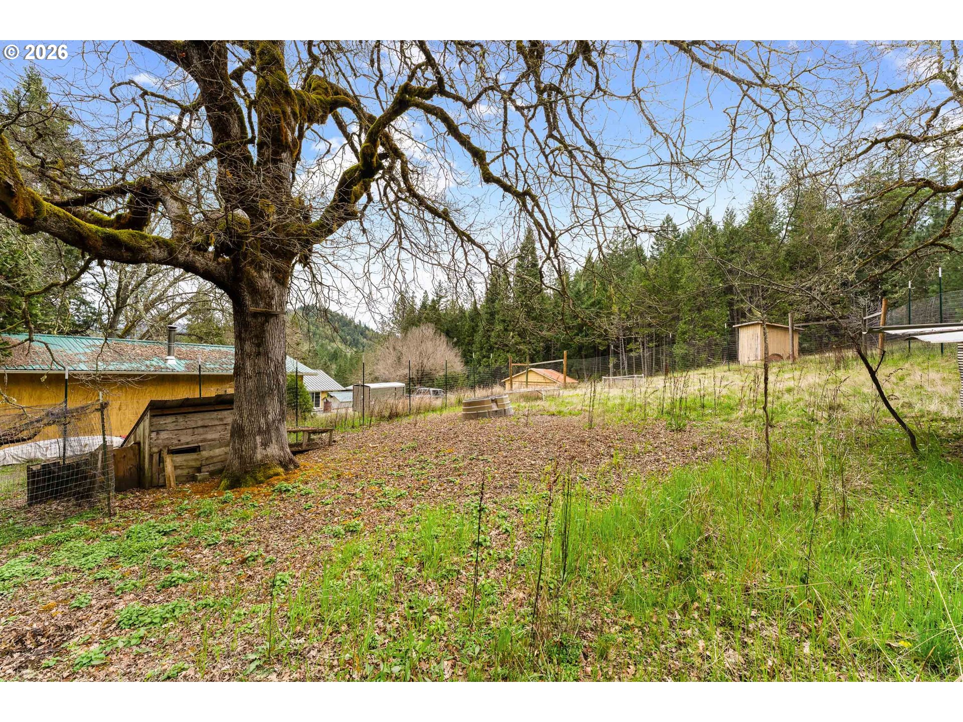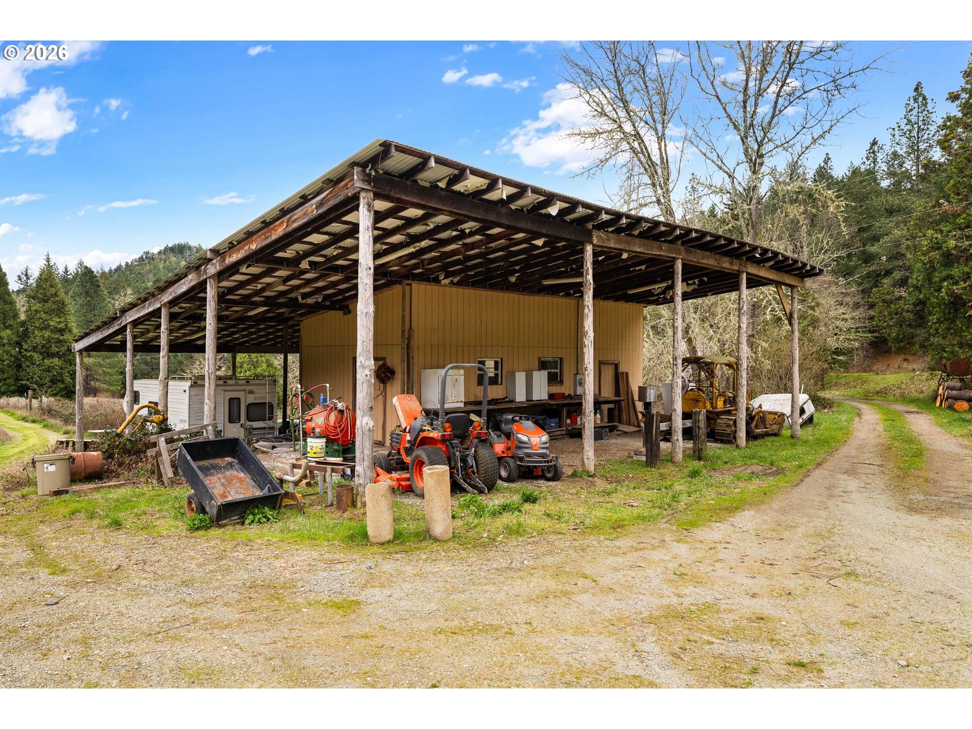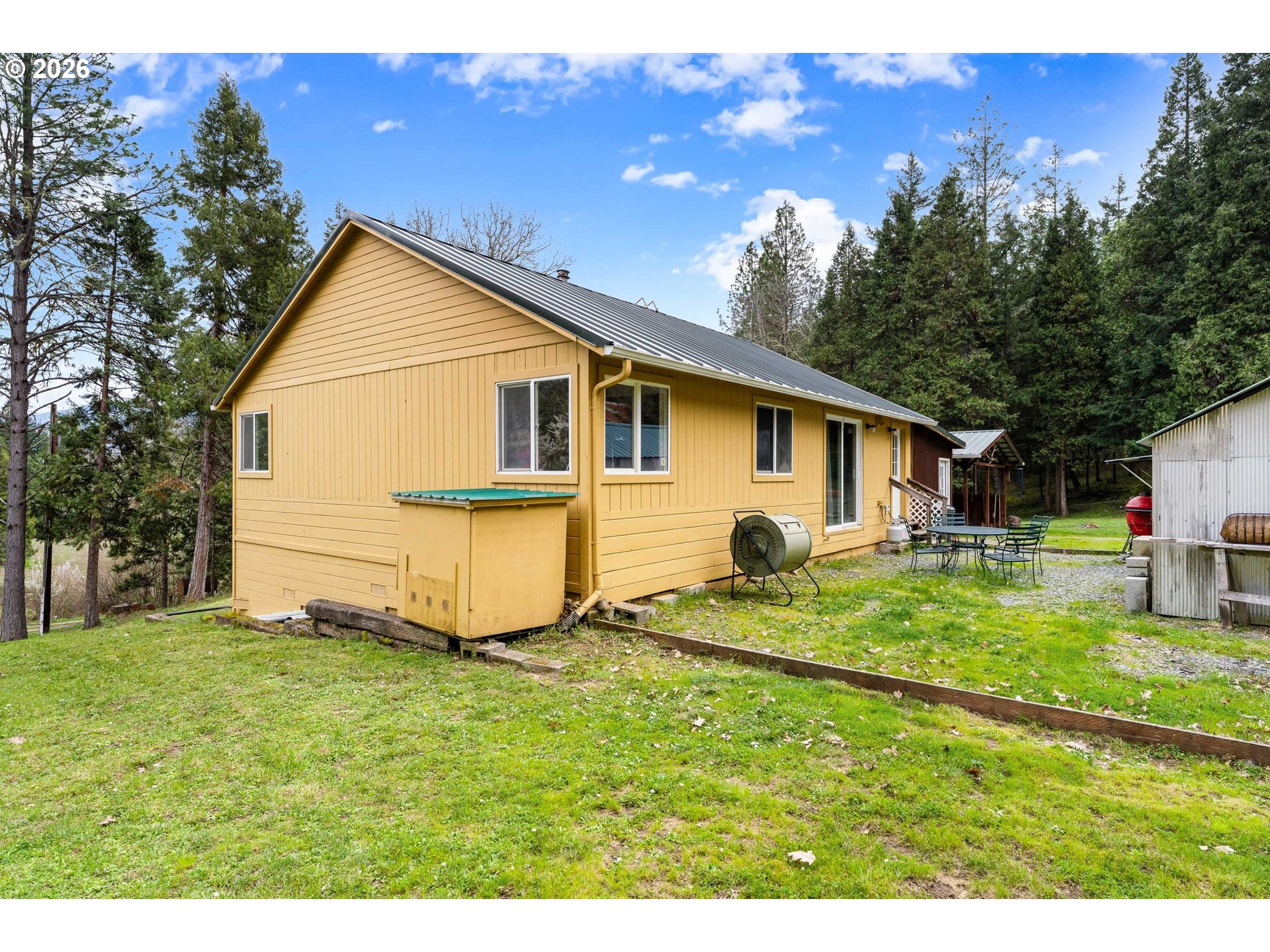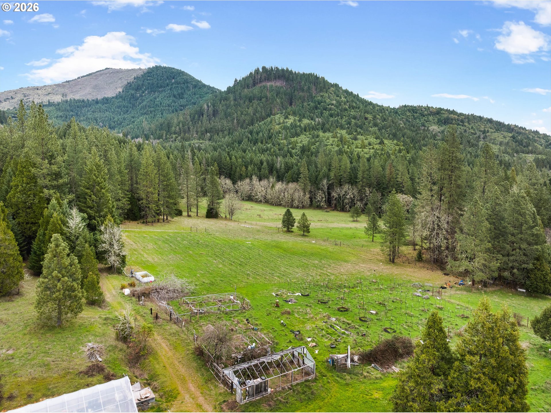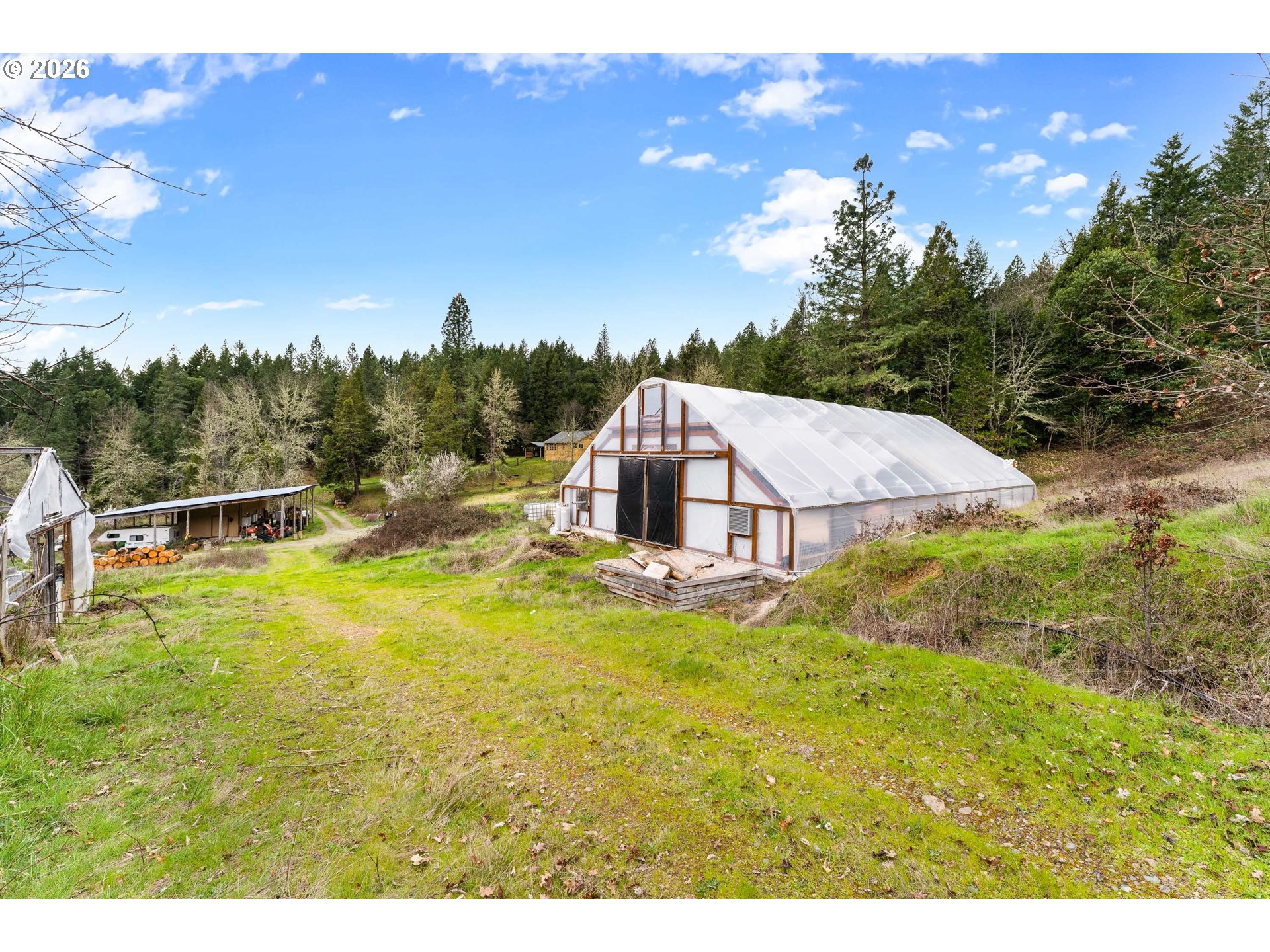 Escape to 160 Acres of Private Paradise: Dreaming of self-sufficiency without sacrificing modern conveniences? This exceptional property delivers both seclusion and accessibility with high-speed internet and major freeway access just minutes away. The cozy home is a 1,008 sq. ft. retreat featuring 2 bedrooms and 1 bath, recently refreshed with stainless steel appliances, fresh exterior paint, and a carport. Comfort is assured with a Fujitsu mini-split heating/cooling system (2025) and updated utilities including a water heater (2024) and washing machine (2025). Outbuildings & Infrastructure: Detached 2-car garage (freshly painted). 1,800 sq. ft. greenhouse with electrical, sliding doors, and light-deprivation screen for year-round growing. 960 sq. ft. shop with cement floors, 3 rooms, 2025 garage door, Daikin mini-splits, and water plumbed to the building. A 465 sq. ft. workshop with an additional 1,278 sq. ft. of extended outdoor coverage. 220 sq. ft. auxiliary shed.200 sq. ft. tin shed near the house (currently outdoor kitchen).A hand-operated well pump as a backup to the electric pump. Guest quarters in progress - sheet rocked, wired, and ready for your finishing touches. Land & Lifestyle: Enjoy evenings in the hot tub under star-filled skies unpolluted by light. The land offers marketable timber, pastures for livestock, 2 garden spaces, multiple fruit trees, and four seasonal ponds. The road has recently been graded and refreshed with a new layer of rock for improved access and durability. A new septic system is currently under installation, with completion expected in April. At 160 acres, this property qualifies for two annual Landowner Preference tags for hunting on your own land. Square footage based on tax records and seller estimates. Buyers encouraged to conduct independent due diligence.