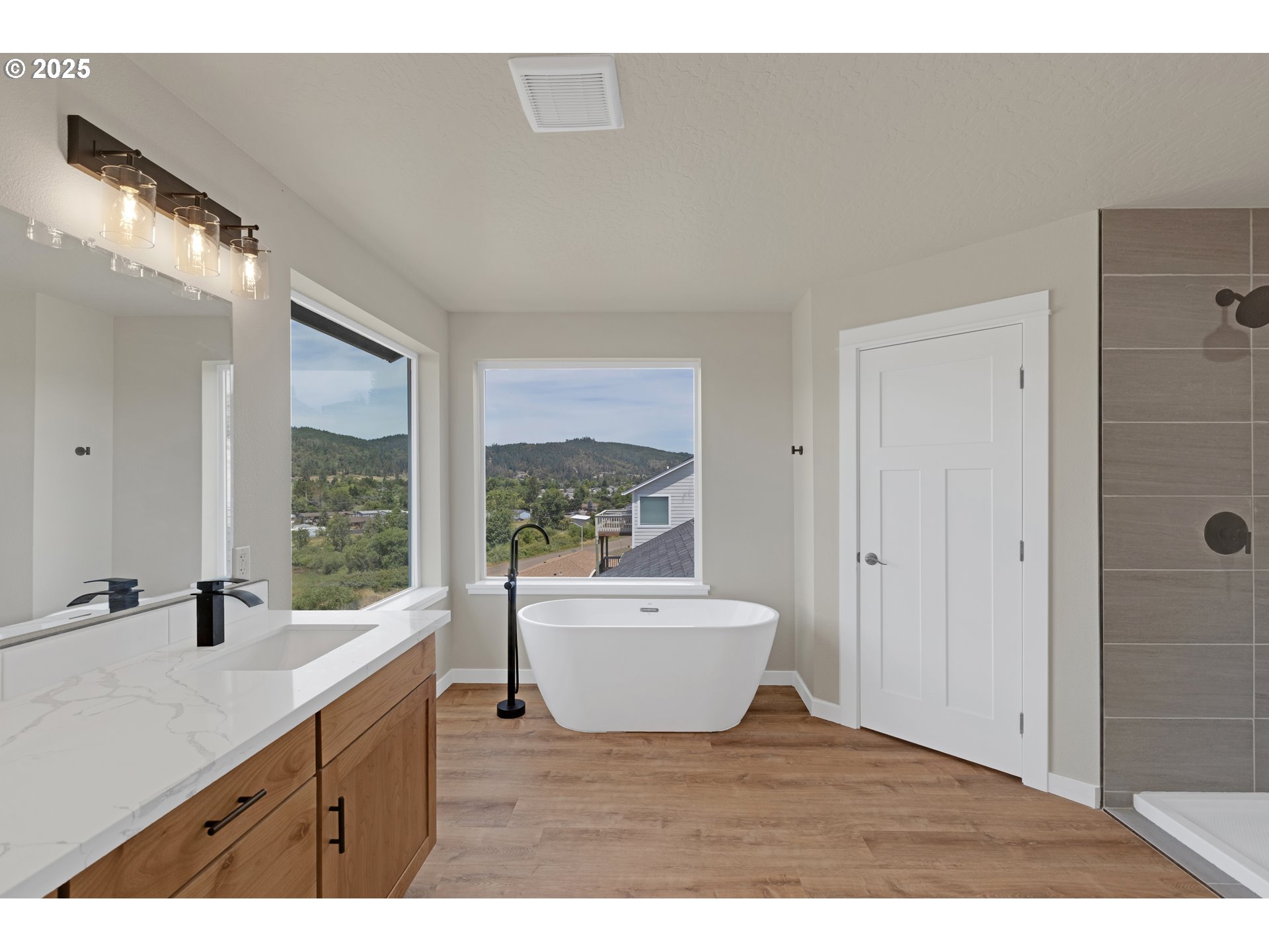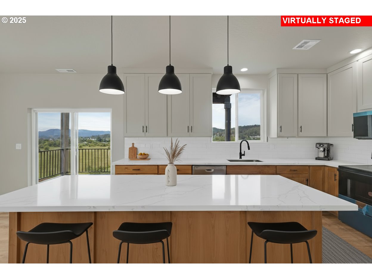 (503) 893-8874Be the first to live in this contemporary home in the Forest Heights neighborhood of Sutherlin. Thoughtfully designed with upscale finishes and a modern aesthetic, this home offers the perfect blend of style, function, and tranquility. From the inviting covered front porch to the open-concept main level, every detail is designed for comfortable living. Inside, you'll find sleek cabinetry paired with white granite countertops, creating a bright, sophisticated feel throughout the main living areas. Convenient garage access adds to the ease of daily life. Upstairs, the spacious primary suite is a true sanctuary. Take in sweeping views of the valley and surrounding mountains from your private balcony or soaking tub, ideal for quiet mornings or unwinding after a long day. Step outside to the expansive back deck, perfect for entertaining, relaxing, or simply enjoying the panoramic scenery. The lower level features a flexible split floor plan with an exterior entrance, offering great potential for multi-generational living, guest quarters, or even house hacking - ADU - Airbnb income possibilities. A third bedroom or bonus room provides space for a home theater, game room, or creative studio. This is more than just a home, it’s a modern haven in a peaceful hillside setting. Don’t miss your chance to experience it in person. Come see this in person! Lots of value for this spacious sized home at this price!