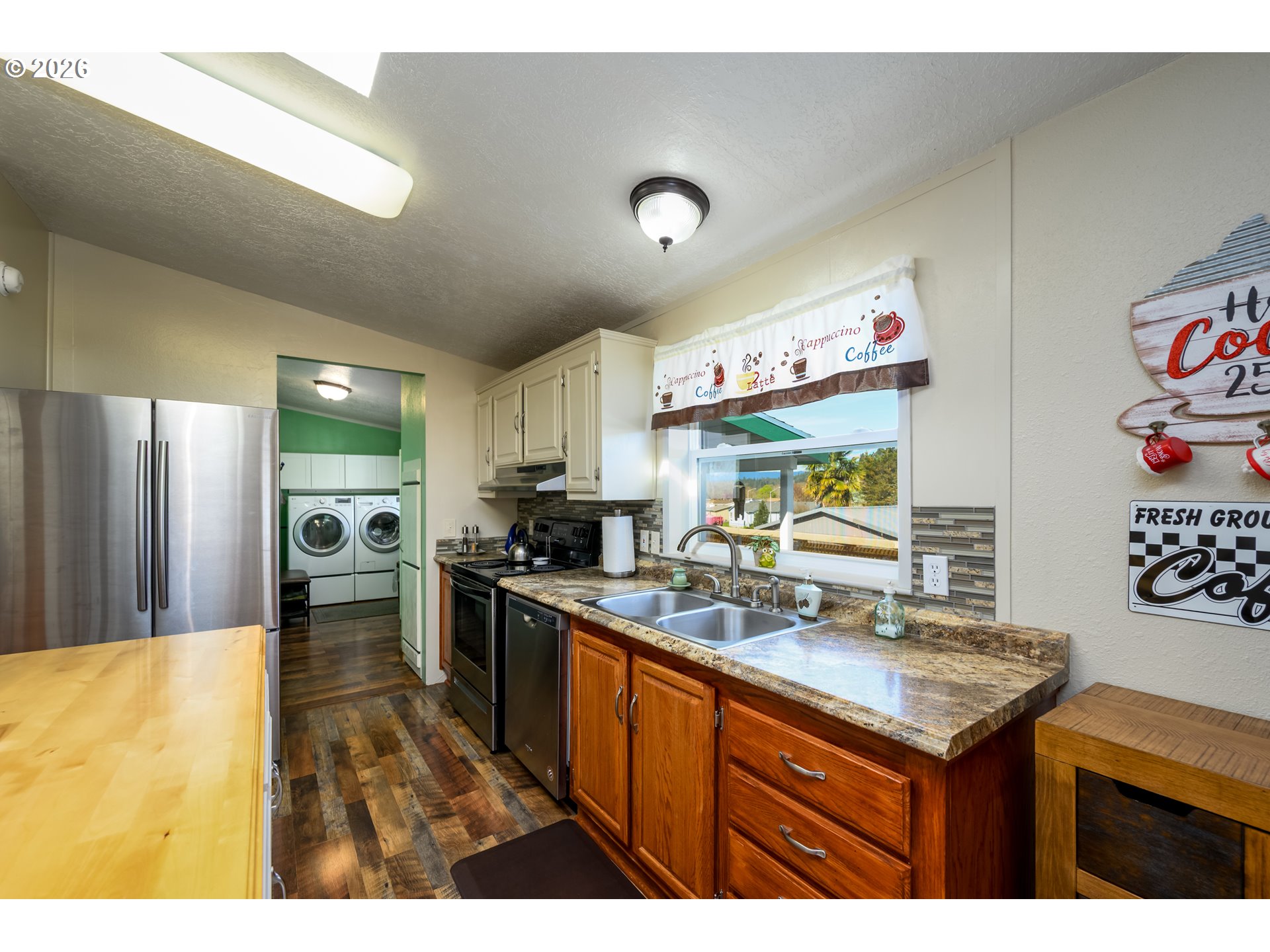 (503) 893-8874Experience a home that engages the senses—from the soothing sound of the backyard brook to the fragrant, cedar-lined primary closet. This Sutherlin property has been meticulously upgraded, creating a seamless blend of "Pacific Northwest Lodge" warmth and modern functionality. This isn't just a place to live; it’s a sanctuary designed for slow mornings on the deck and effortless living.Exterior & Outdoor Oasis: The curb appeal is immediate, featuring fresh exterior paint and updated gutters. Outdoor highlights include:Dual Trex Decks: Oversized front and rear decks provide the perfect stage for morning coffee or sunset dinners.Serene Landscaping: A private sanctuary featuring a custom stream water feature.Gardener’s Dream: Fully fenced with high-quality cedar, the yard includes raised beds and an automatic watering system for easy maintenance.Inviting Interior & Architectural Detail: The interior radiates a clean, modern-rustic aesthetic with new flooring and fresh paint throughout:Chef’s Kitchen: Bathed in natural light, the kitchen features a wood-topped prep island, sleek stainless appliances, and an open layout flowing into the dining area.Lodge-Style Accents: Living areas are anchored by beautiful natural wood-plank focal walls, adding a cozy, grounded feel.Primary Retreat: Relax in a spacious master with vaulted architecture and a premium cedar-lined walk-in closet.Functional Mudroom: A dedicated laundry/utility area with exterior access and custom storage—perfect for rainy Oregon days.Garage & Workshop: The detached, oversized garage is a standout for hobbyists, offering a lofted ceiling, extensive built-in shelving, and ample space for a full workshop, vehicle storage, and gear.Location & Lifestyle: Situated in a friendly neighborhood just a three-minute stroll from the city park. Nature lovers will appreciate nearby trails—head east for a scenic nature walk or west for the park and community atmosphere.