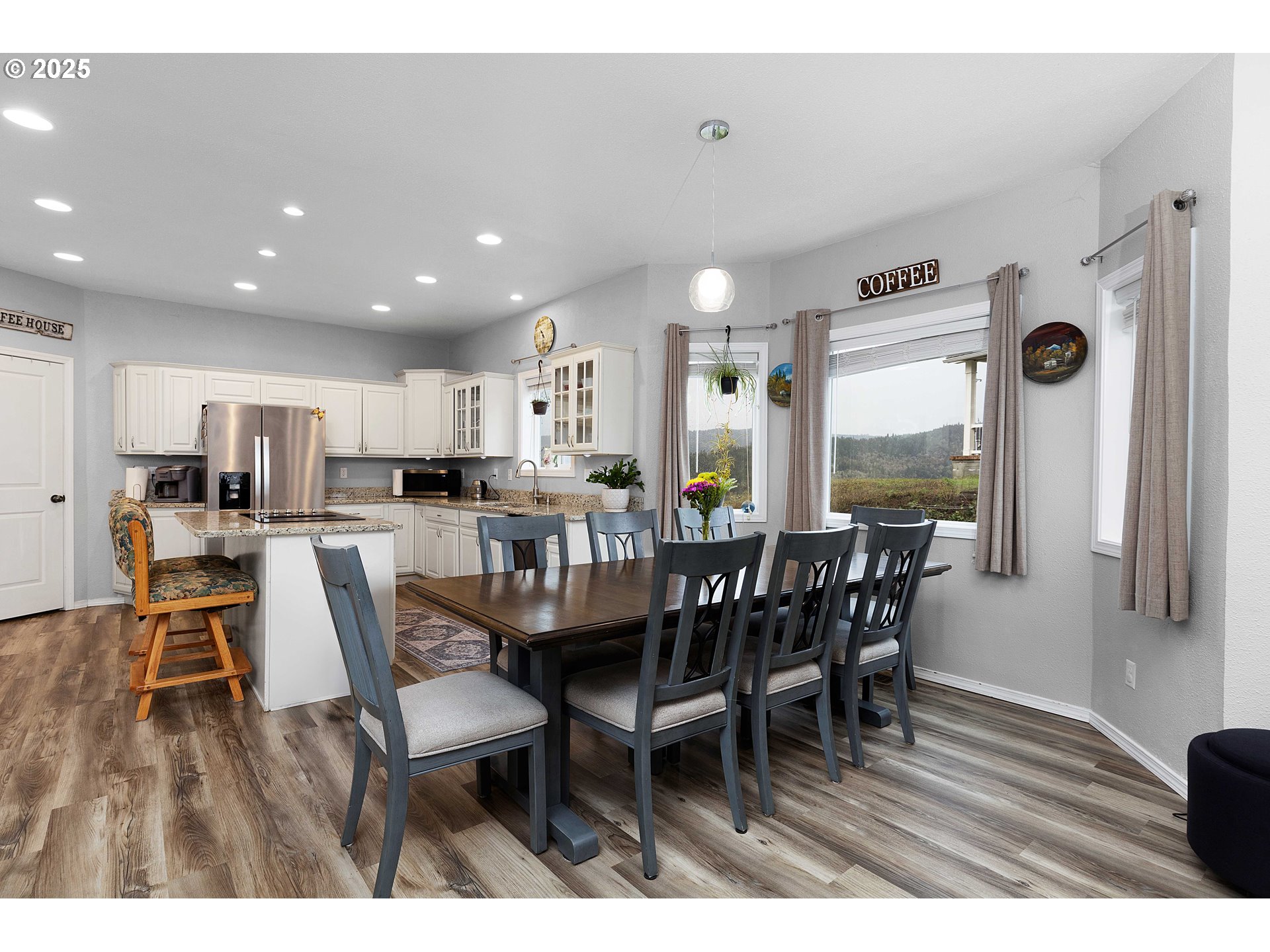 (503) 893-8874Amazing panoramic views await you at this custom built, half acre +, dual lot property. Custom granite chef's kitchen with island cook top, eat bar & dual ovens. The spacious living, family room, and formal dining area feature high ceilings and LVP flooring. Upstairs you'll find the primary bedroom suite featuring cathedral ceiling, dual walk-in closets, low step shower and a luxurious jacuzzi tub. Large windows offer beautiful views of the valley, surrounding hills and allow for abundant natural lighting. All bedrooms are upstairs and oversized. With 5 bedrooms and 3.5 tile floor baths, this home has plenty of room for everyone and includes dual laundry facilities. The large lot with an additional 624 sq/ft detached garage/shop offers room for all your toys or shop workspace. Southwest exposure and fenced yard makes for excellent gardening possibilities. Conveniently located with schools, shopping and medical services nearby. The partially converted attached garage with separate key pad entrance, plumbed for kitchenette, can be used as an additional bedroom or easily converted back to garage space. Call today to arrange for your private viewing.