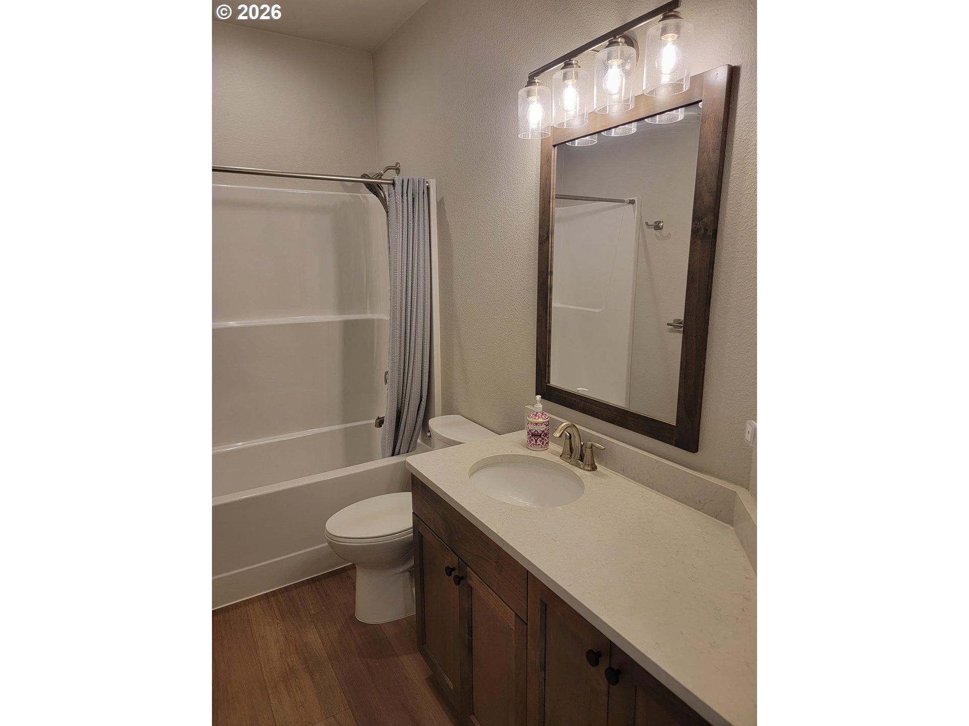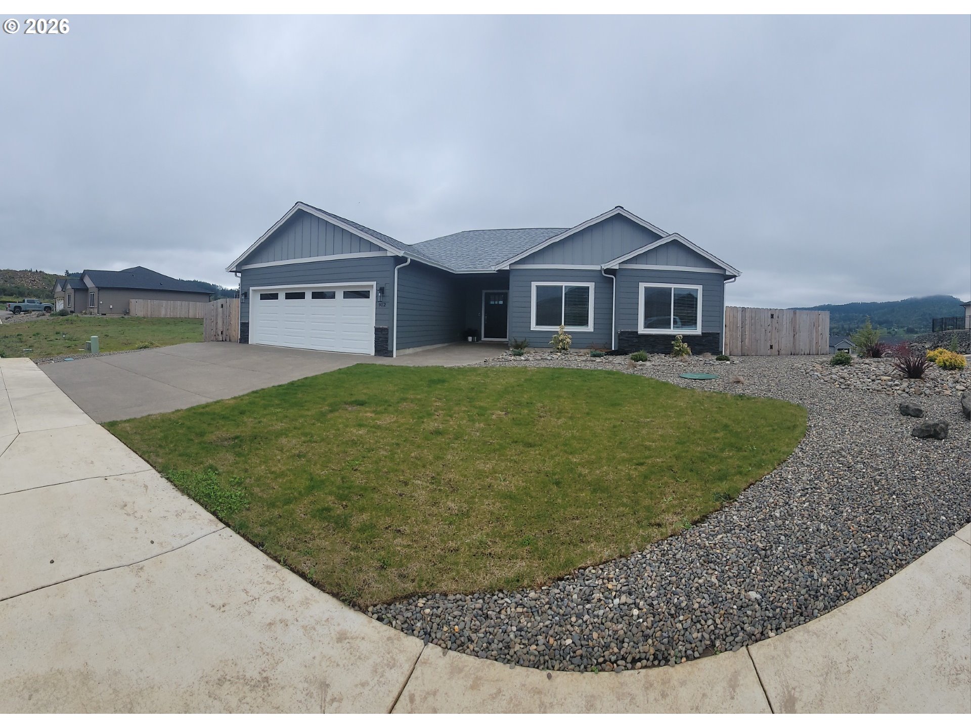 2024 construction with lots of upgrades. This home features energy efficient 95+% forced air heating/cooling. Siding is both cement/lap board/batten siding. Spacious living includes 3 bedrooms and 2 bathrooms on one level, perfect for accessibility and ease of movement. Ample Outdoor Space situated on a generous 10,018 sq. ft. corner lot providing plenty of room for gardening or outdoor entertaining. Experience modern luxury at every turn. The open-concept kitchen and baths are anchored by solid quartz countertops and sleek undermount sinks, offering a seamless, high-end look. Throughout the entire 1,585 sq. ft. floor plan, you'll find durable, water and scratch-proof laminate flooring-perfect for effortless maintenance, busy households, or pet owners who don't want to sacrifice style for function. Attached parking includes and additional 457 sq. ft. 2-car garage.