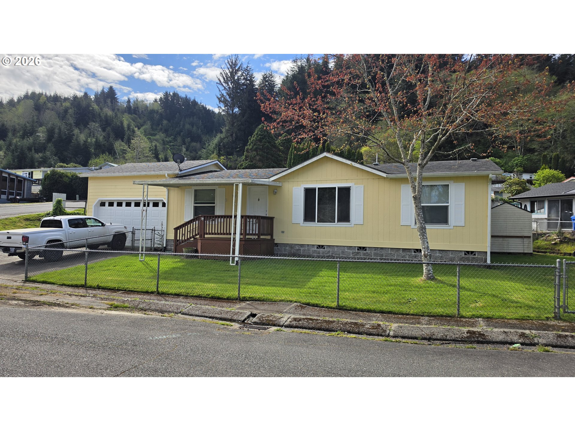 This well-maintained 3-bedroom, 2-bath manufactured home offers comfort, functionality, and excellent amenities, all situated on a manageable 0.14-acre lot. The property features secure front and rear fencing along with dedicated RV parking, providing both convenience and peace of mind. A standout feature is the spacious attached garage, complete with an oversized 16-foot door, a built-in workbench ideal for hobbies or projects, and direct access into the home for added ease. Inside, the home showcases a bright and inviting interior with vaulted ceilings that enhance the sense of space. The open-concept living area is both warm and welcoming, complemented by wall-to-wall carpeting, durable vinyl flooring, and energy-efficient vinyl windows. The well-appointed kitchen offers attractive cabinetry and quality appliances, making it both functional and visually appealing. Additional highlights include forced air heating for year-round comfort and a separate laundry room for added convenience. This property combines practical features with comfortable living, making it an excellent option for a variety of buyers.