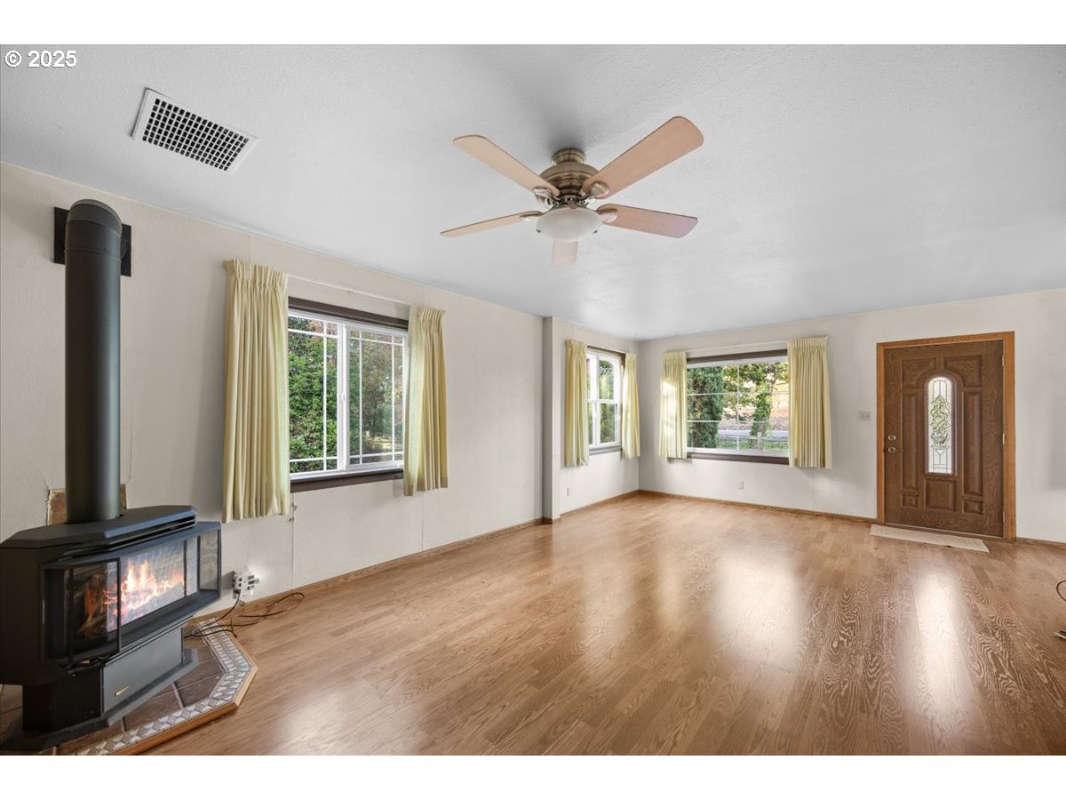 This gem is tucked away on 4.4 peaceful acres just minutes from town. The land is a gardeners dream with rich soil, and a year-round creek adds a soothing backdrop to the landscape. Enjoy quiet mornings or summer evenings on the Trex deck, surrounded by mature trees, flowering plants, and a variety of fruit trees. The property is mostly fenced and includes a chicken coop, outbuildings, and deeded spring for outdoor watering — keeping maintenance affordable and efficient. Inside, the home has been lovingly cared for and thoughtfully updated. The spacious living area with a gas stove provides a warm and inviting place to unwind with a separate laundry room and utility sink. The primary bathroom offers a spa-like atmosphere with a deep soaking tub accented by tile surround and a walk-in shower. Upstairs, a versatile loft offers the perfect spot for a third bedroom, home office, or cozy reading nook. Improvements include new septic in 2006, extensive foundation work, vinyl windows, gas stove, and upgraded electrical. Blending comfort, practicality, and natural beauty, this property offers the best of country living. Call today to schedule your private tour!