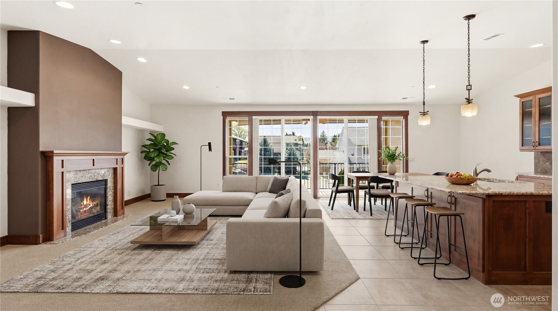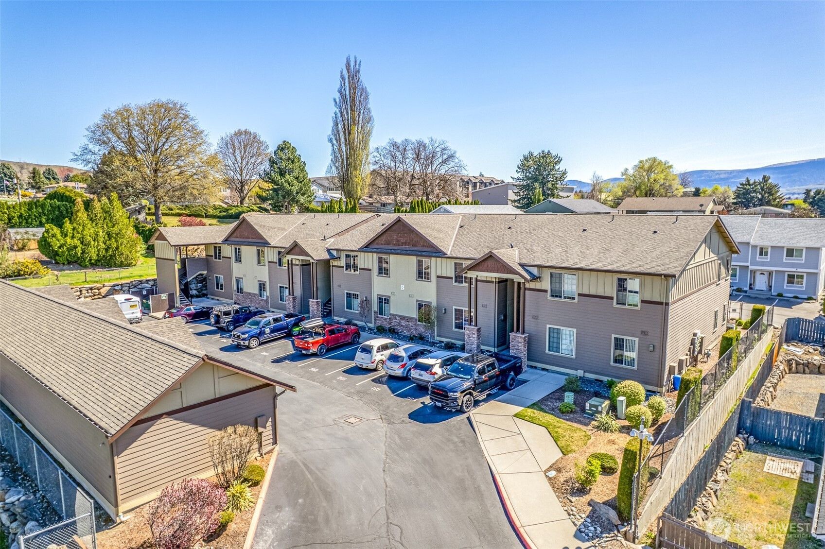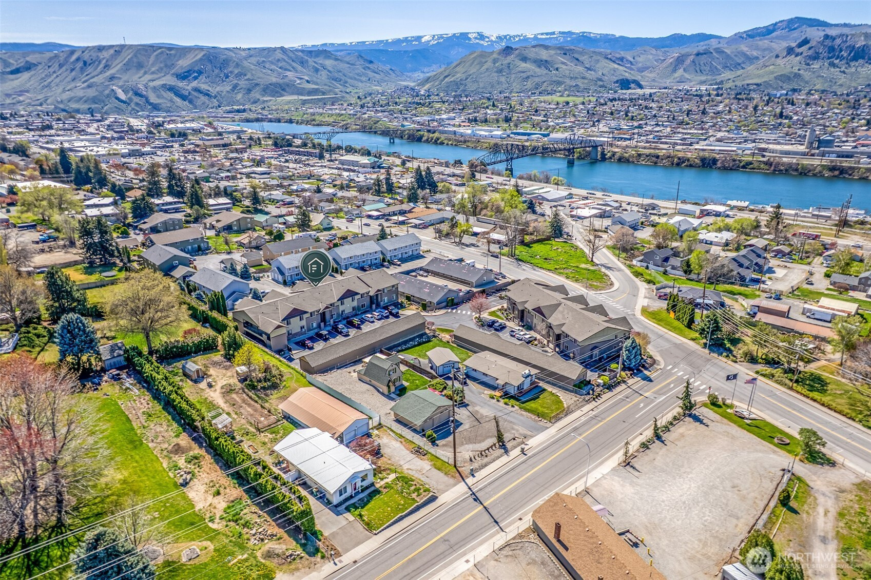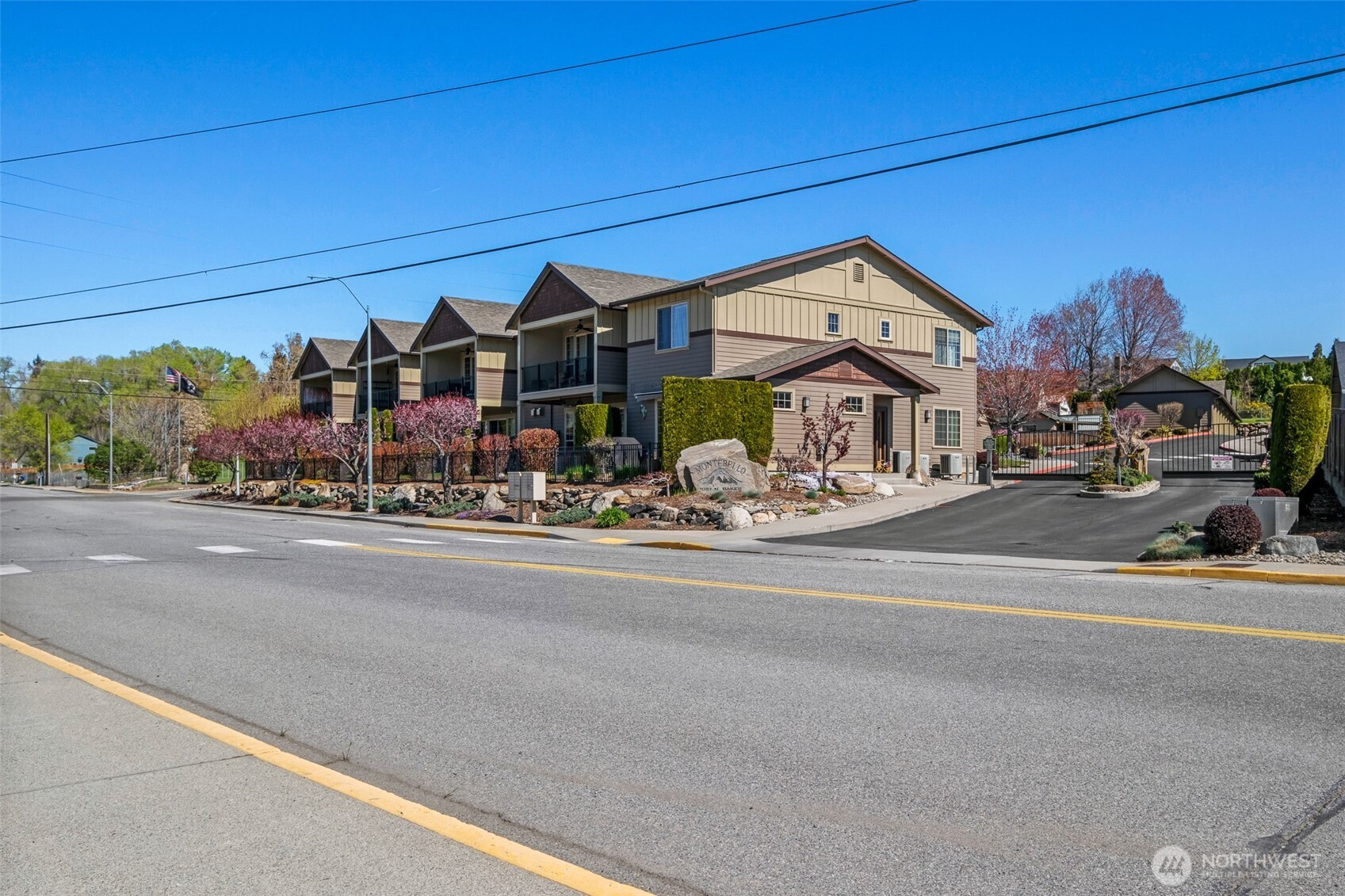 Gorgeous upper-level condo in the heart of East Wenatchee offering exceptional privacy within a secure, gated community. Just two blocks from the scenic Columbia River trail system—perfect for walking, running, or biking for miles. Enjoy summer evenings on the spacious deck with built-in gas hookup for BBQ. The open-concept layout features vaulted ceilings in the main living area and 10’ ceilings throughout, creating an airy, upscale feel. The chef’s kitchen is equipped with granite countertops, high-end appliances, gas cooktop, wine cooler, and a walk-in pantry. Relax by the cozy gas fireplace or entertain with ease in the generous living space. The luxurious primary suite features a private ensuite bath and walk-in closet, thoughtfully paired with a spacious guest bedroom for comfort and flexibility. Includes a private garage plus 1 additional guest parking spot and nearby street parking. HOA dues of $600/month cover common area maintenance, water, sewer, gas, garbage, irrigation, landscaping, annual window cleaning, roof and gutter heat tape, winter snow removal/de-icing, and dryer vent cleaning every two years—making this truly low-maintenance, lock-and-leave living at its finest.