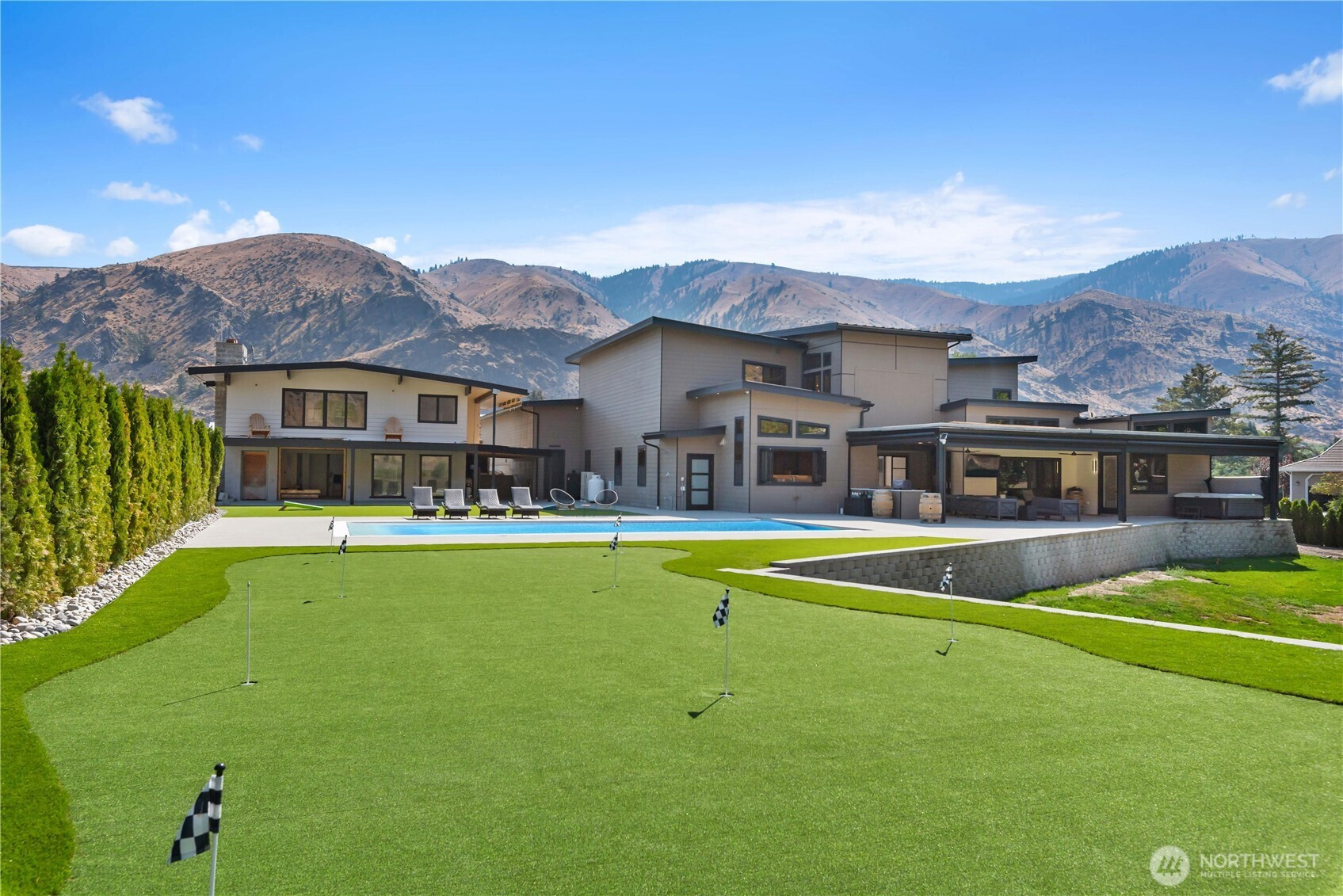 INTRODUCING AN EXTAORDINARY RIVERFRONT ESTATE~BOASTING AN UNMATCHED COLLECTION OF LUXURY FEATURES ON 1 SPRAWING ACRE~DESIGNED FOR REFINED LIVING AND EFFORTLESS ENTERTAINING~THIS ARCHITECTURAL HOME OFFERS BREATHTAKING WATER VIEW FROM EVERY ANGLE~ STEP INSIDE TO AN OPEN FLOOR PLAN ILLUMINATED NATURAL LIGHTING AND ANCHORED BY A CHEFS DREAM KITCHEN~COMPLETE WITH TOP TIER APPLIANCES CUSTOM CABINERTY AND CHIC CENTER ISLAND~ CULINARY EXPERIENCES OUTDOORS BBQ/ KITCHEN OVERLOOKING THE POOL AND PRIVATE DOCK~ENTERTAINING WITH STYLE WITH YOUR OWN GOLF SIMULATOR ROOM CUSTOM WINE BAR AND ELEGANT WET BAR~PERFECT FOR GATHERINGS OF ANY SIZE~ UNWIND BESIDE THE SPARKLING POOL OR RELAX IN THE ELEVATED HOT TUB~EVERY DETAIL REFLECTS EXCEPTIOANL CRAFTMANSHIP FROM DESIGNER FINSHES TO LUXURY AMENITIES~THIS IS RIVERFRONT LIVING ELEVATED~ WHERE EVERYDAY FEELS LIKE A GETAWAY~ INCLUDED IN THIS MASTERPIECE IS A 2000 SF ADU THAT OFFER 3 BED AND 2 THREE QUARTER WITH AN OUTSTANDING DECK THAT OVER LOOKS THE RIVER AND POOL~720 SF LOWER COVERD DECK WITH ELECTRIC SHADES FOR OUTDOOR LIVING AT ITS FINEST~ YOUR 600 SF UPPER DECK TO CATCH ALL THE STARS ON THOSE DREAMY WARM SUMMER NIGHTS~POOL HOUSE ~OUT DOOR SHOWER~ BATHROOM~ APPOXIED GARAGE FLOORS~DOG WASH 2 RV HOOK UPS~ PUTTING GREEN~ MANY MORE EXTRAS BUILDER DID NOT MISS A BEAT~ WELCOME TO RIVERFRONT LIVING~