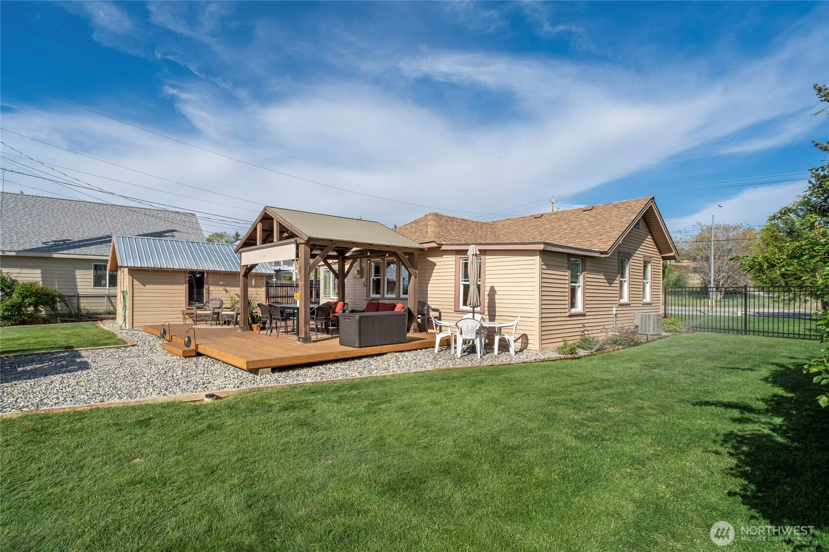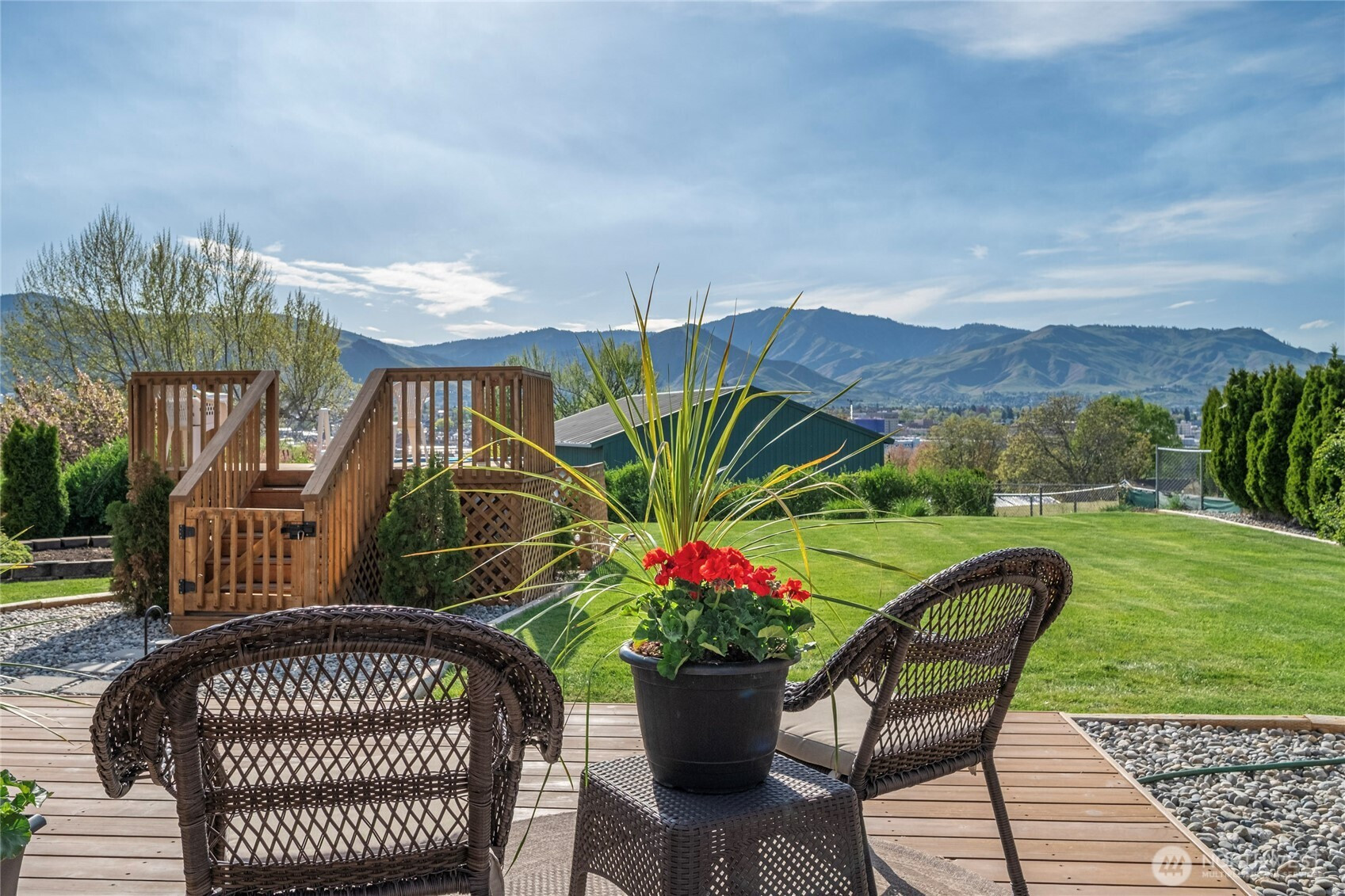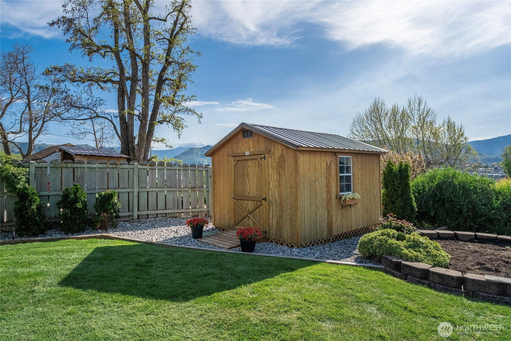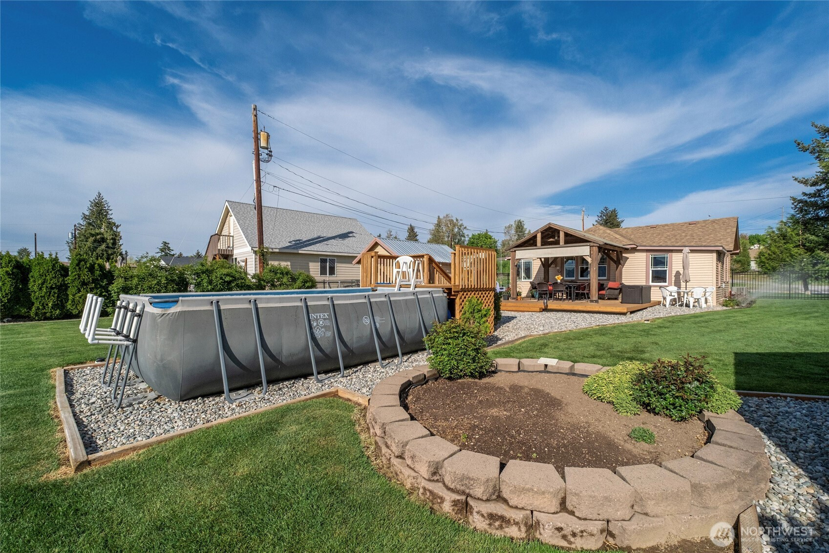 WOW fully remodeled, inside out...top to bottom. Large lot on N baker. Exceptional yard, comfy home and lots packed into a small bundle. Besides the garage there is a small shed in the backyard along with a pool (above ground) a pergola that can seat about 9 people. Inside a full remodel... compact kitchen. Primary bedroom off of the Kitchen and eating area. Large closet and compact. Living room is well appointed and has entrance to second bedroom. Front yard is big with a full drive making it unnecessary to back out onto N Baker at the same time the house sets back off of the street and is quiet. The back yard is fenced and with new pavillion in 2020 is terrific for entertain, relaxing and the large Hickory storage building could be a shop too. Pool is 9x18 is fenced and just right for cooling off in July days.Home is almost no step throughout with an occasional one step. All appliances are included. Great view of Mountains and Wenatchee and the Columbia. Cedar decks, remodeled kitchen, new heating and cooling, newer roof. Asphalt drive done in 2021 and just refinished. NOTE: two dumps and a 50amp service oinstalled foryour RV too.