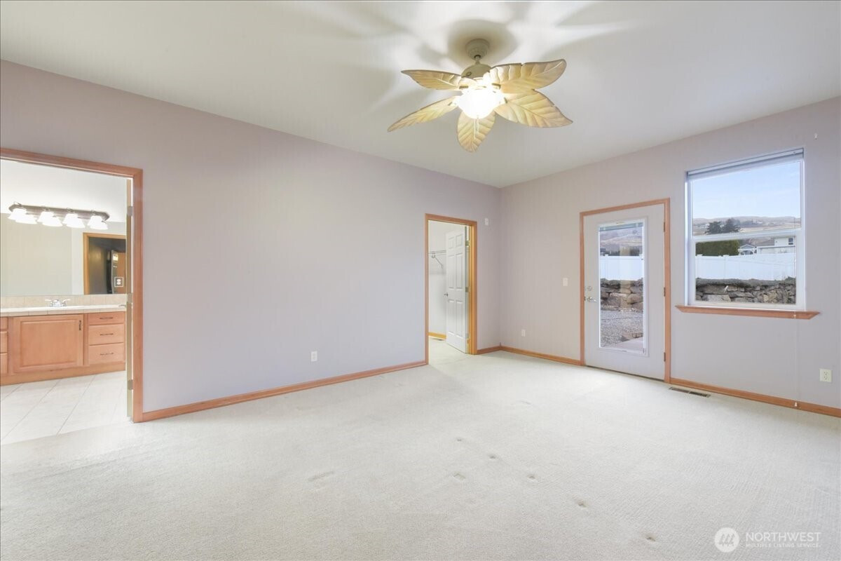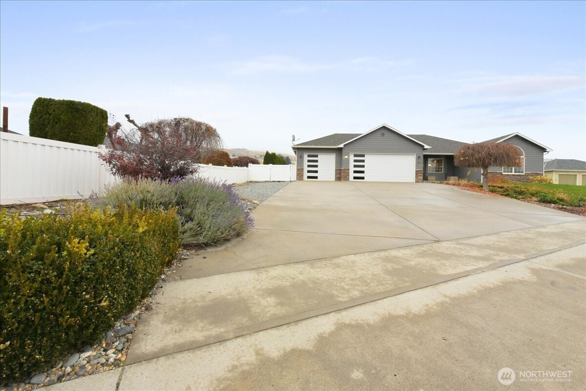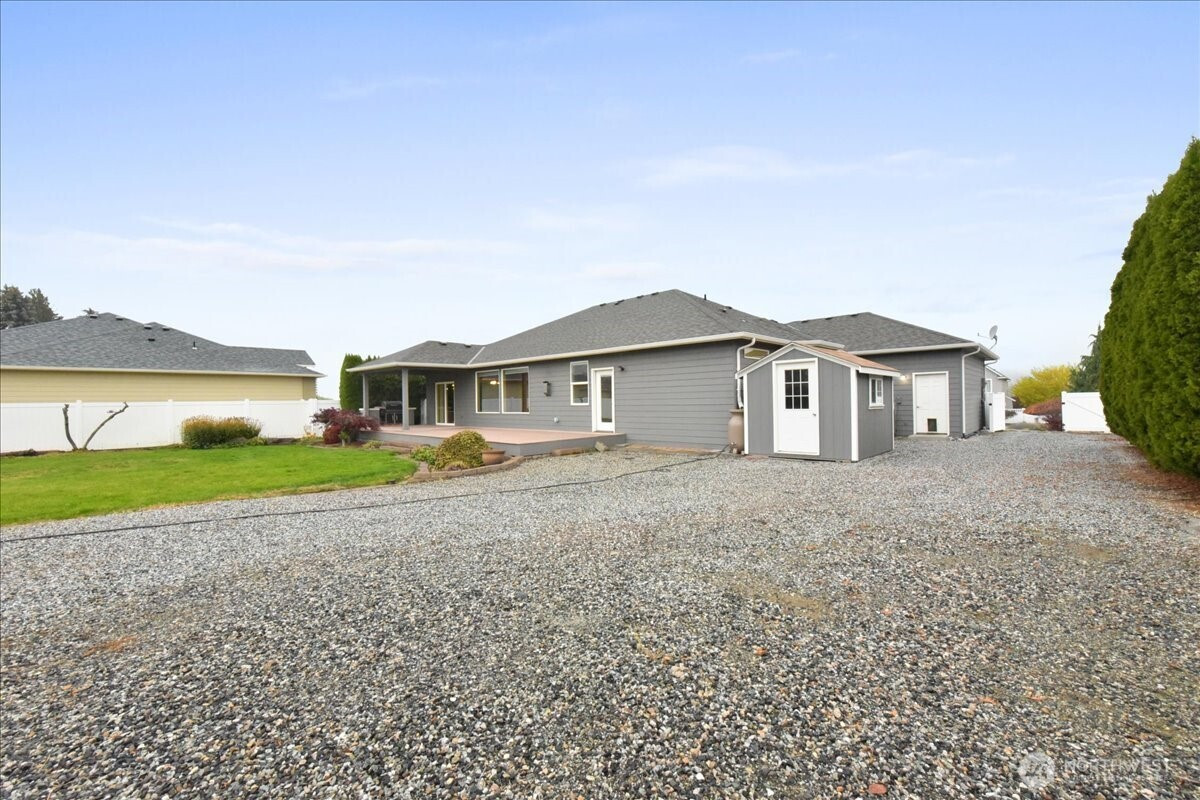 East Wenatchee - Springhill Dr - 2167sqft 3 bed/2 full bath on almost half acre w/irrigation outside city limits! Rambler w/kitchen w/granite countertops, custom cabinets, large entertainment breakfast bar, & secondary dining. All appliances stay. Living room w/propane fireplace - owned, formal dining room, add. bedroom w/vaulted ceiling & fan, bedroom, & full bath. Primary bedroom w/oversized closet, double vanity tiled full bath w/soaking tub, & outside access to backyard/trek deck. Exterior back deck w/covered entertainment area & built in BBQ. Completely fenced vinyl backyard w/landscaping. 3 car heated garage w/utility sink. Storage shed & add. parking off side of home & backyard. Sprinkler system. HOA $729,900 MLS-2453831/H-3729