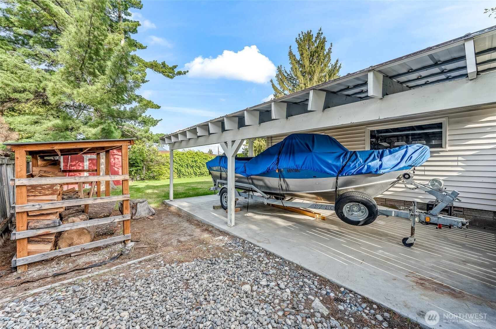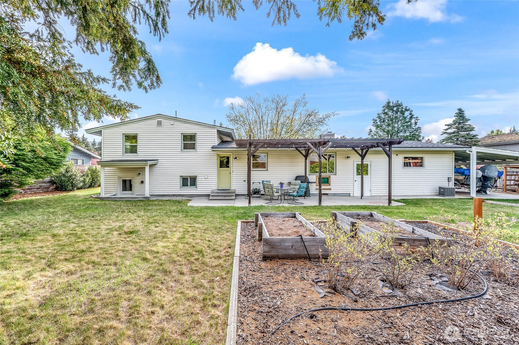 This inviting home features main-level living and a spacious kitchen with original hardwoods, ample storage, and room to gather. The backyard is your own escape with a shaded pergola patio and raised beds on drip irrigation, ideal for gardening or unwinding. Downstairs, a large bonus room with tons of storage and a woodstove creates the perfect hangout space. Bring your toys, there’s a 2-car garage plus a covered, gated carport for a boat or extra vehicle. Tucked on a quiet street with a central location close to schools, shops and parks. Pre-inspected.