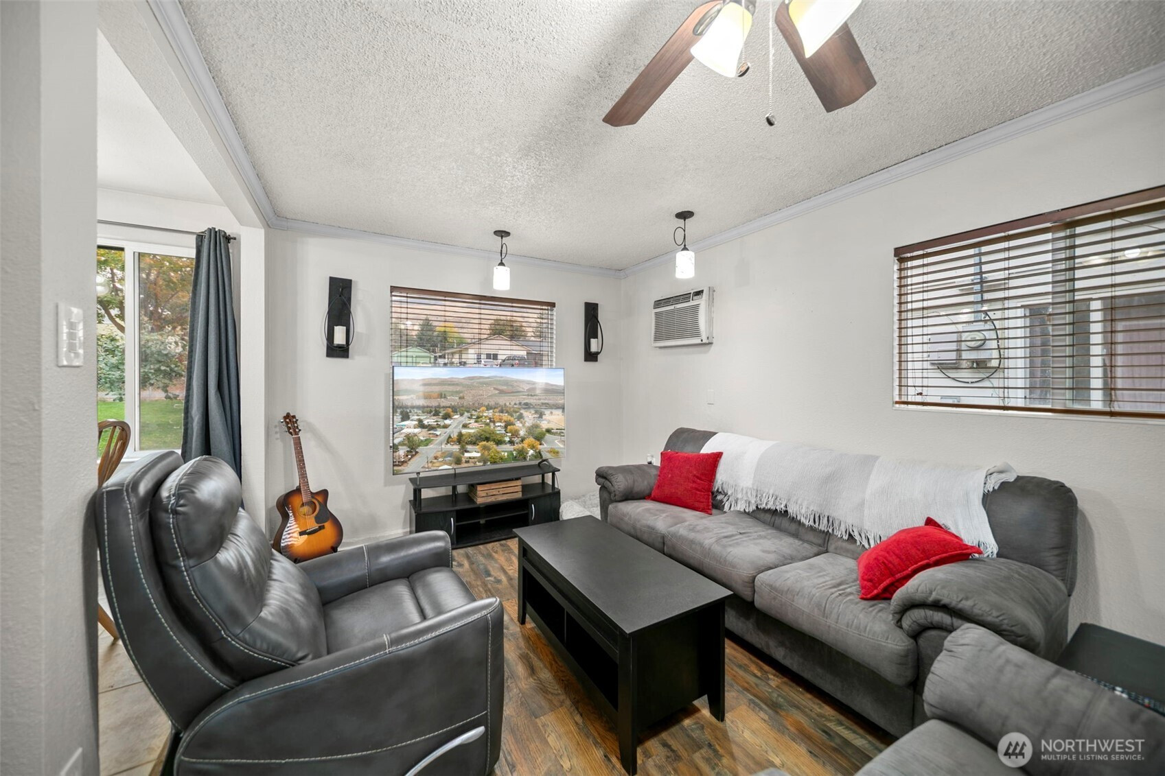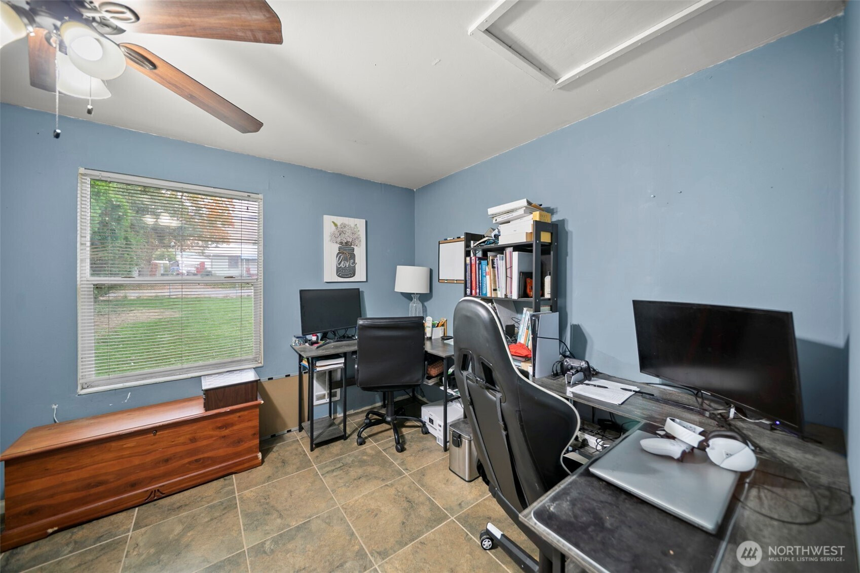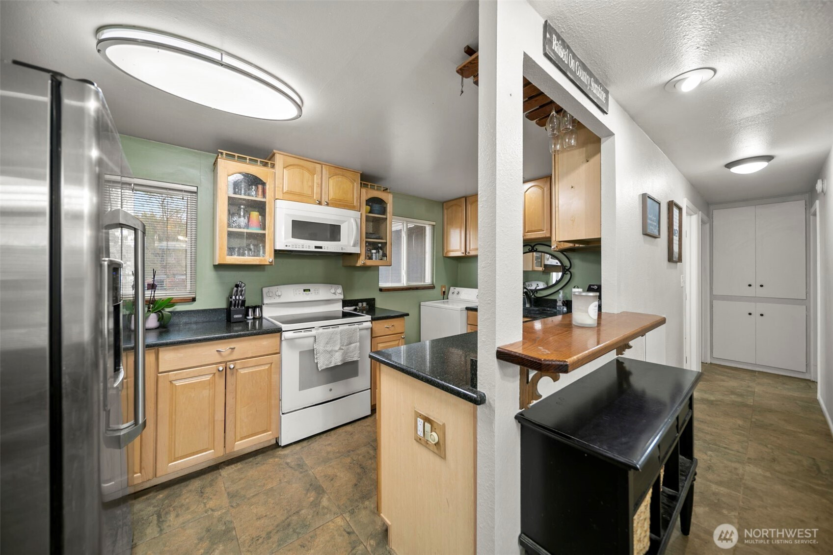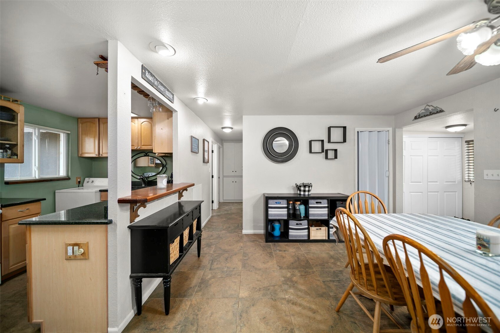 Welcome to this beautifully updated 2-bedroom, 1-bathroom home located in the heart of Bridgeport, Washington. This charming property features a sunken living room with direct access to the deck, a dining area with a ceiling fan, and a modern kitchen with a breakfast bar, perfect for everyday living and entertaining. The primary bedroom offers abundant storage space and a picturesque bay window that fills the room with natural light. An upper-level bonus room offers flexible storage space. Recent updates include new tile flooring and carpet throughout, interior and exterior paint, ensuring a clean, move-in-ready home.