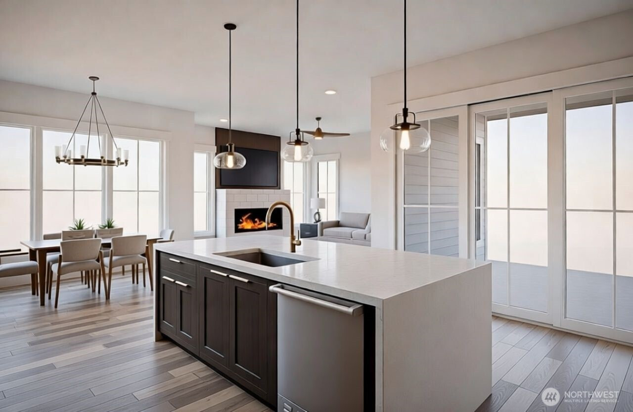 WELCOME HOME! Discover inspired Northwest contemporary living where distinctive architecture meets intentional design. Flooded with natural light, the open-concept layout is anchored by a beautifully appointed kitchen featuring quartz countertops, custom cabinetry, and an over-sized island designed for entertaining. The kitchen extends to a covered patio overlooking the Chadwick Place Development park and surrounding mountains. Crafted with premium finishes and exceptional attention to detail, this home offers a perfect balance of refined style and comfort. Buyers who submit timely offers may have the opportunity to select select colors, finishes, and fixtures. Seller is a licensed real estate broker in the state of Washington.