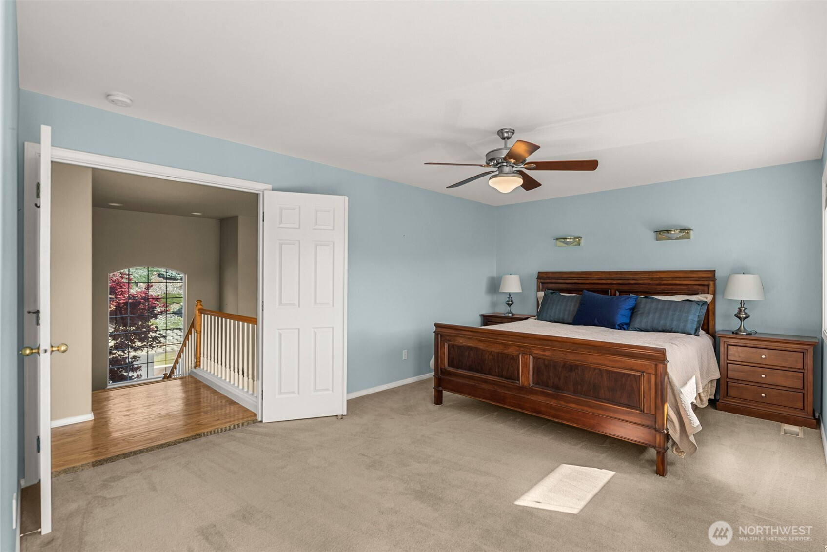 Private retreat! Mature and maintenance free landscaping RV parking, room for basket ball, volley ball and hopscotch! Grand entry with soaring ceilings and gorgeous hardwood floors. Den/Library to tuck away in for privacy. Remodeled kitchen with adjacent family room Snuggle up to the warm flames while watching the rain gently falling. Or leave that room to the troops and rest in formal living room with warm glows of cozy fireplace and a good book. Primary suite is truly a suite, with large jacuzzi tub in the bath area, and sliders to walk out, sit and enjoy your morning coffee, gazing at the ever changing mountain and river scenery. Guest bedroom has view of river and shares a Jack and Jill closet with 3rd bedroom. Oversized 3 car garage You will get a good view of the fireworks!!